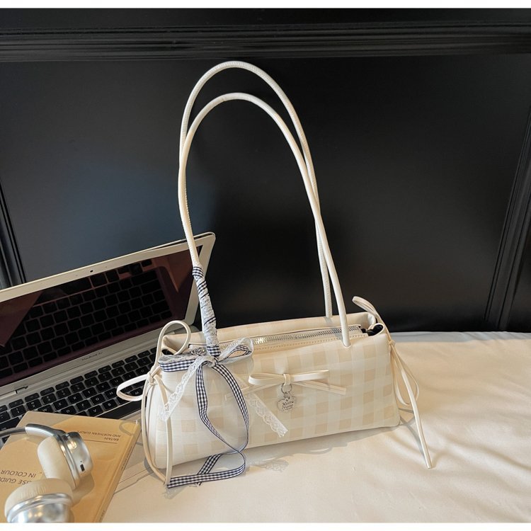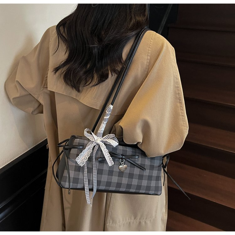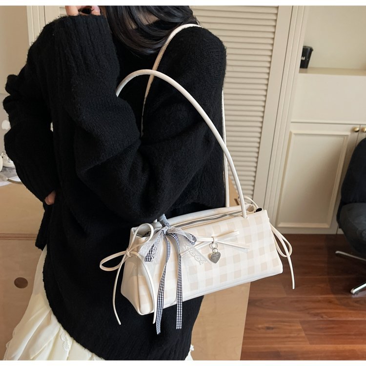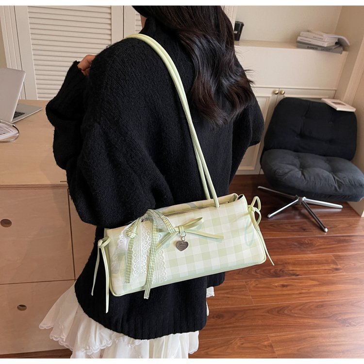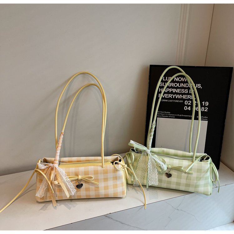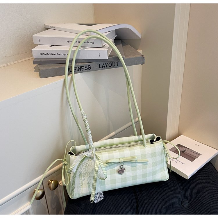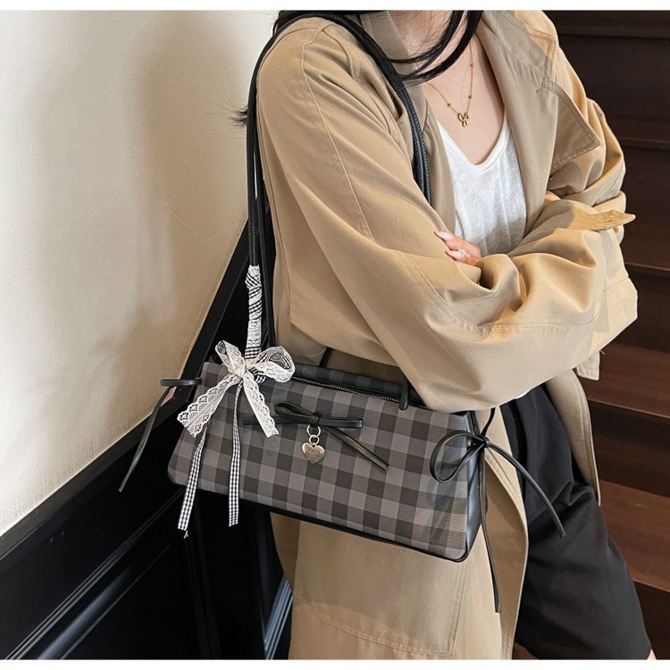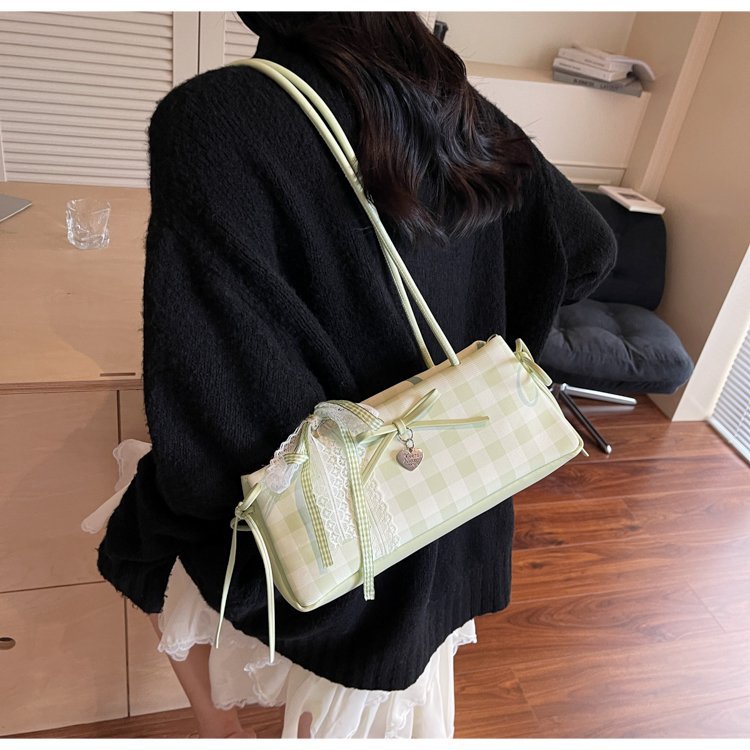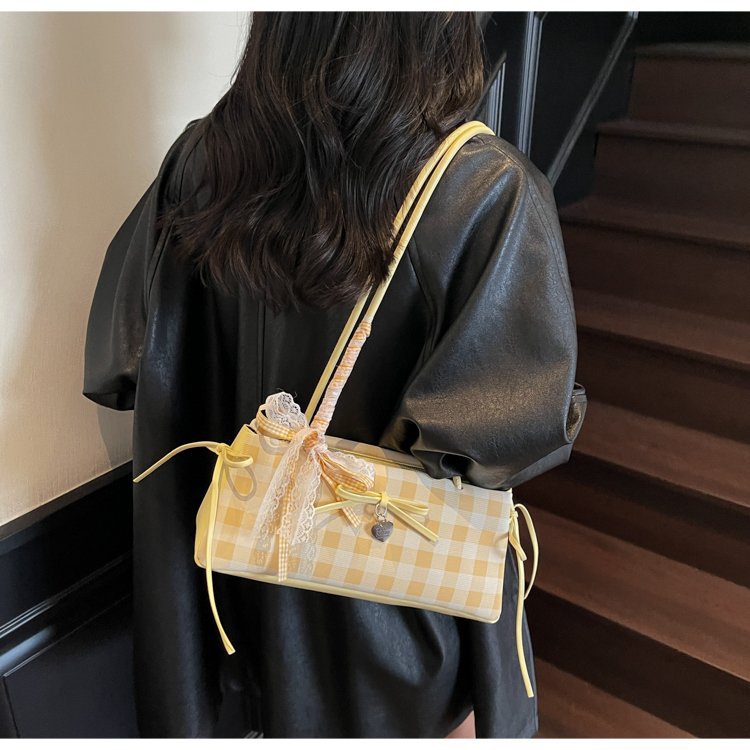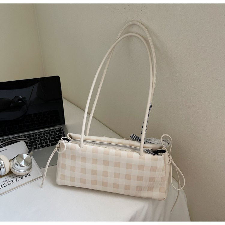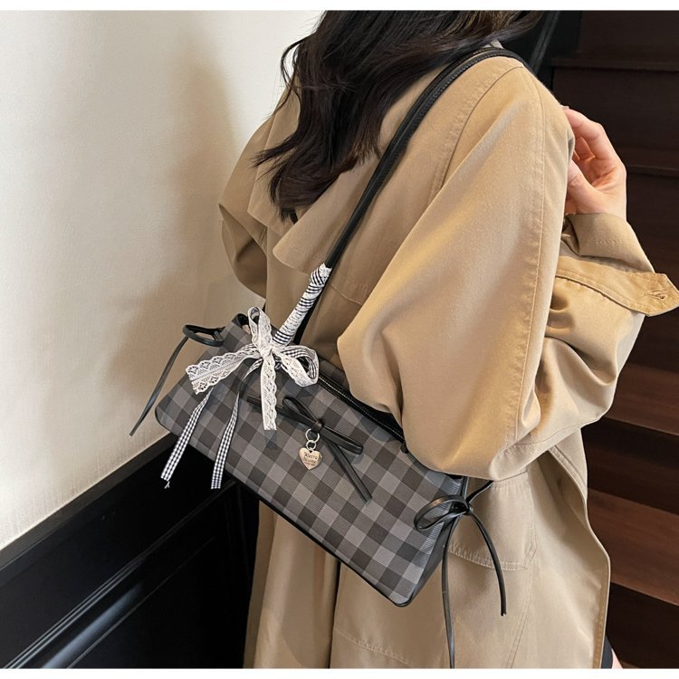 Dopamine Plaid Handbag Small Tote Bag for Women Summer2025New Ballet Style Bow Baguette Bag Underarm Bag Trendy