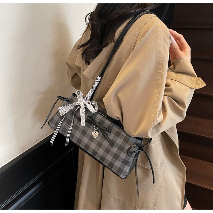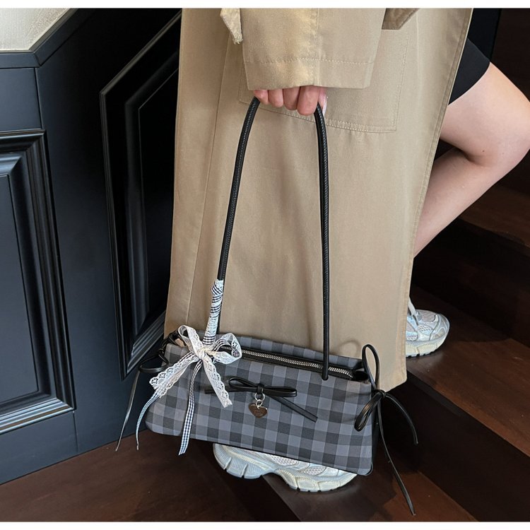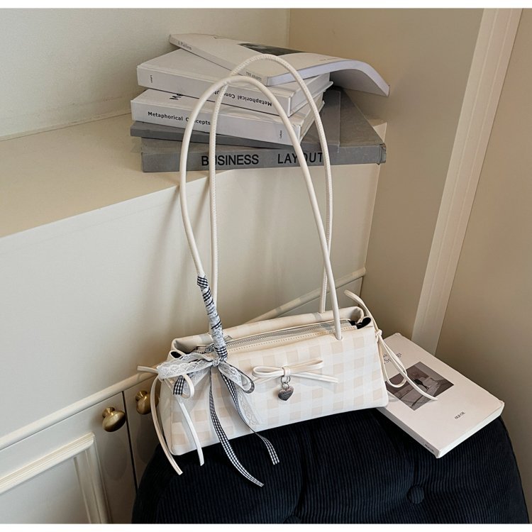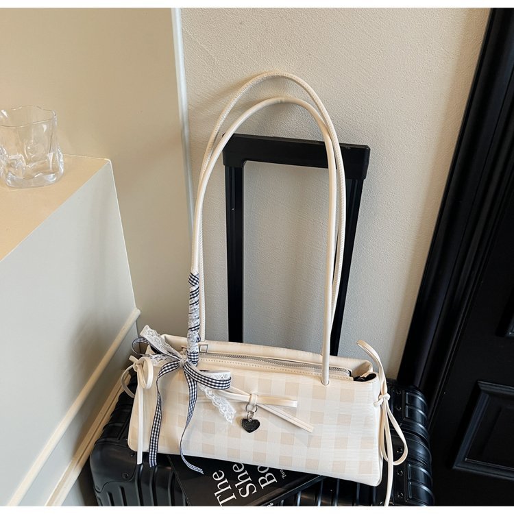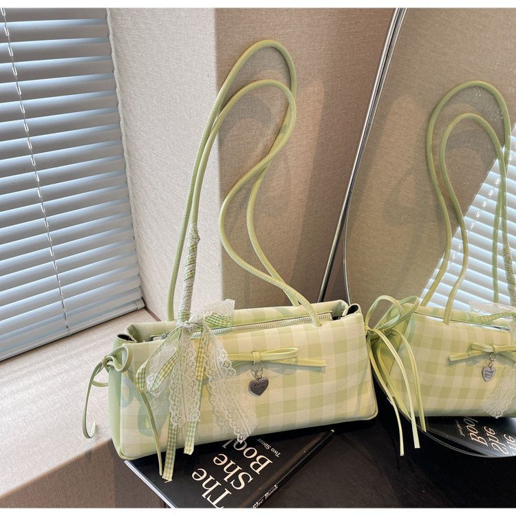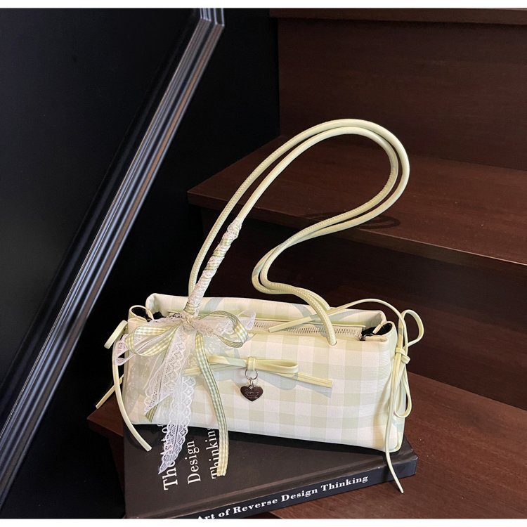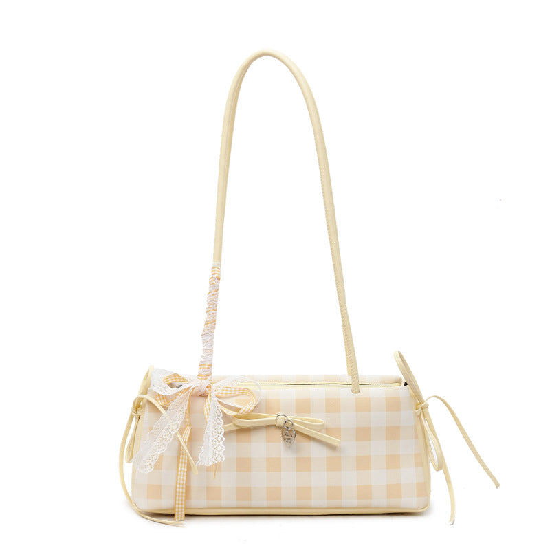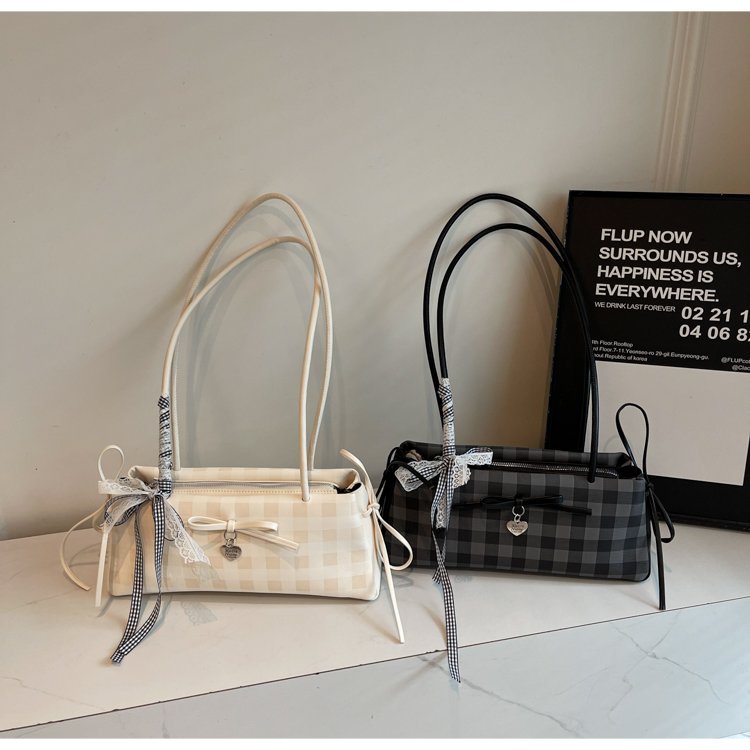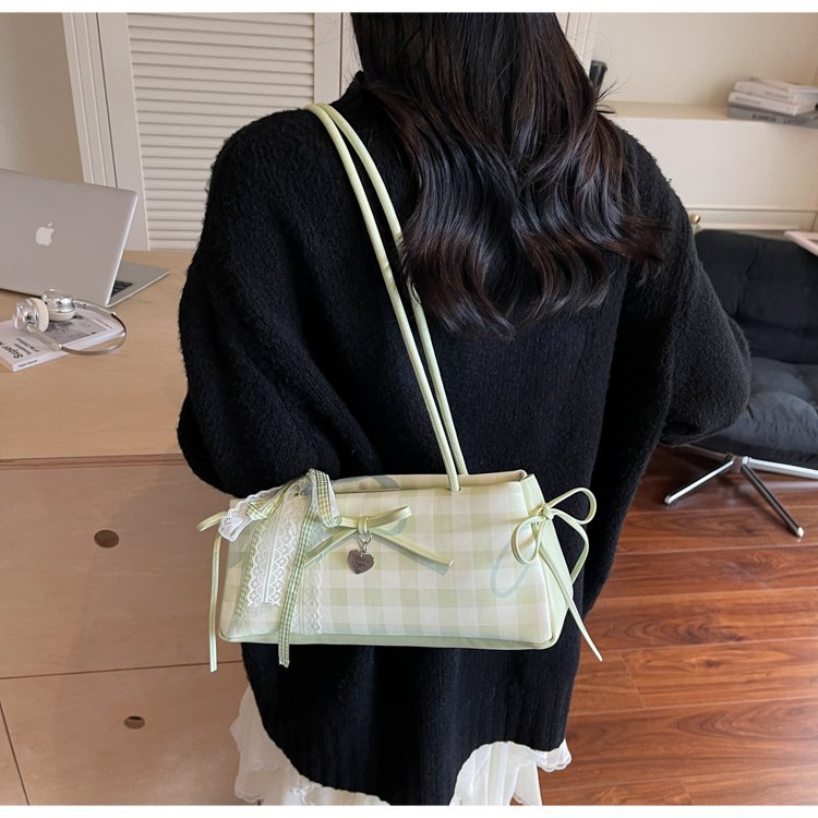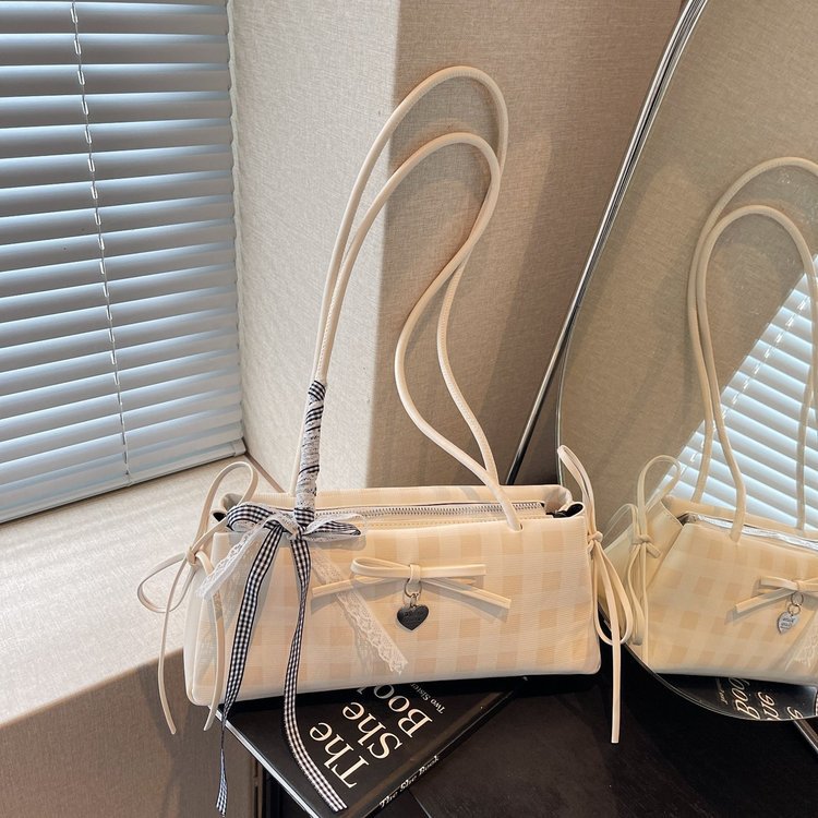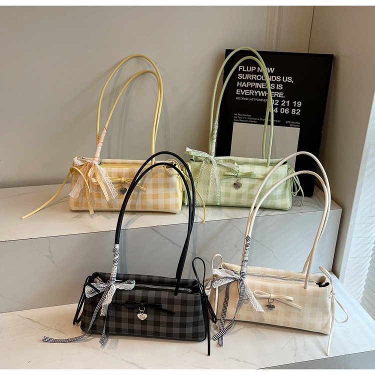 Dopamine Plaid Handbag Small Tote Bag for Women Summer2025New Ballet Style Bow Baguette Bag Underarm Bag Trendy