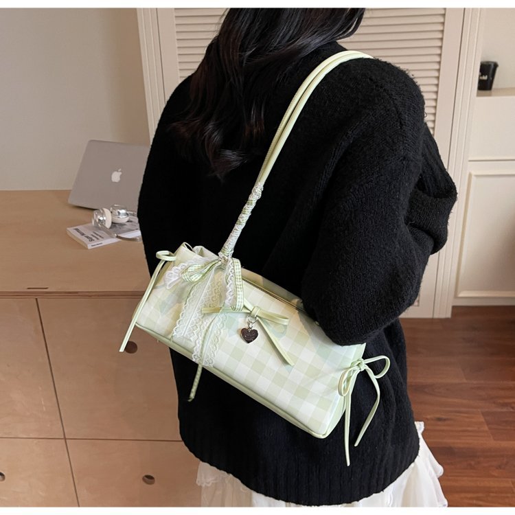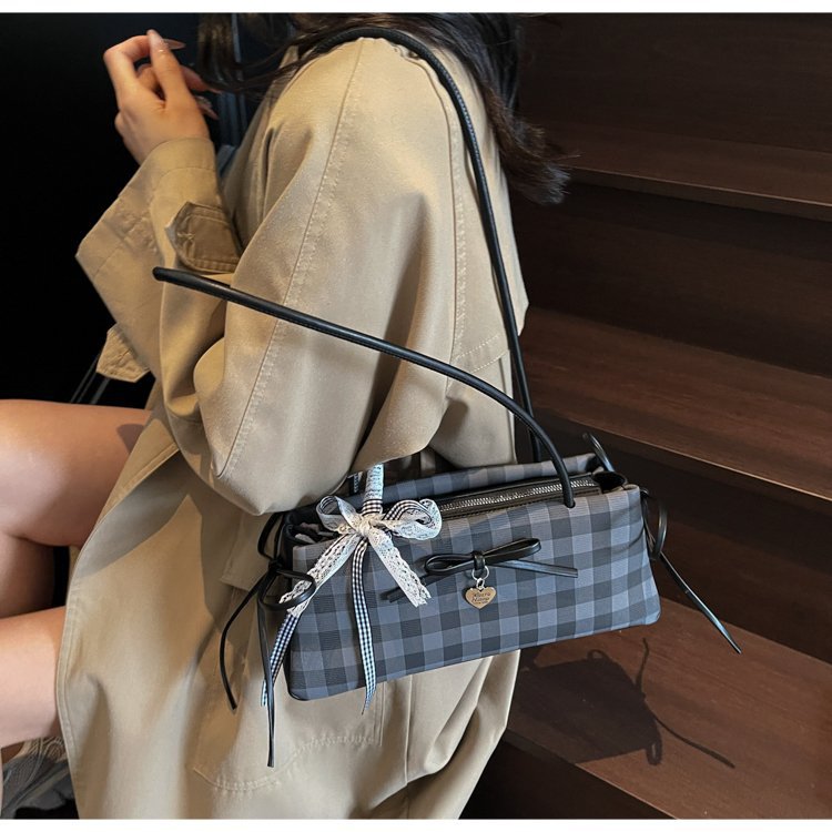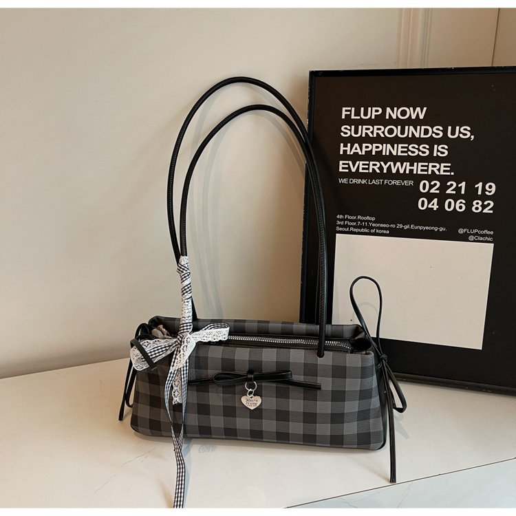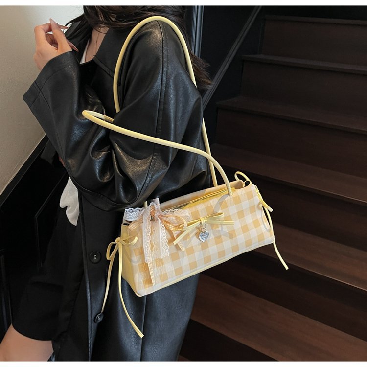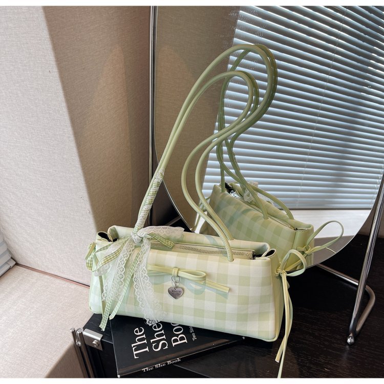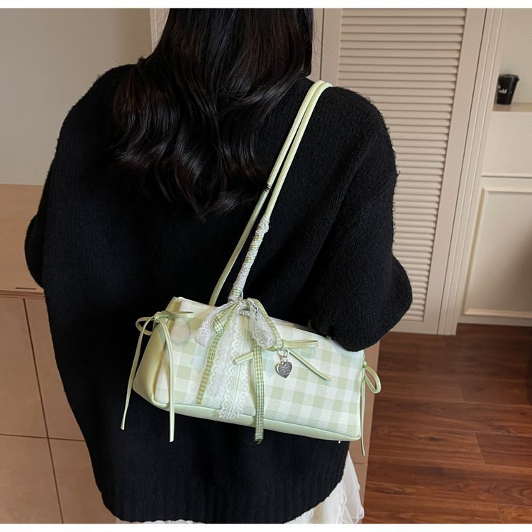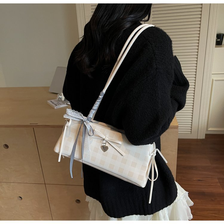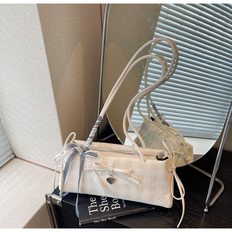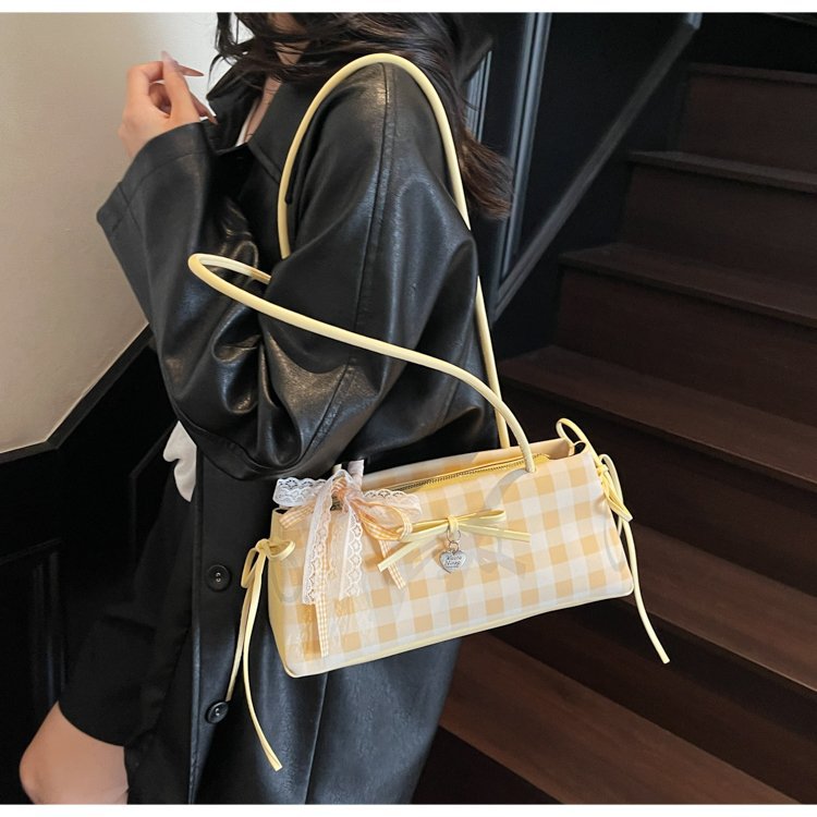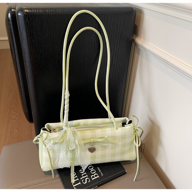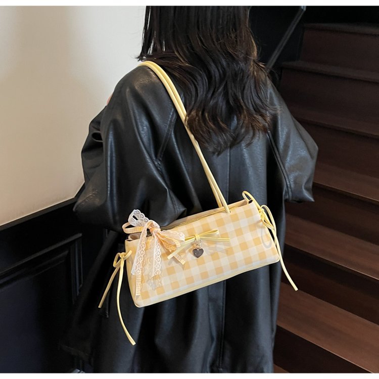 Dopamine Plaid Handbag Small Tote Bag for Women Summer2025New Ballet Style Bow Baguette Bag Underarm Bag Trendy