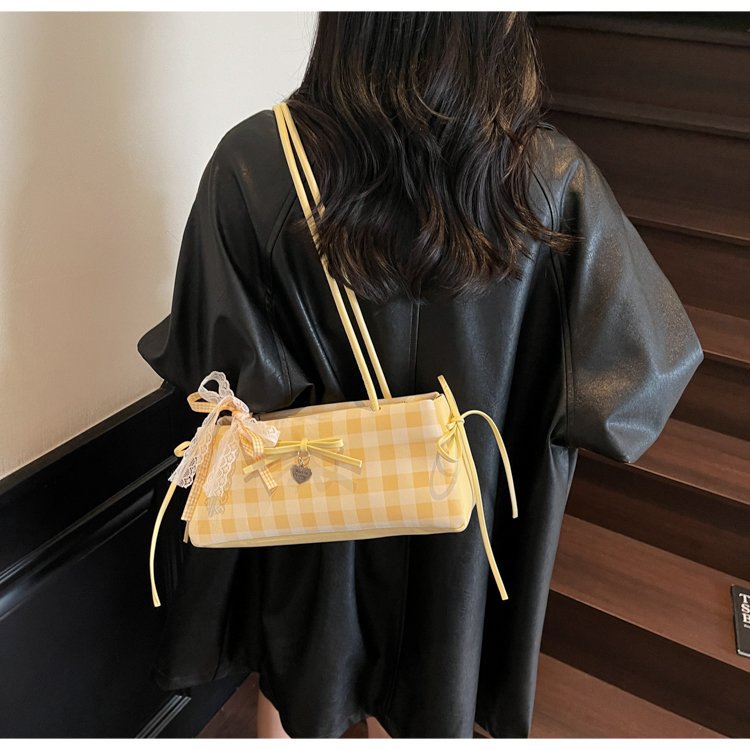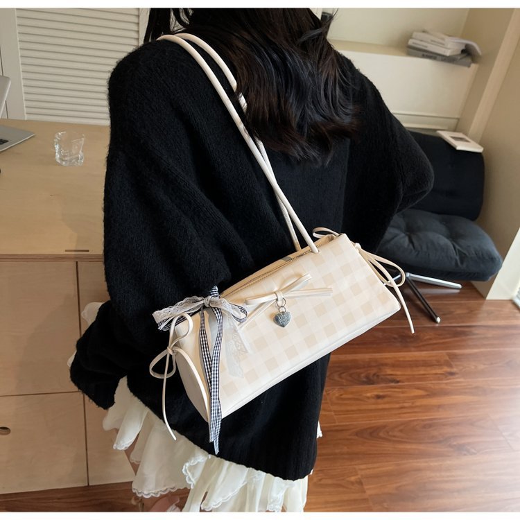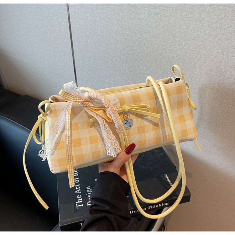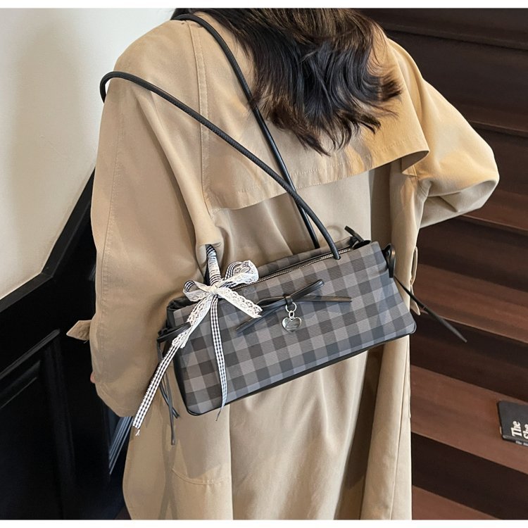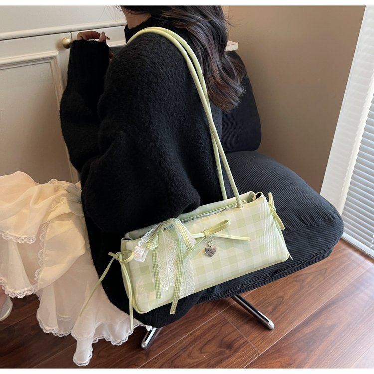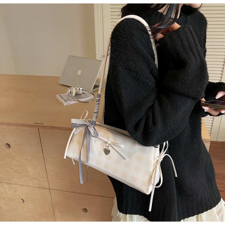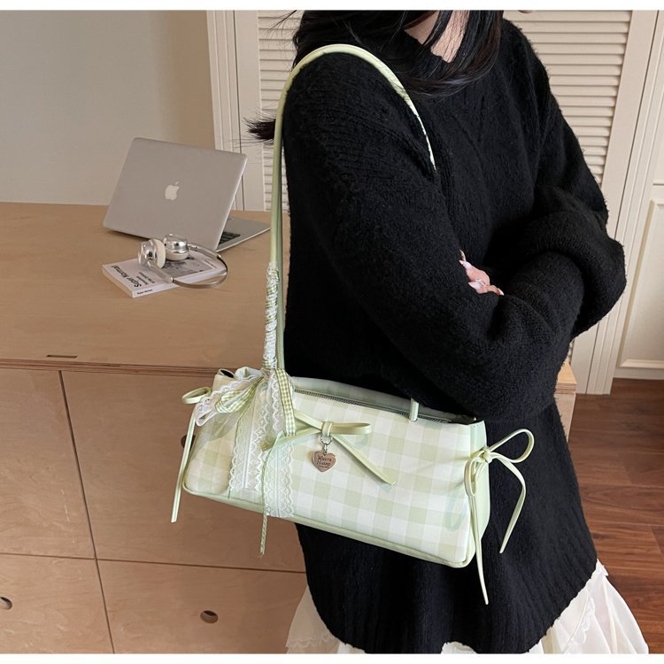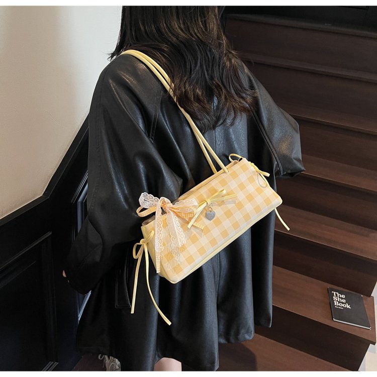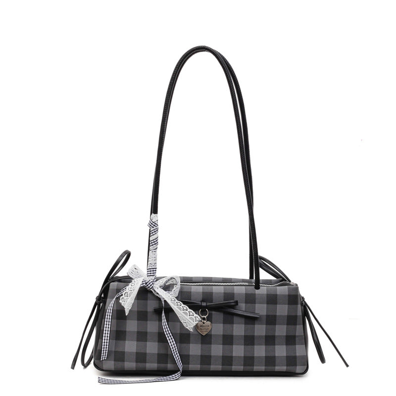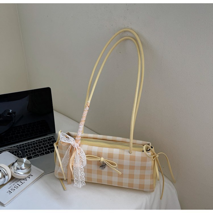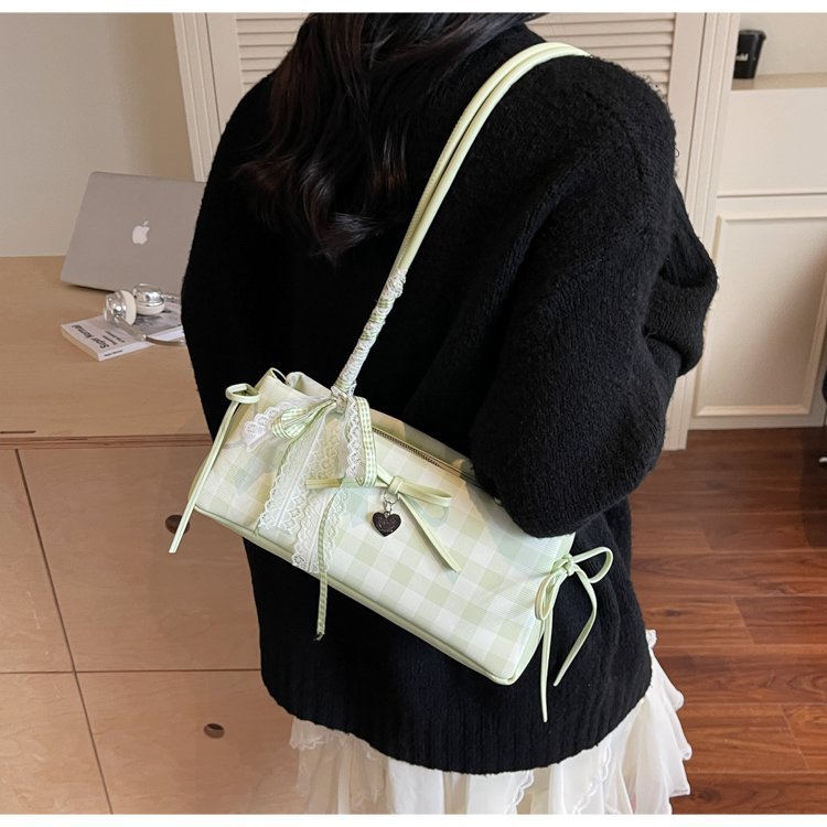 Dopamine Plaid Handbag Small Tote Bag for Women Summer2025New Ballet Style Bow Baguette Bag Underarm Bag Trendy