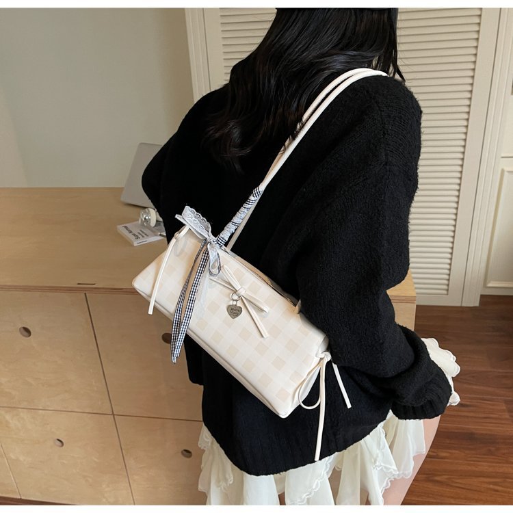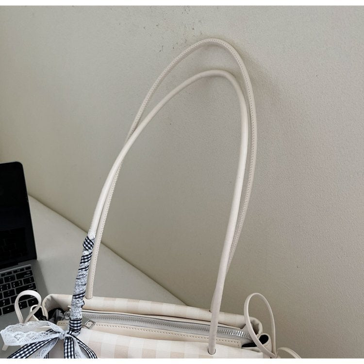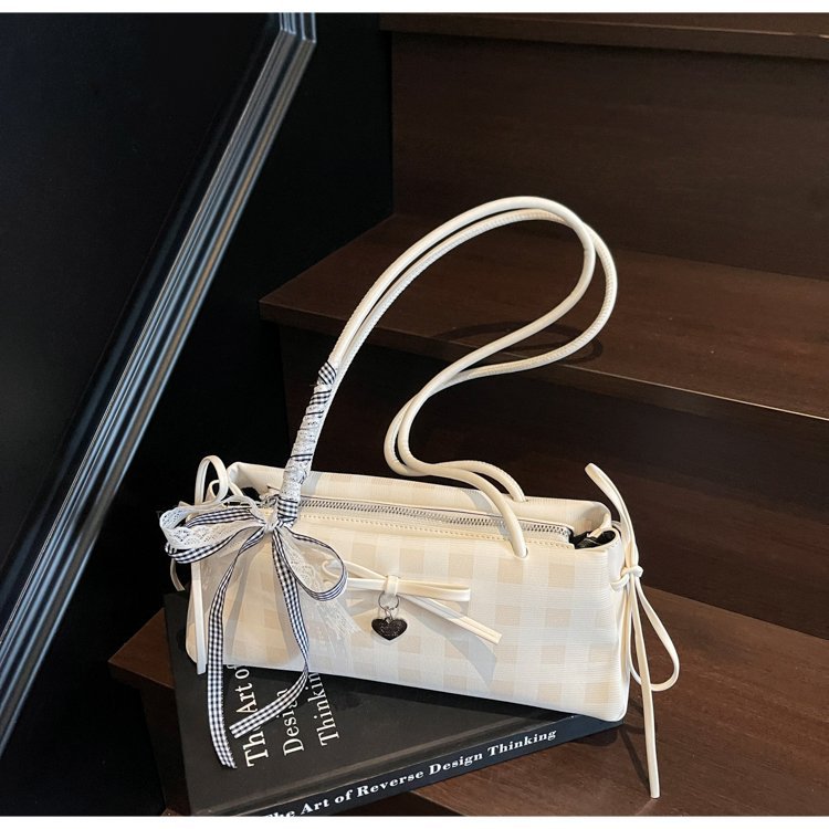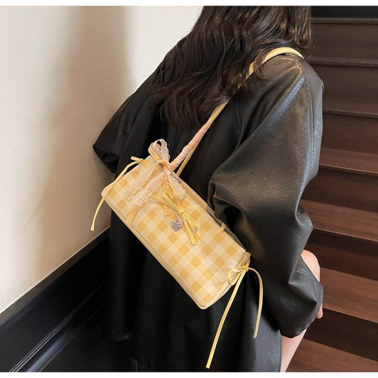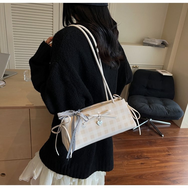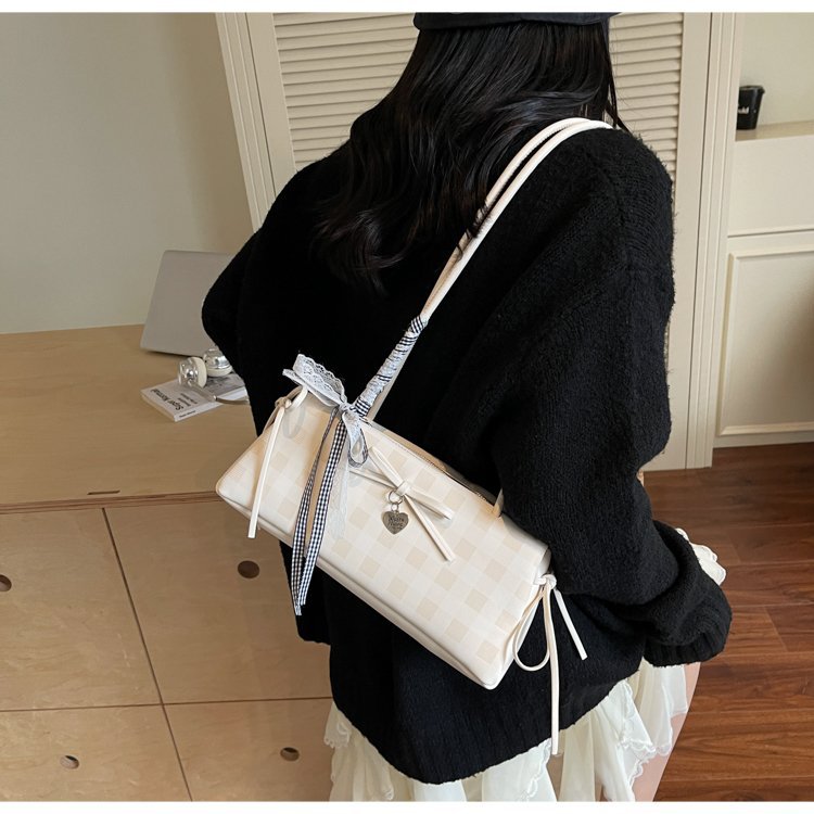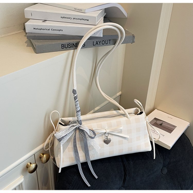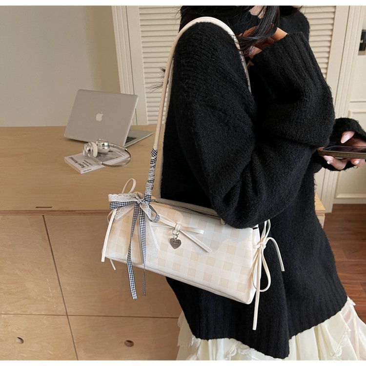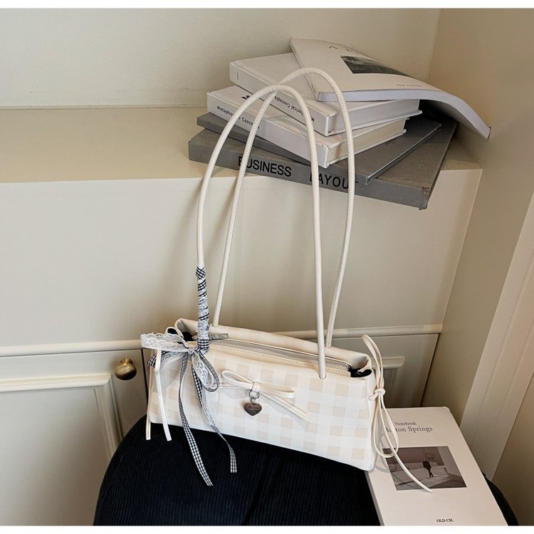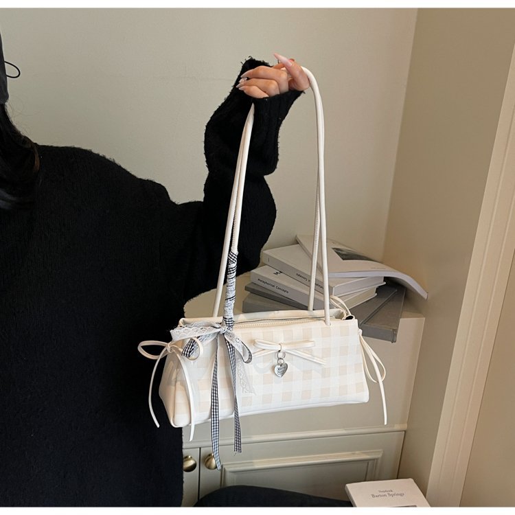 Dopamine Plaid Handbag Small Tote Bag for Women Summer2025New Ballet Style Bow Baguette Bag Underarm Bag Trendy