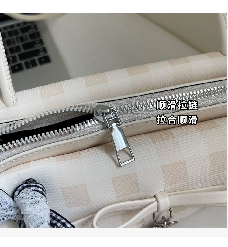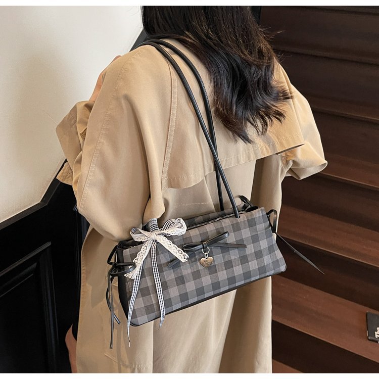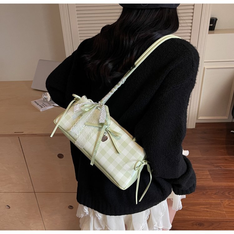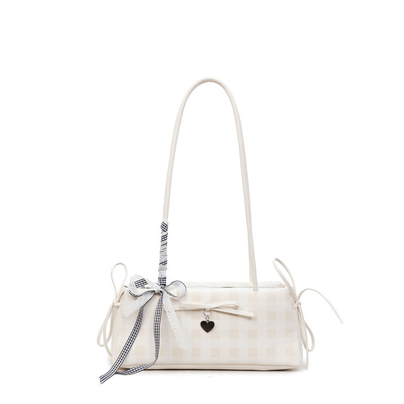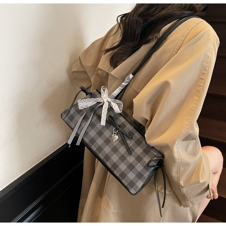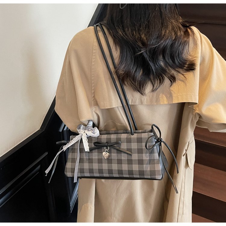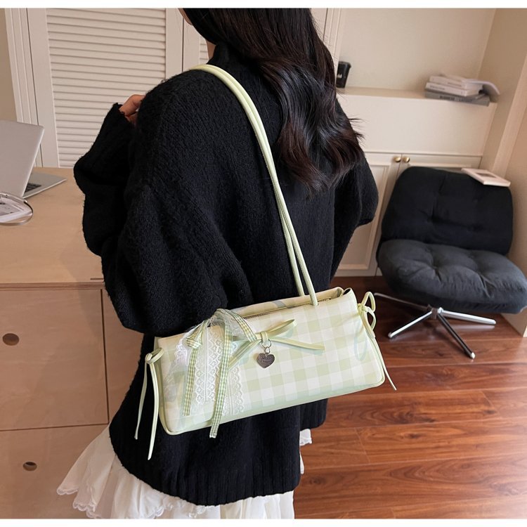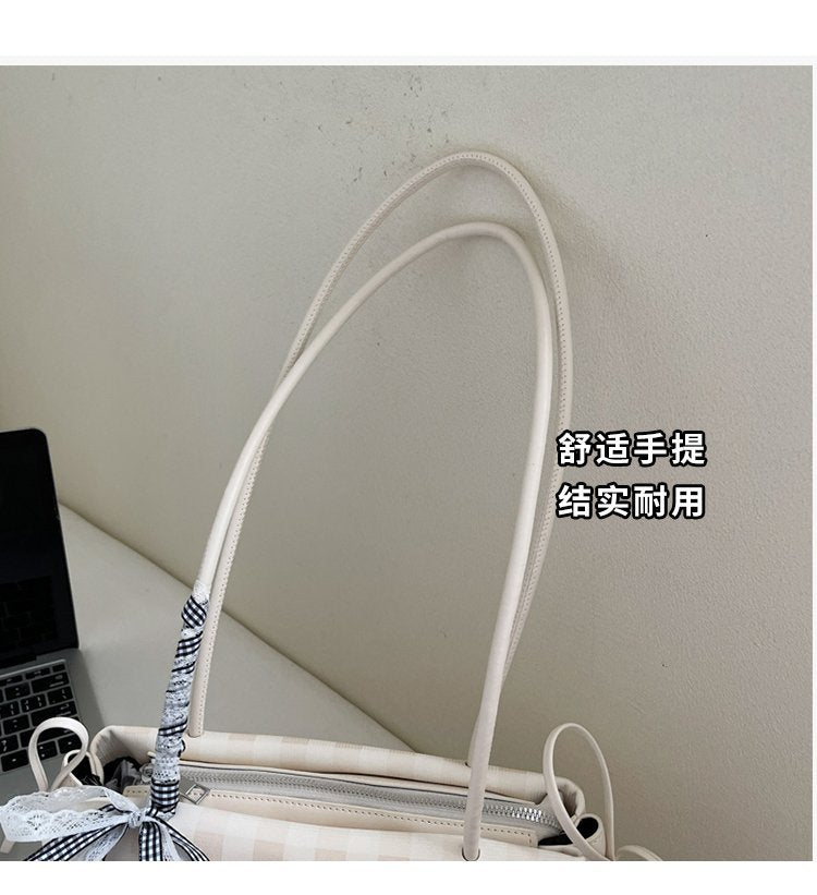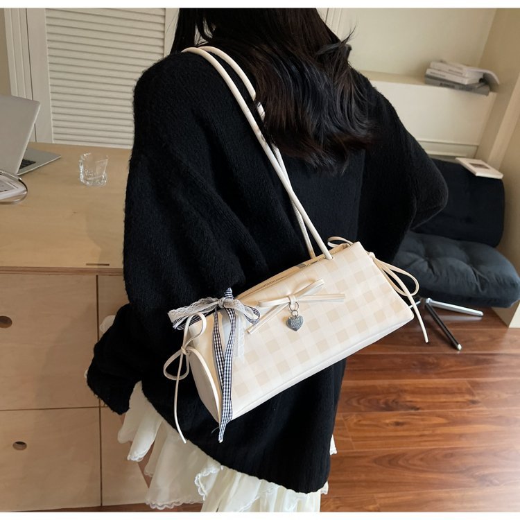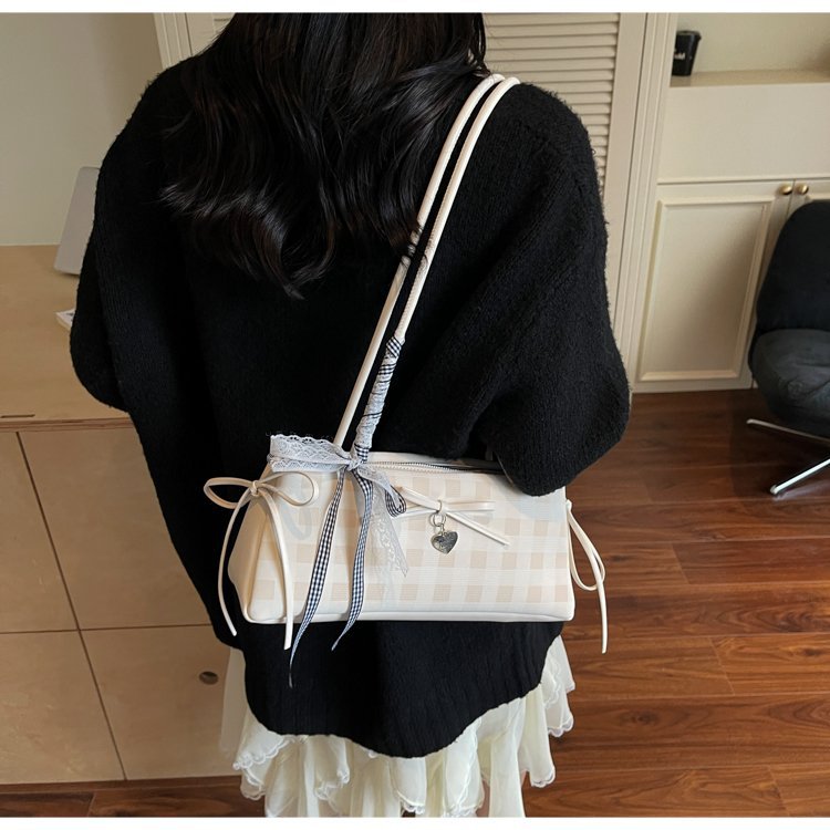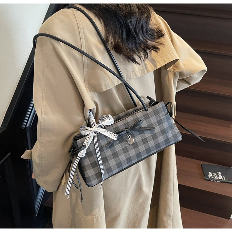 Dopamine Plaid Handbag Small Tote Bag for Women Summer2025New Ballet Style Bow Baguette Bag Underarm Bag Trendy