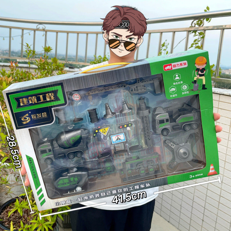 Durable Children's Toy Car Pull-Back Car Simulation Excavator Engineering Vehicle Fire Truck Airplane Model Boy's Gift