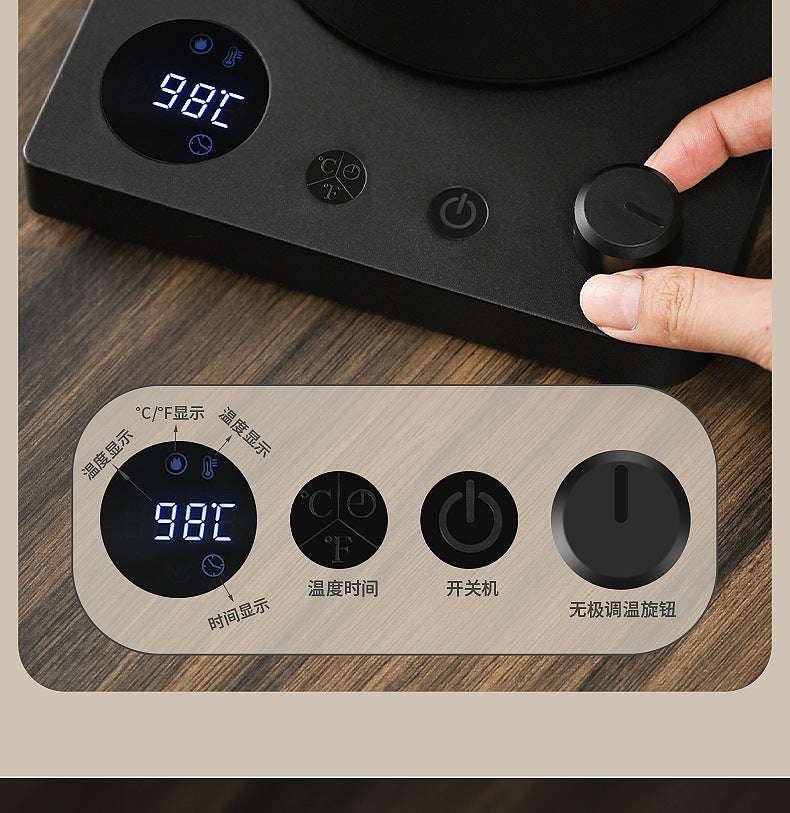 Electric Kettle Cross-Border Knob Temperature Control Narrow Spout Long Spout Pour Over Coffee Pot Stainless Steel Kettle Electric Kettle