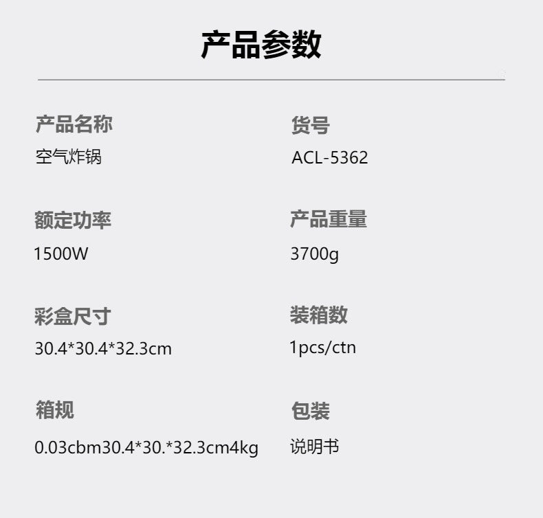 European Standard Cross-Border Air Fryer European Standard Multifunctional Smart Home Fully Automatic3L Large Capacity Electric Fryer