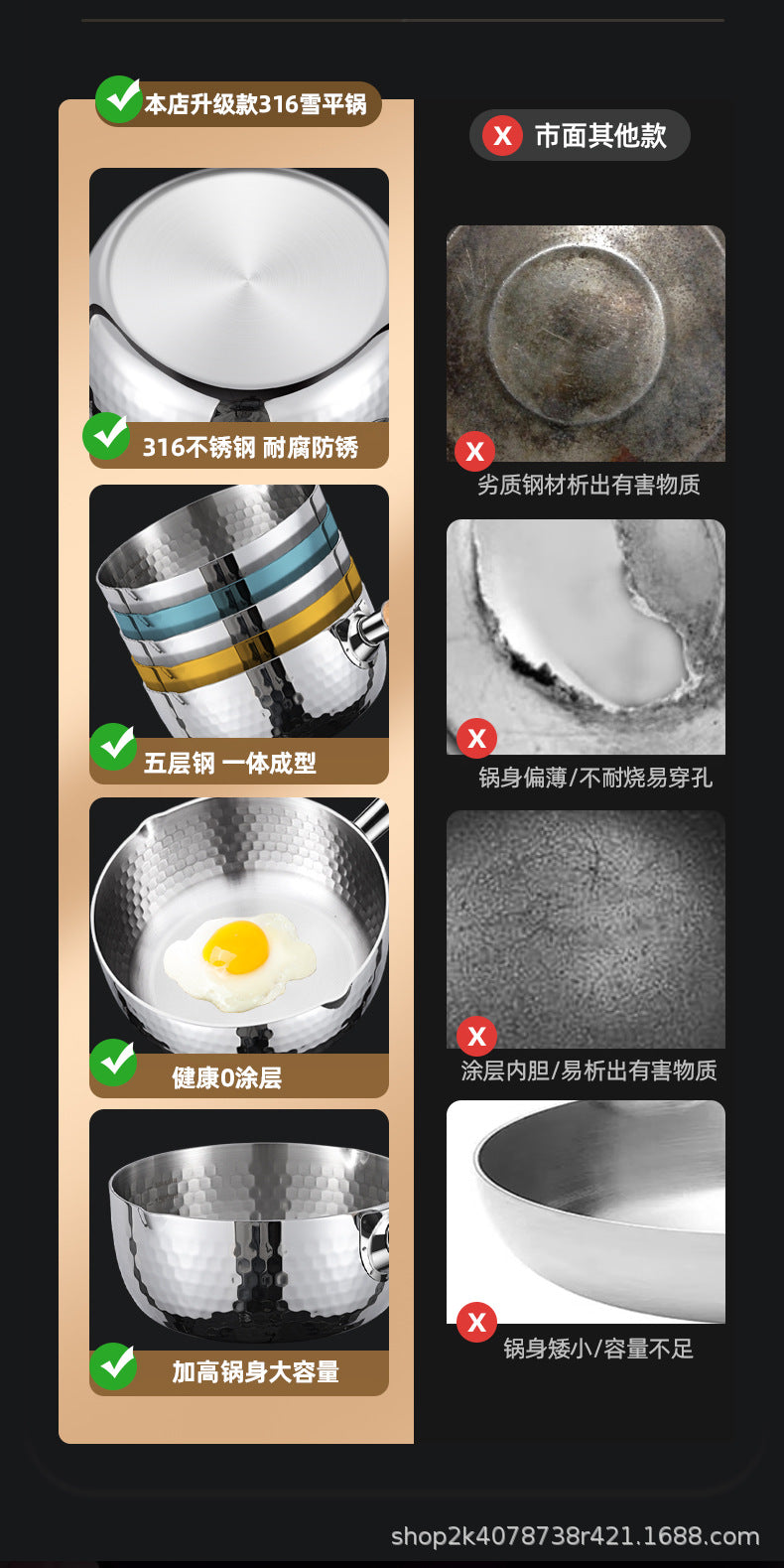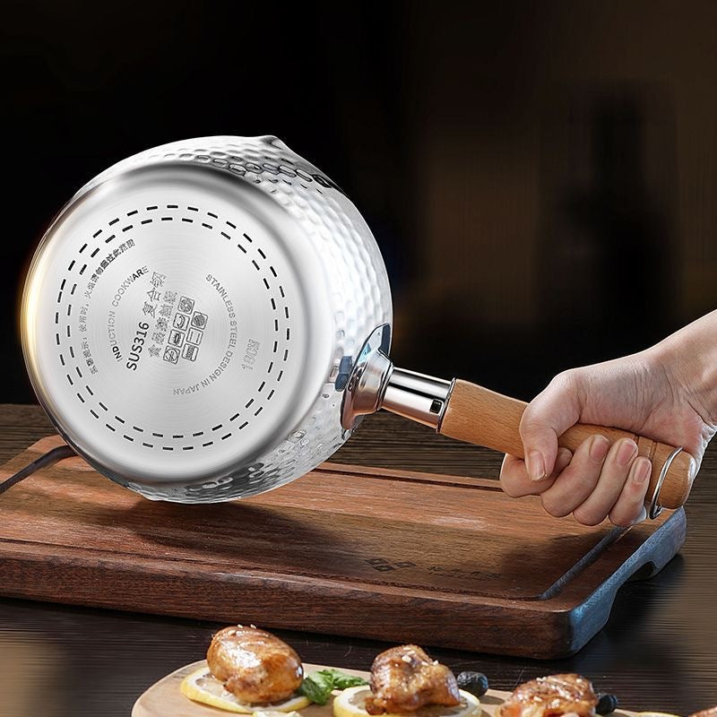 Extra Thick316Stainless Steel Milk Pot Japanese Yukihira Pot Non-Coated Baby Food Supplement Non-Stick Soup Pot Cooking Pot Instant Noodle Pot