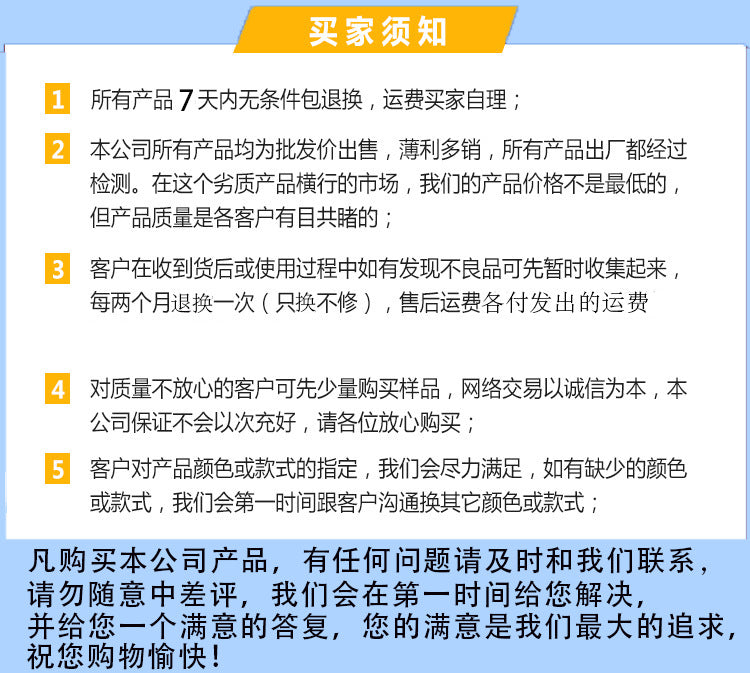 【Purchase Instructions】:Products are inspected by professionals before leaving the factory. If you find any quality issues with the product, you can contact online customer service for timely resolution. Before signing for the product, please verify with the courier that the quantity received matches what was ordered. If there is a shortage, please return the original goods. If there is no feedback within 3 days after signing for the product regarding shortages or quality issues, it will be considered as received.
