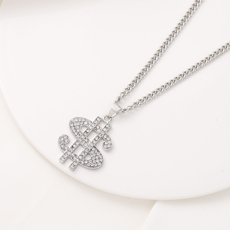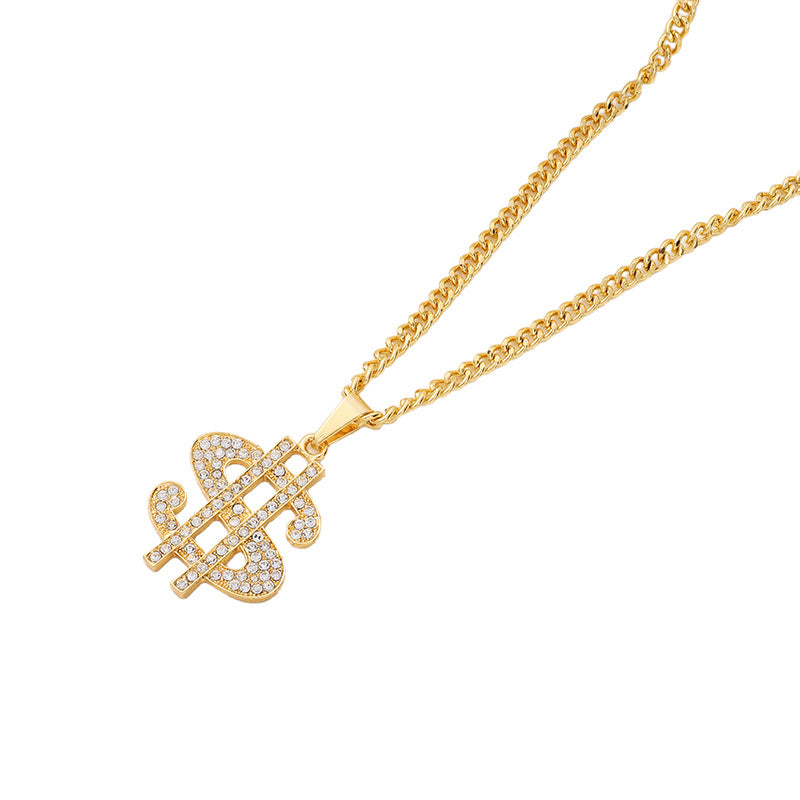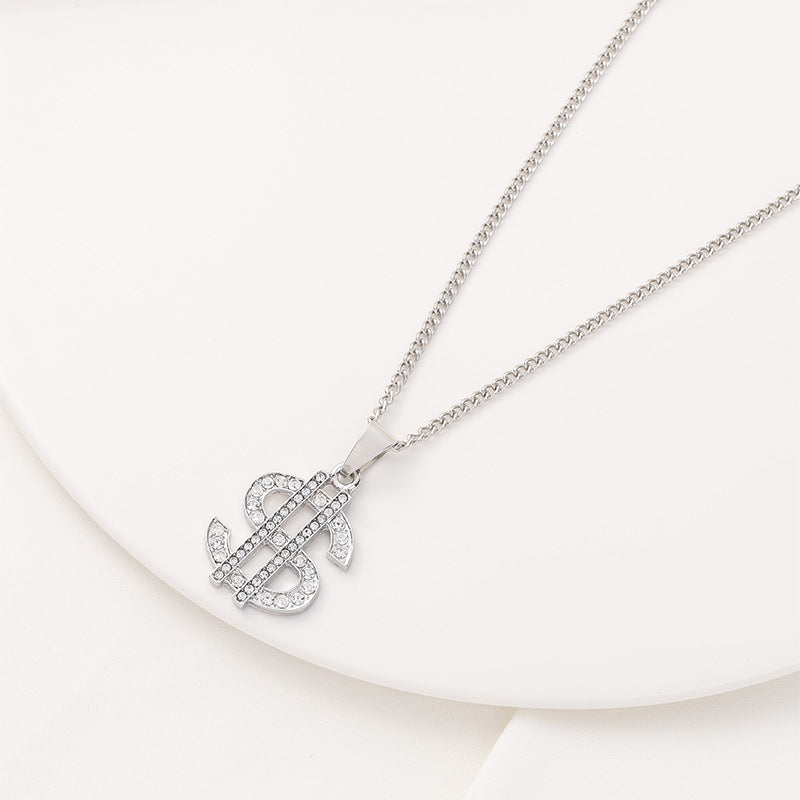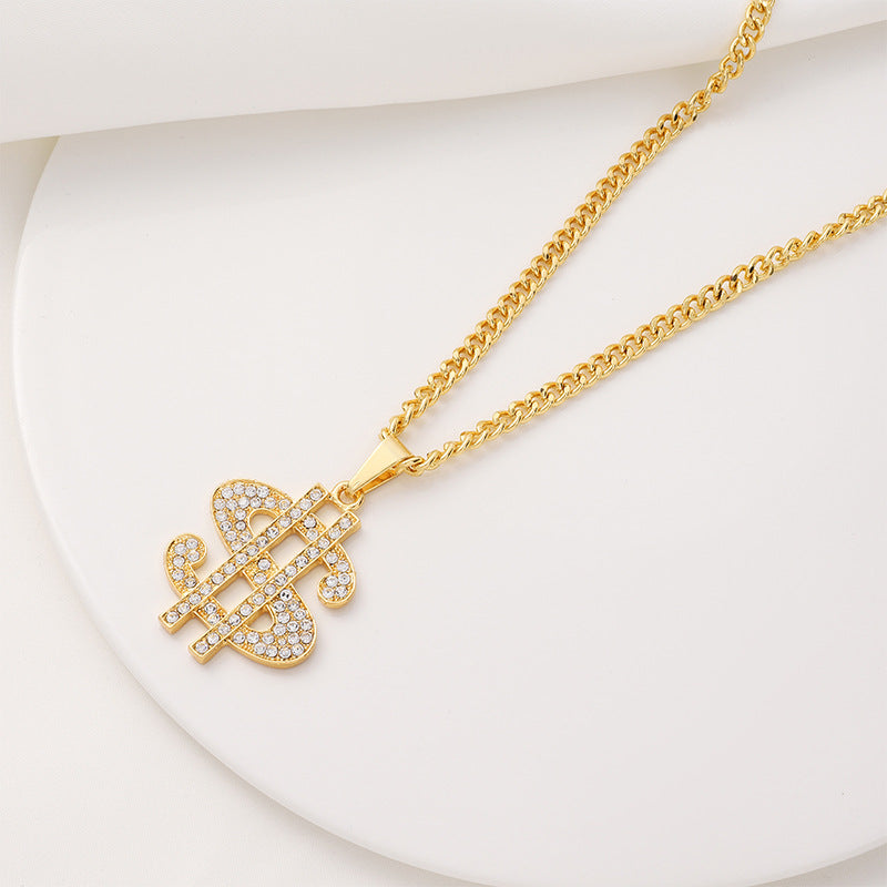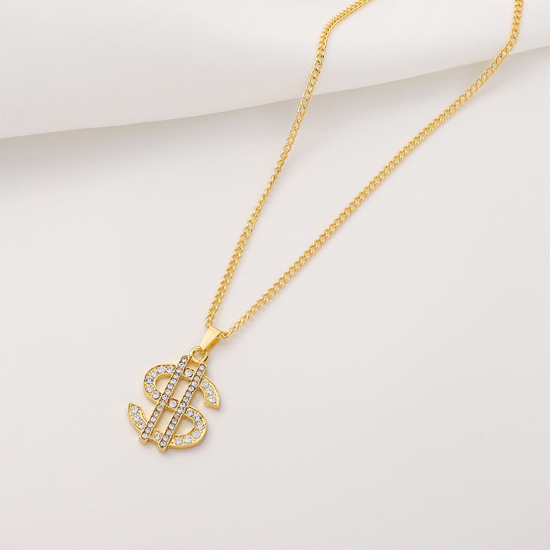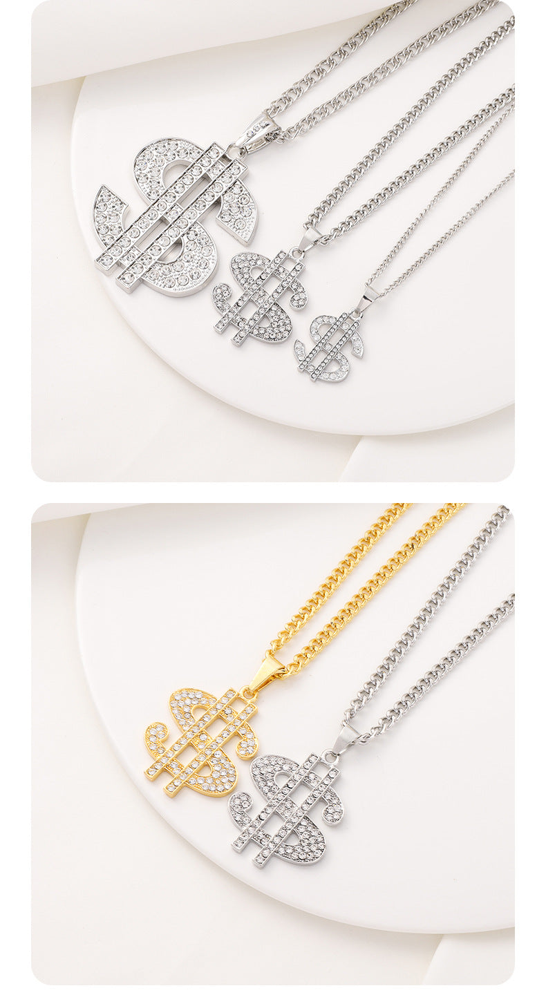Factory Direct Supply Exquisite Fashion Necklace Imitation Dollar Sign Diamond-Encrusted Jewelry Pendant In Stock Wholesale Luxury