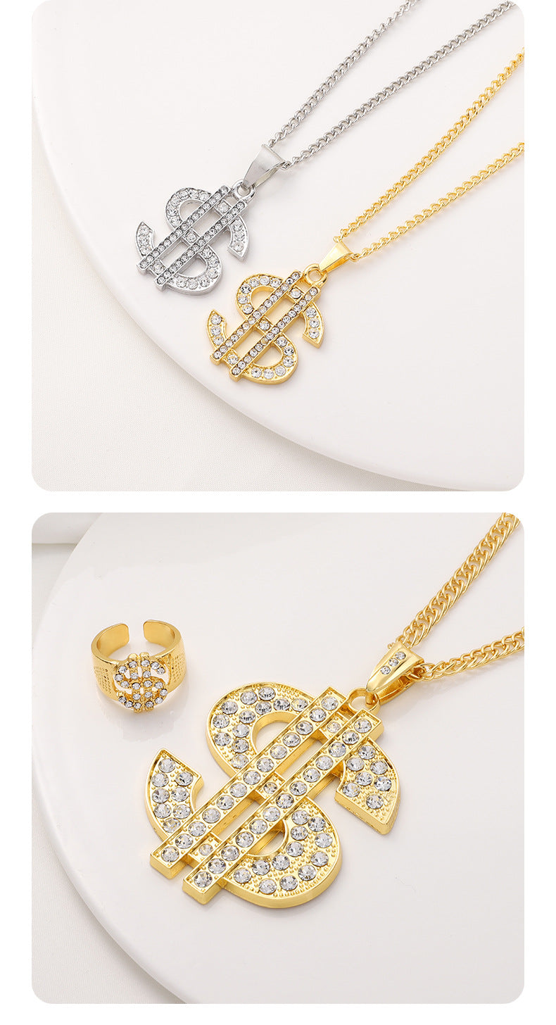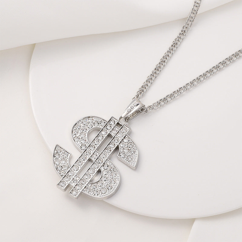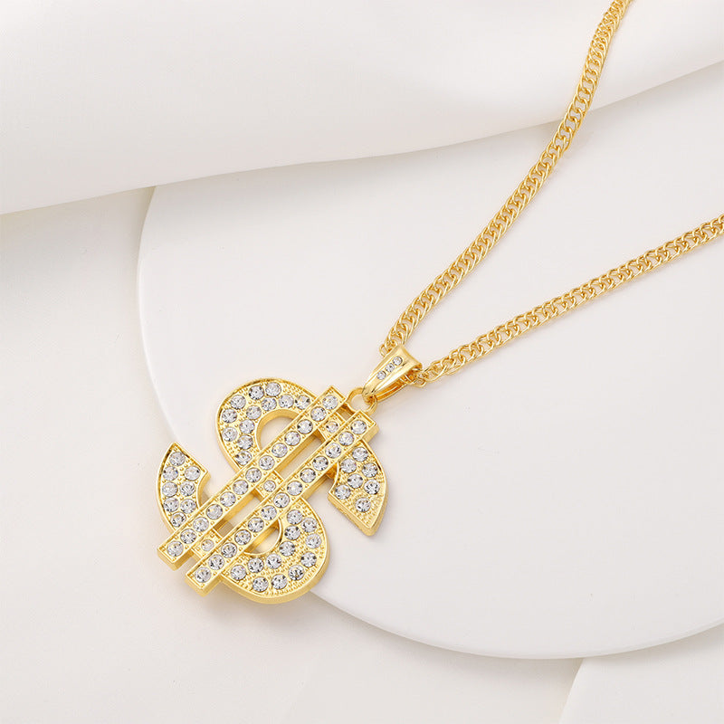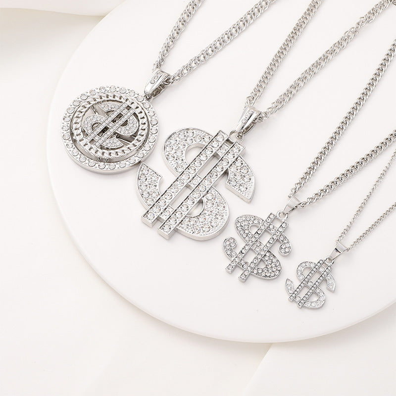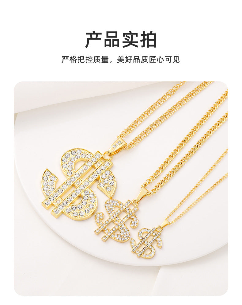 Factory Direct Supply Exquisite Fashion Necklace Imitation Dollar Sign Diamond-Encrusted Jewelry Pendant In Stock Wholesale Luxury