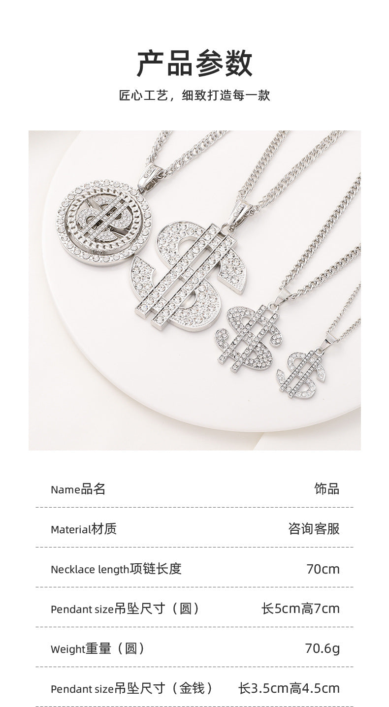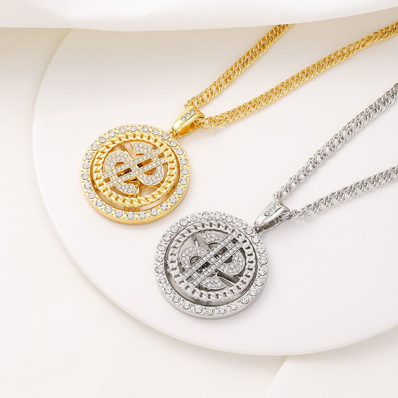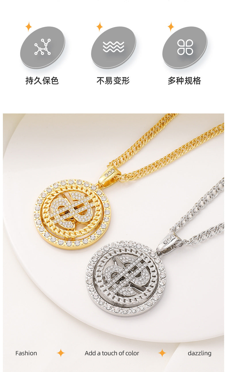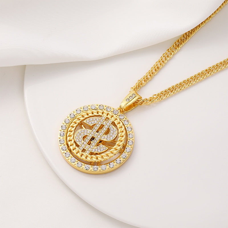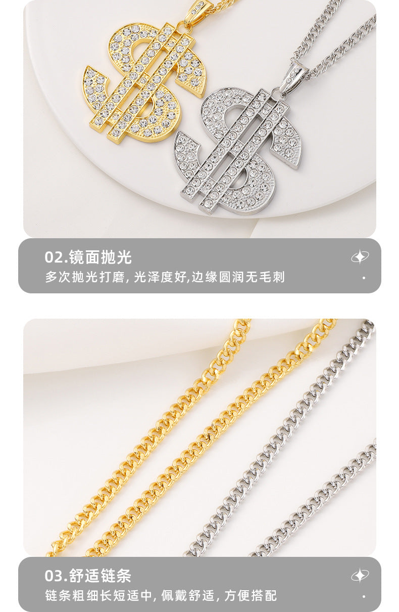 Factory Direct Supply Exquisite Fashion Necklace Imitation Dollar Sign Diamond-Encrusted Jewelry Pendant In Stock Wholesale Luxury