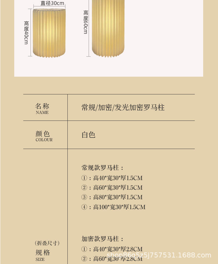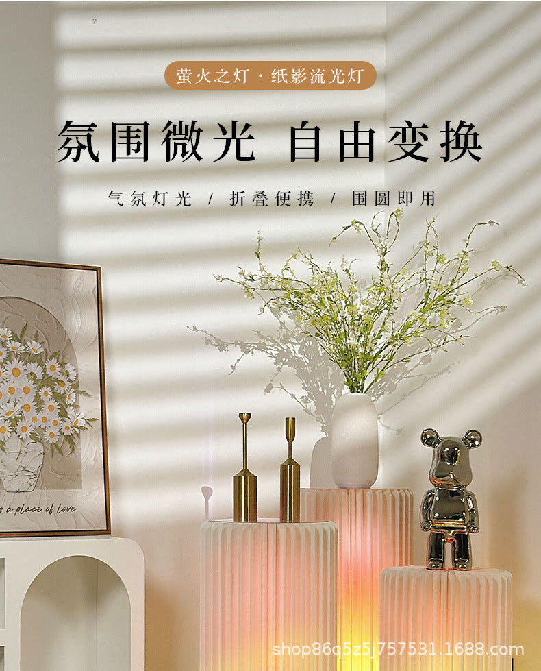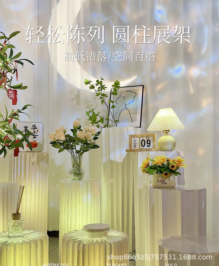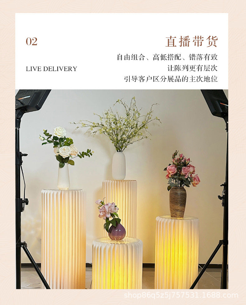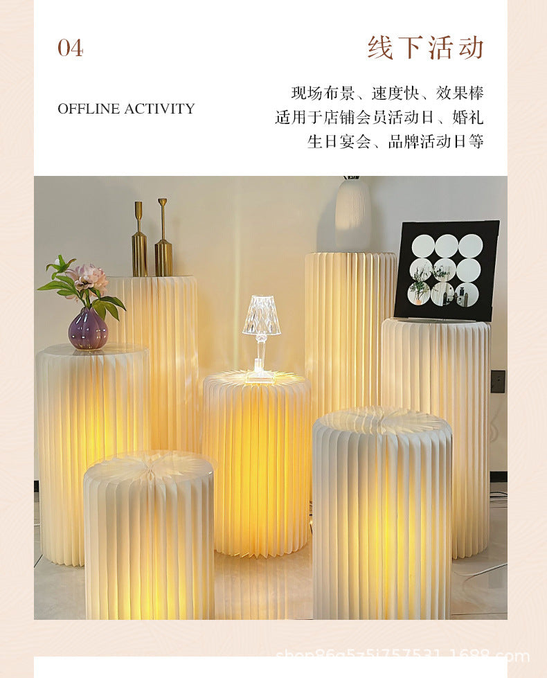 【Firefly Lantern】Live Streaming Background Decoration Foldable Round Column Paper Roman Column Folding Column Road Guide Ornament