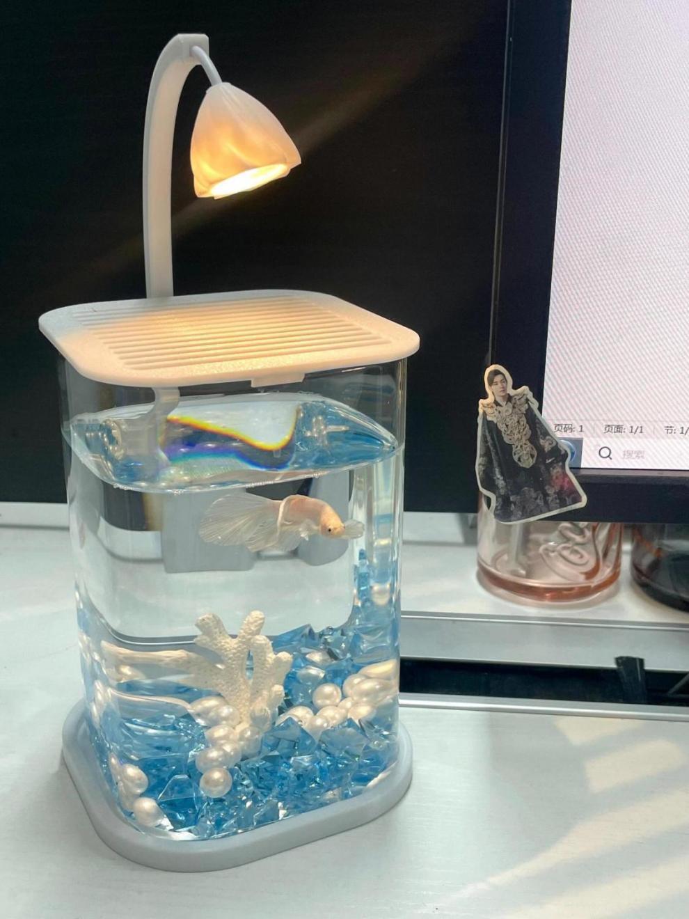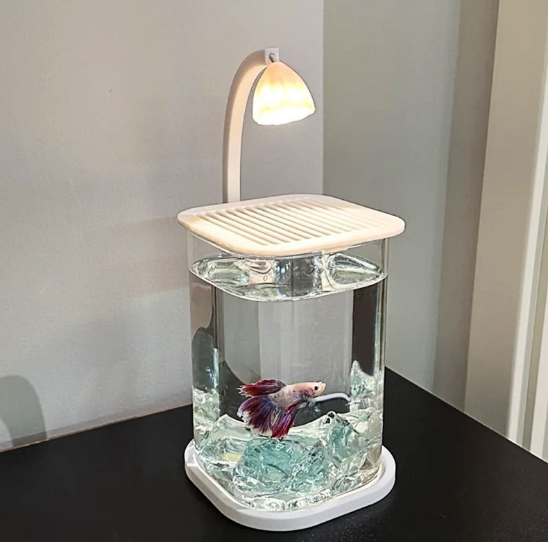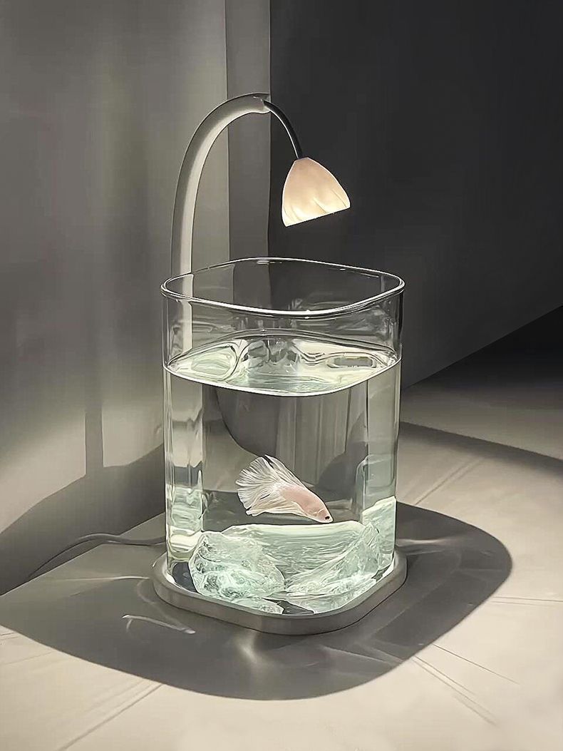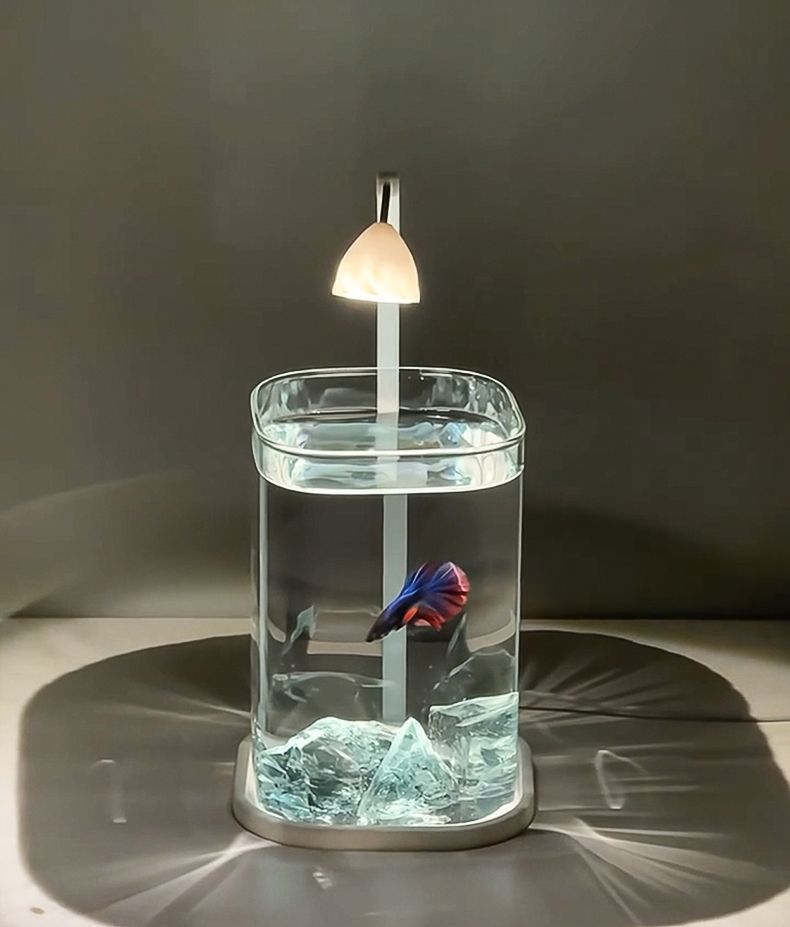 Fish Tank Betta Ultra-clear Small Lazy Glass Tank Living Room Creative Desktop Ornament Sensory Viewing Light