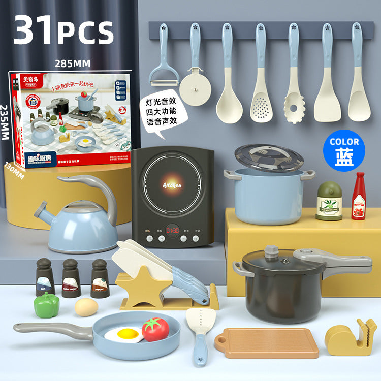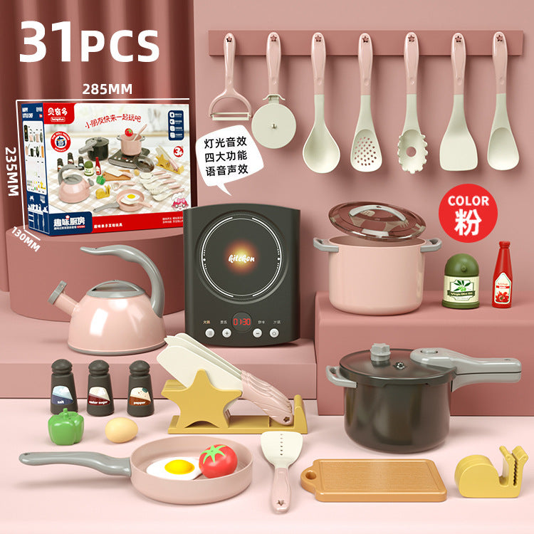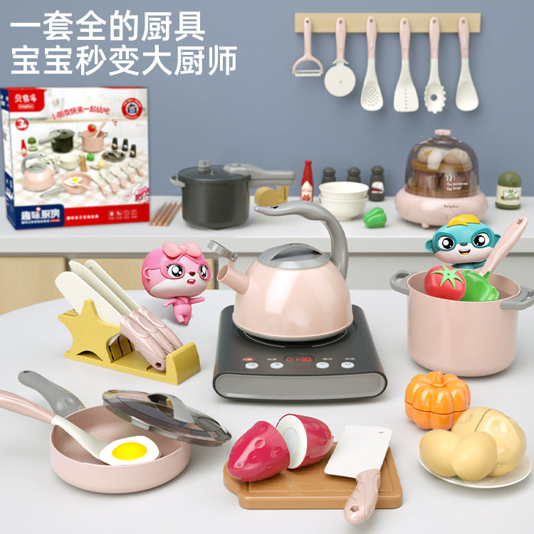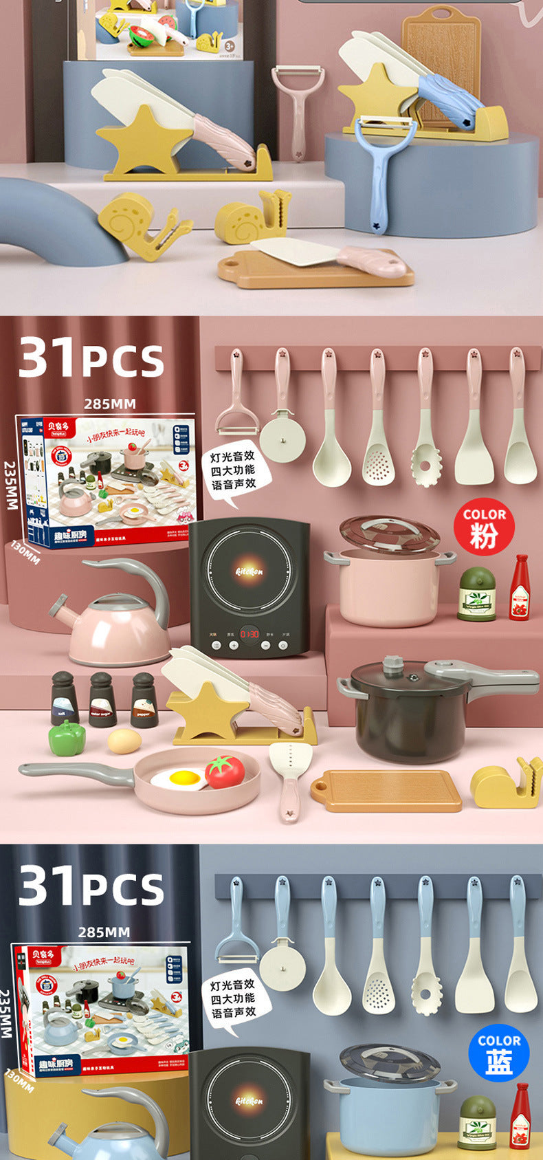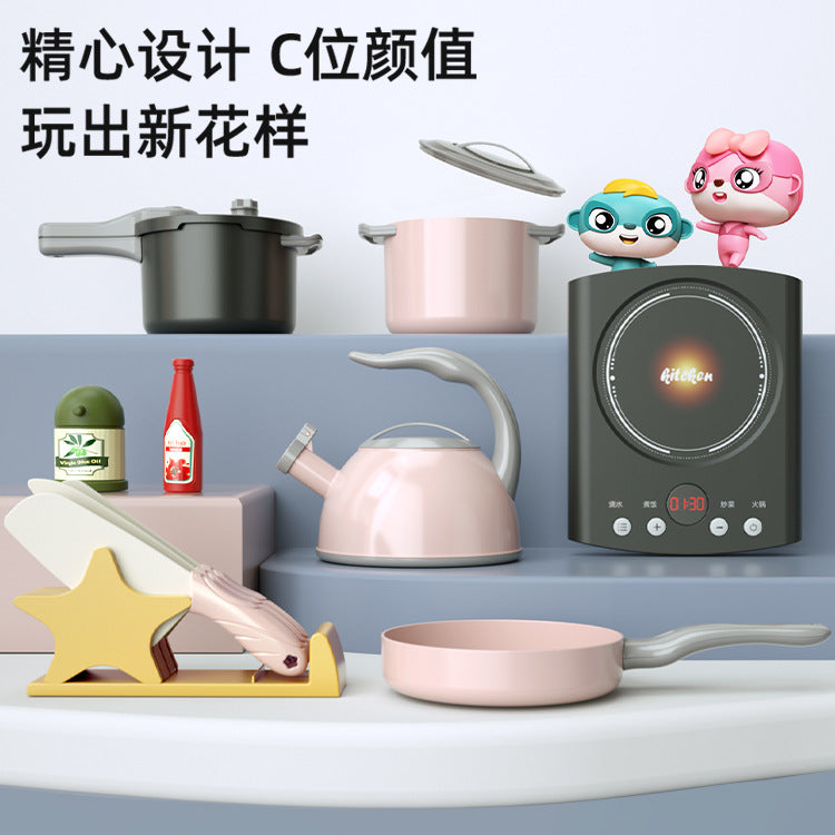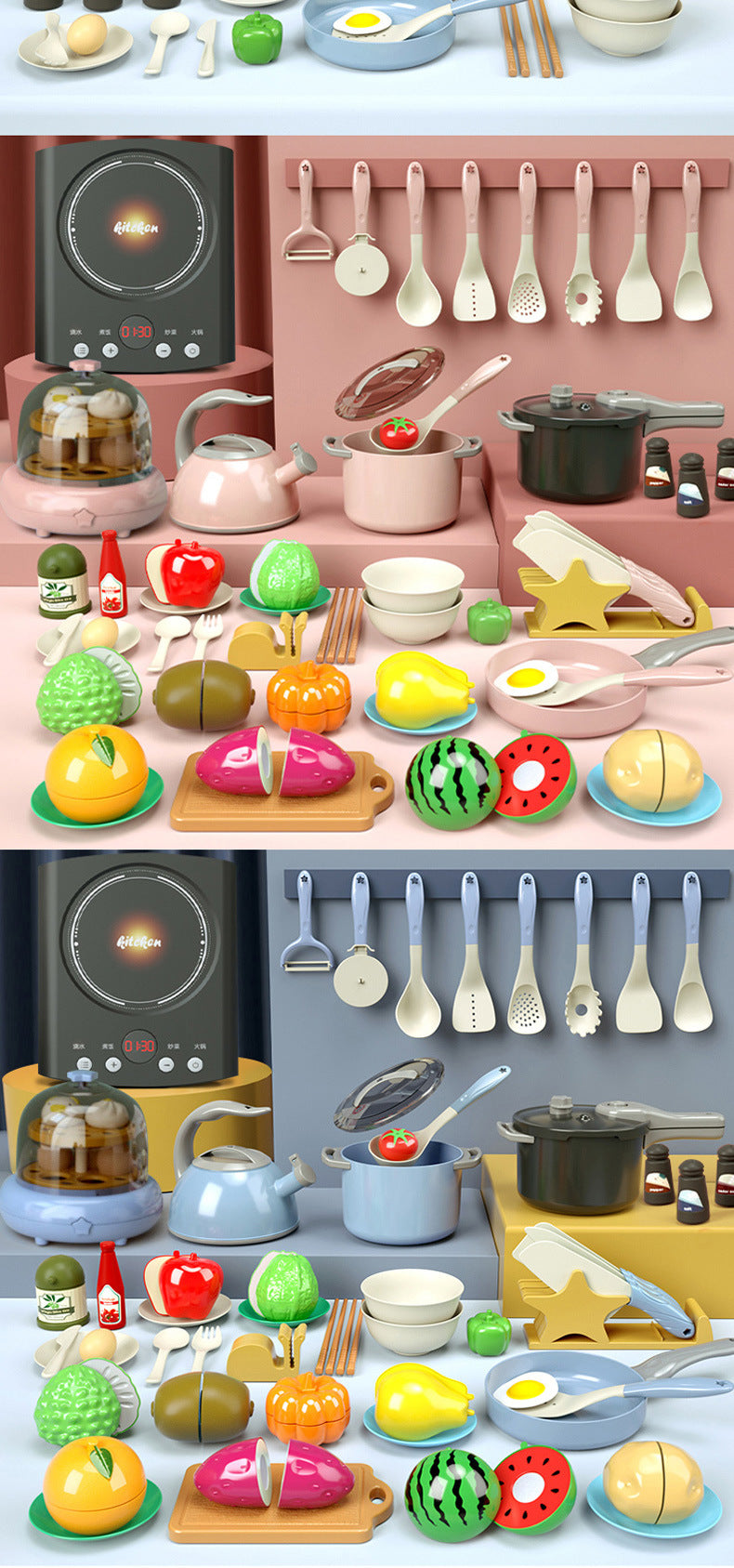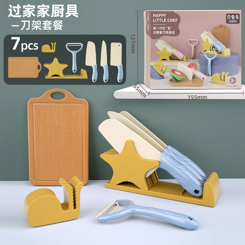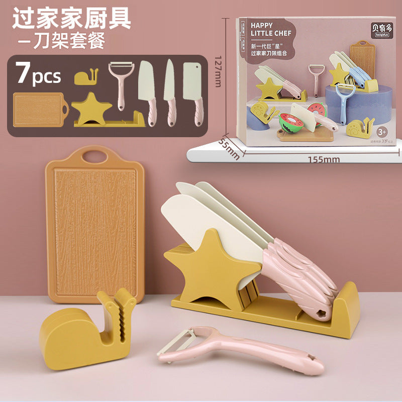 Free shipping children's pretend play kitchen toys Girl Cooking Induction Cooker Stir-fry Vegetable Fruit Cutting Fun Knife Holder Kitchenware