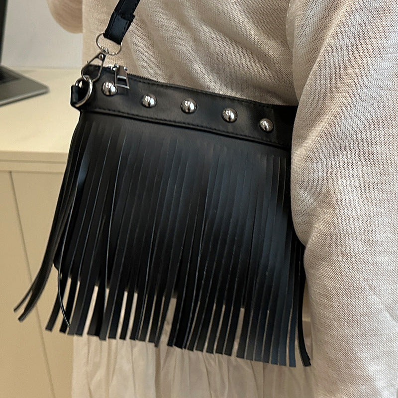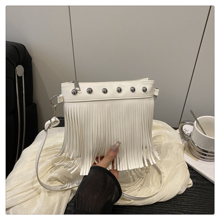 French retro tassel commuter bucket bag for women2025Summer new cross-border style soft shoulder crossbody tassel bag