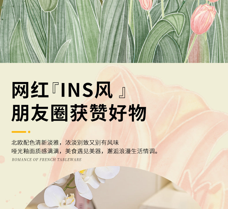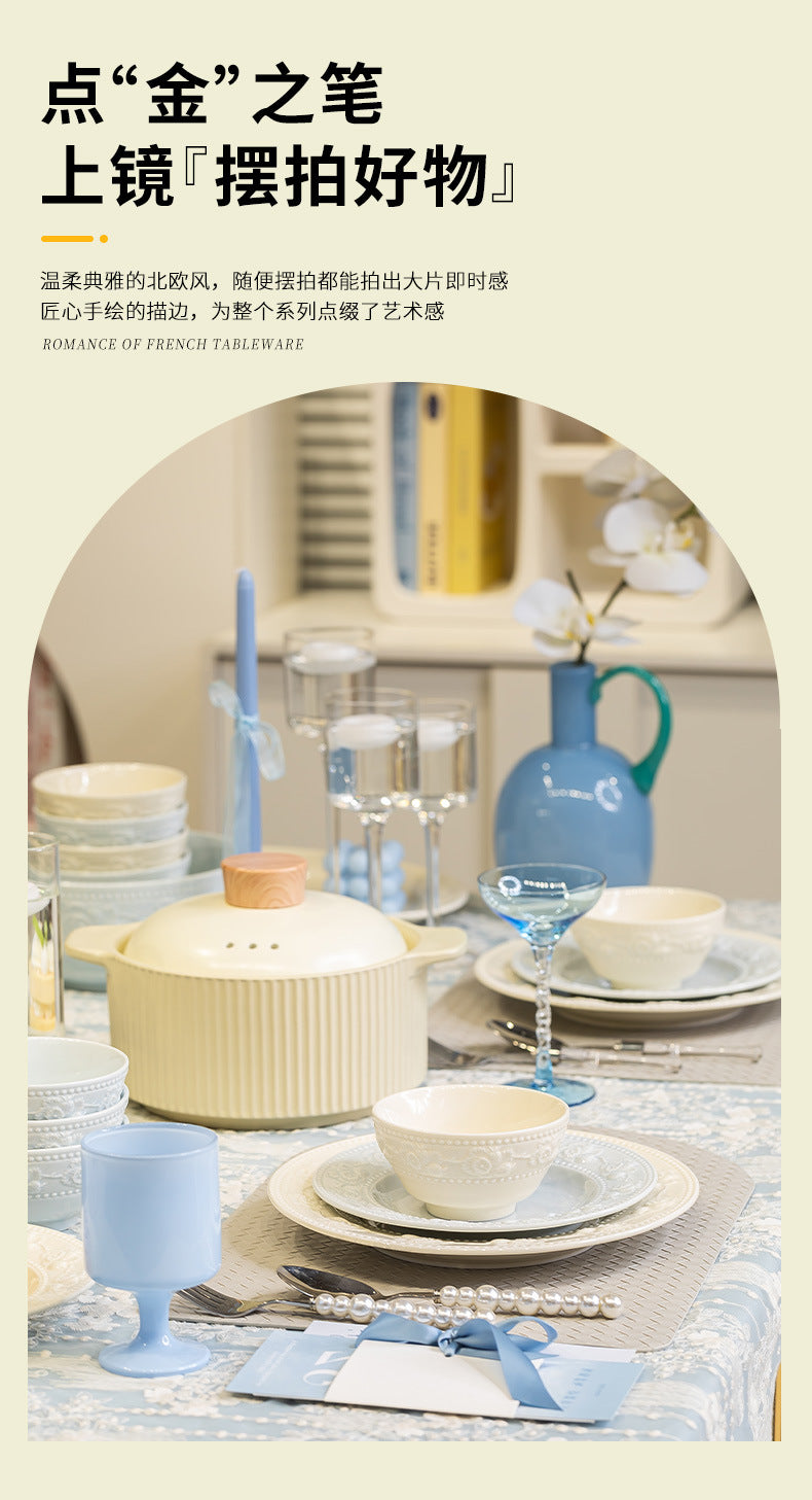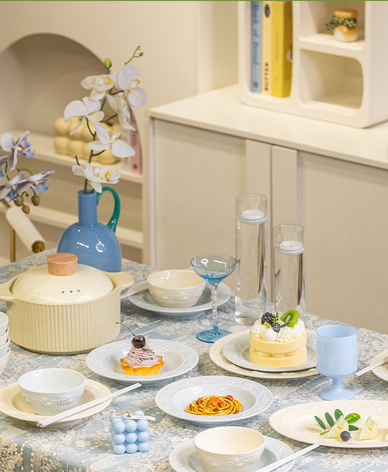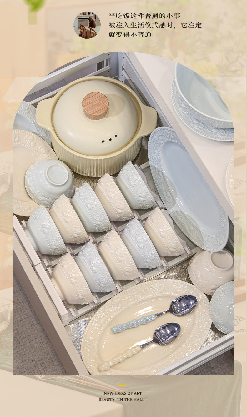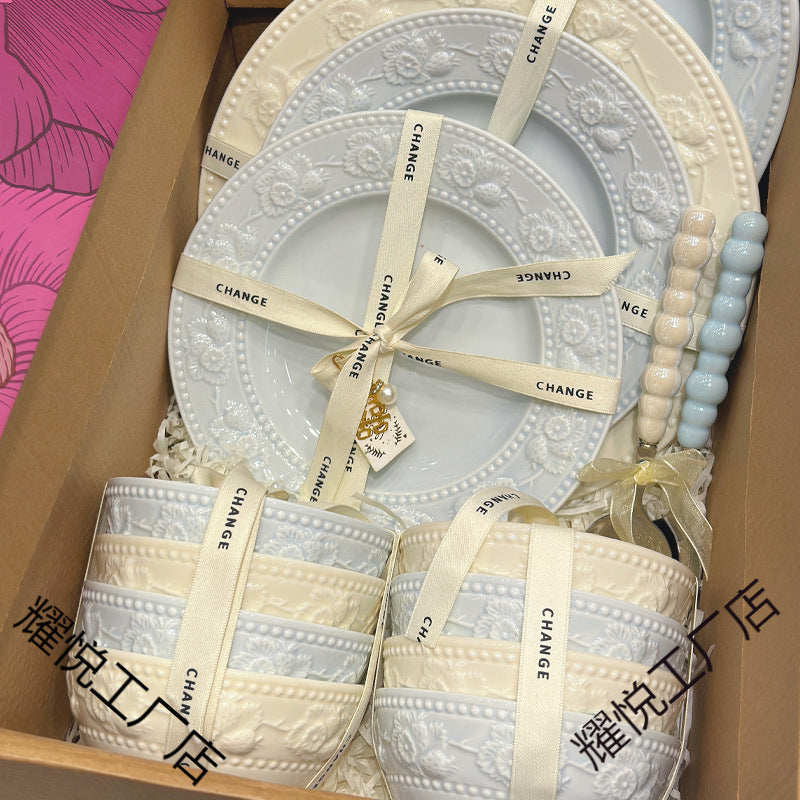French Style Tableware Bowl and Plate Set for Home Use, High Aesthetic Value for Girls, Cute Ceramic Bowl Set, New Embossed Tableware