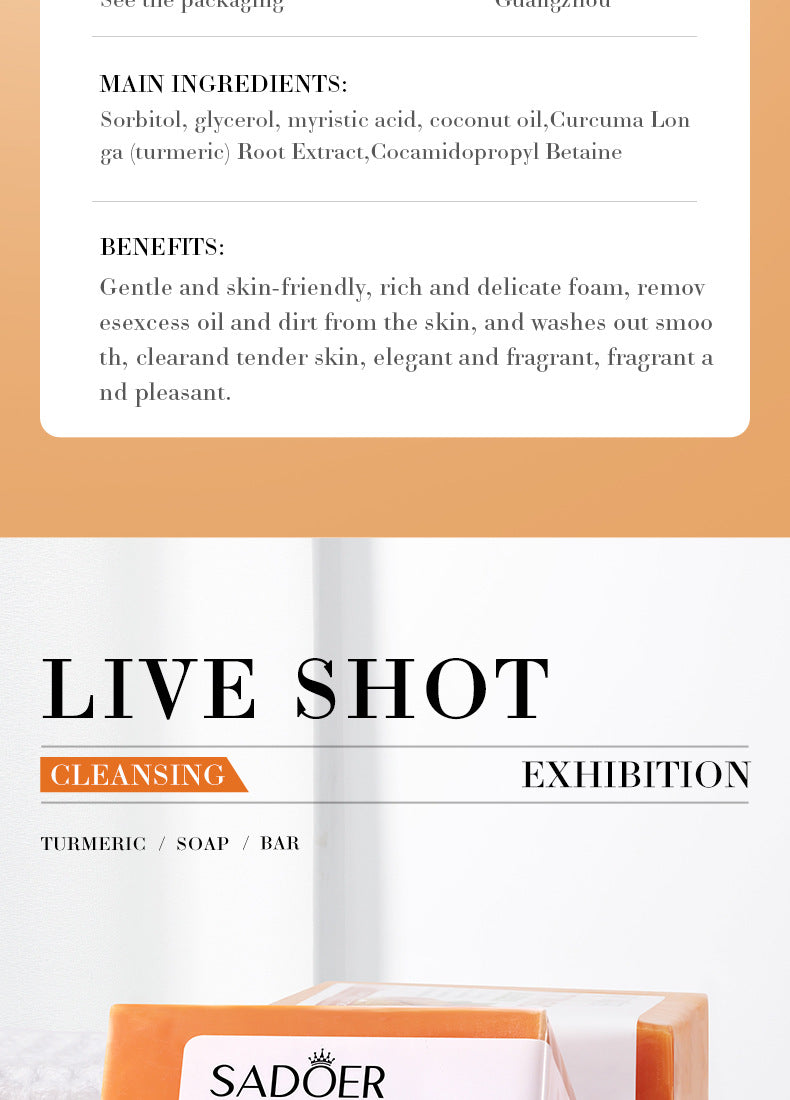 NO.SD72164 SADOER Turmeric Soap (Foreign Language Version) (New) 100g