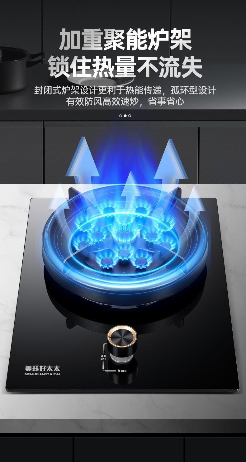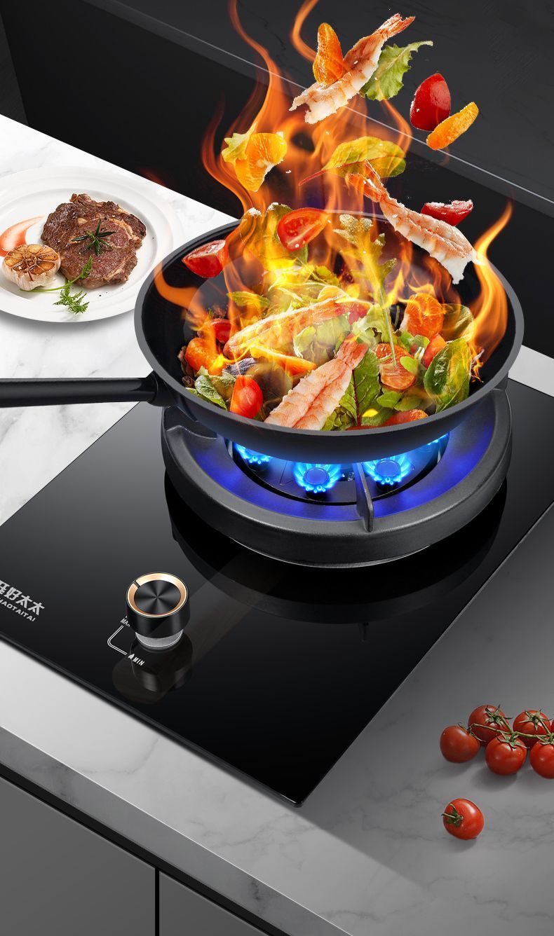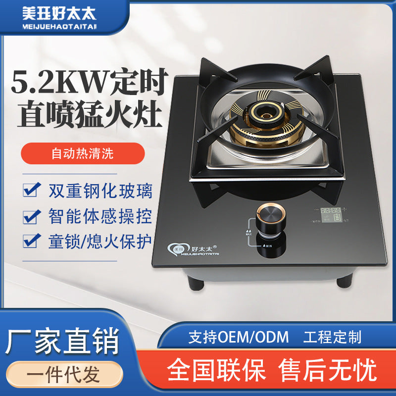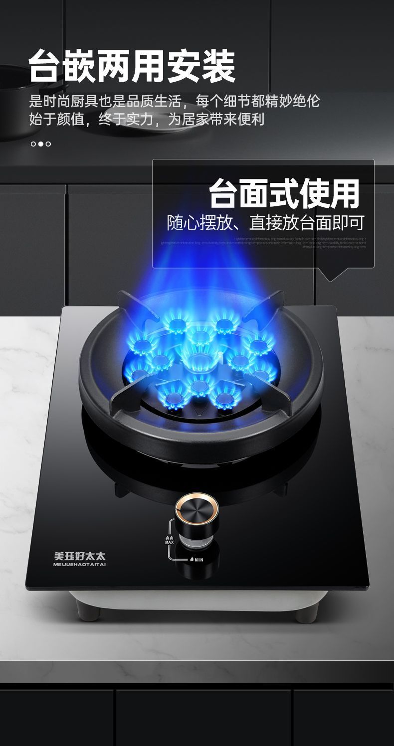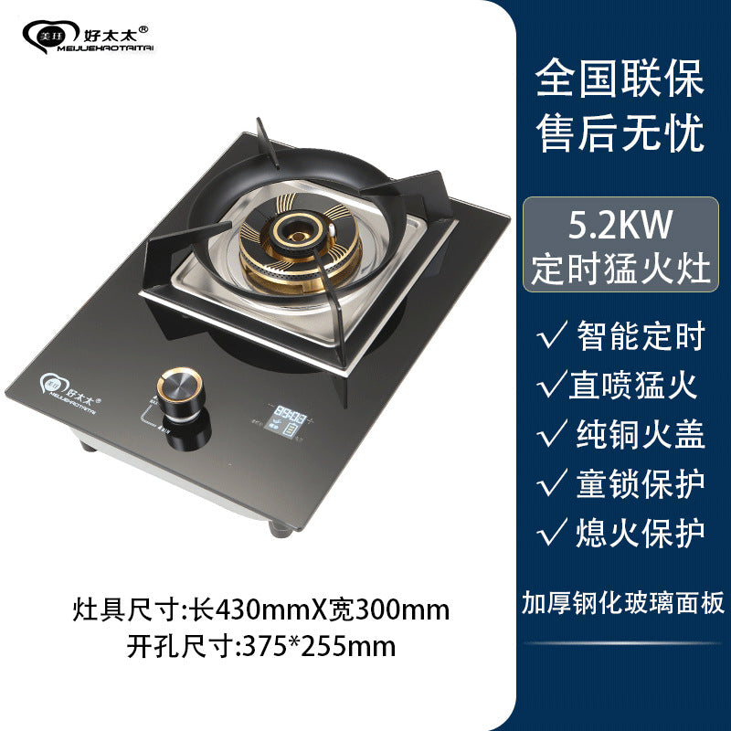 Gas Stove Single Burner Household High Heat Energy-Saving Stove Built-in Countertop Dual-Use Timer Gas Stove Tempered Glass
