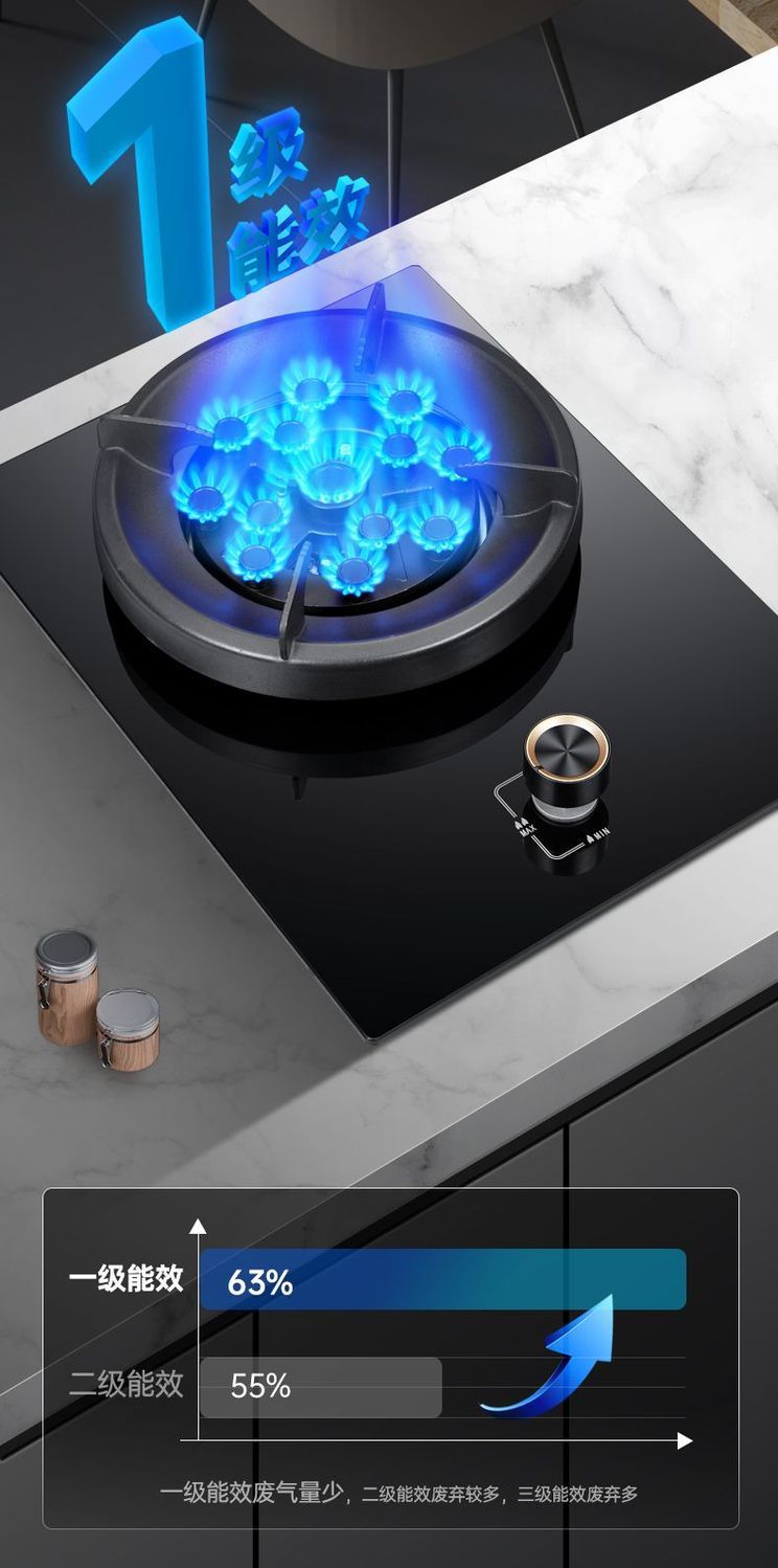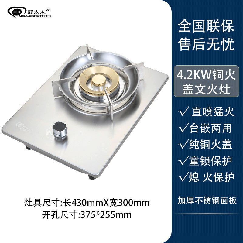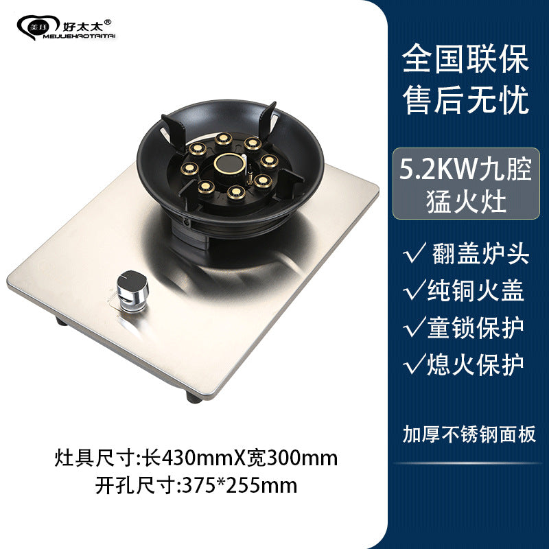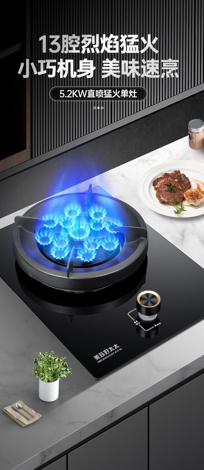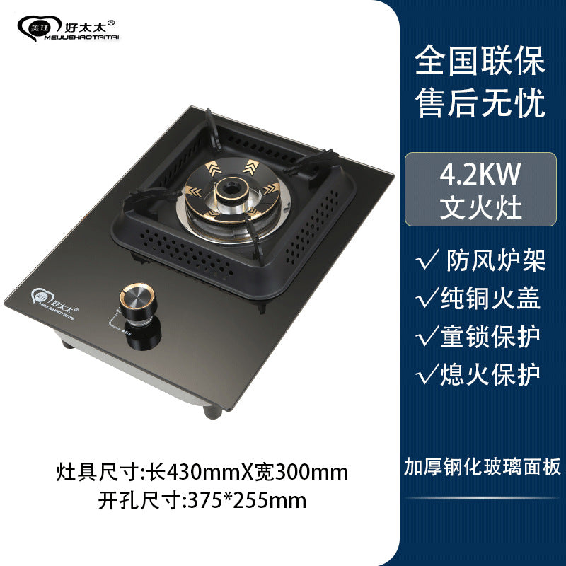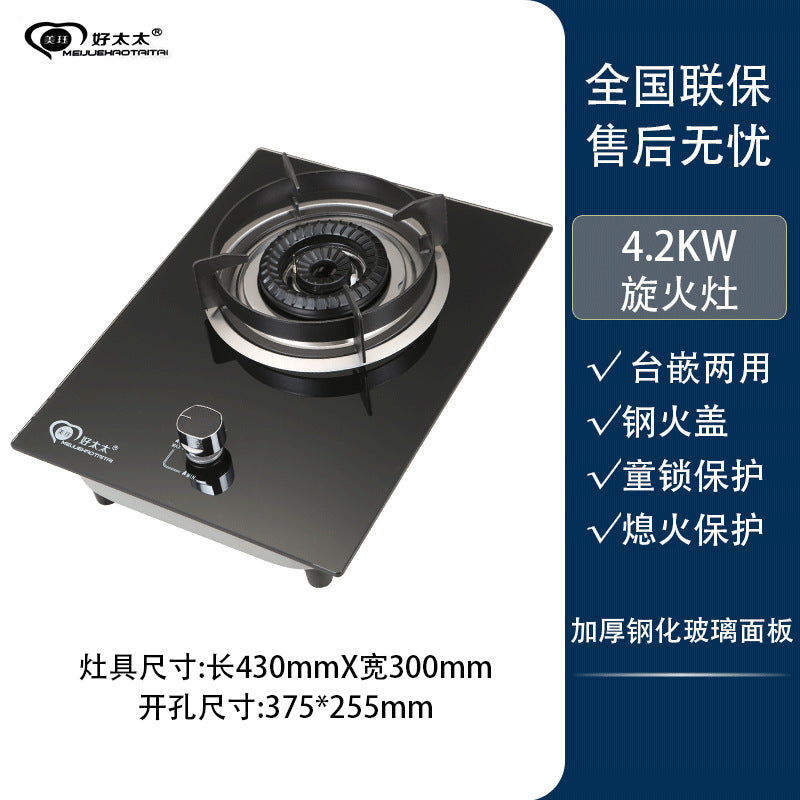 Gas Stove Single Burner Household High Heat Energy-Saving Stove Built-in Countertop Dual-Use Timer Gas Stove Tempered Glass