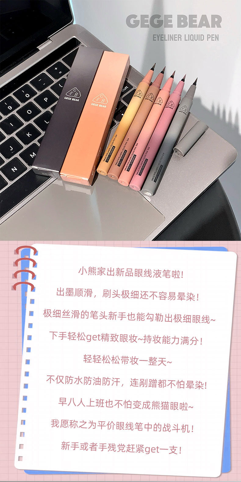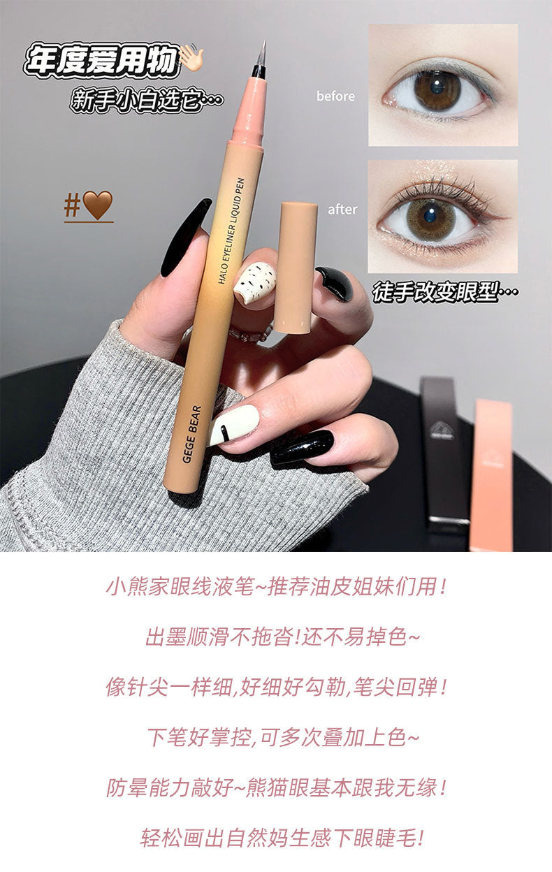 Gege Bear Halo Liquid Eyeliner Pen Colorful Eye Contouring Long-lasting Smooth Ultra-fine Cross-border Makeup
