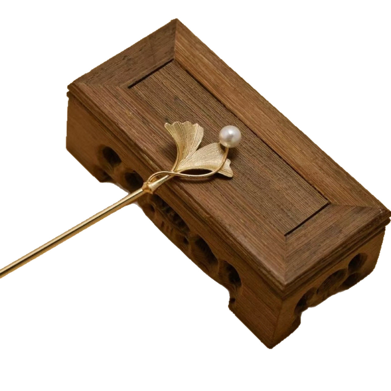 Ginkgo Leaf Hairpin Vietnam Gold-Plated Vintage Hairpin Hanfu Cheongsam Ancient Style Hair Accessories Wholesale