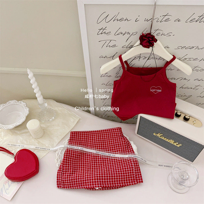 Girls retro Cotton and Linen Vest Set Summer Clothes2025New Korean Style Children's Sleeveless Doll Shirt Wide Leg Pants for Kids