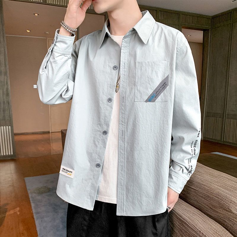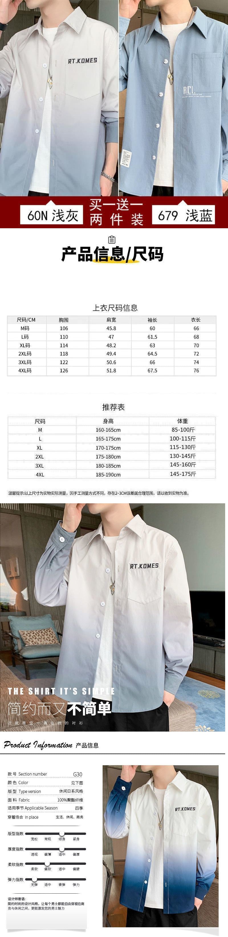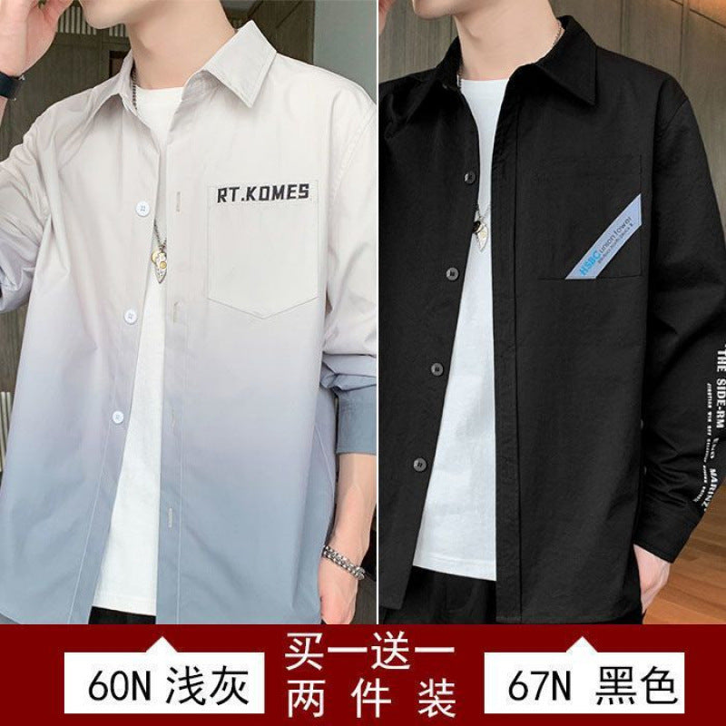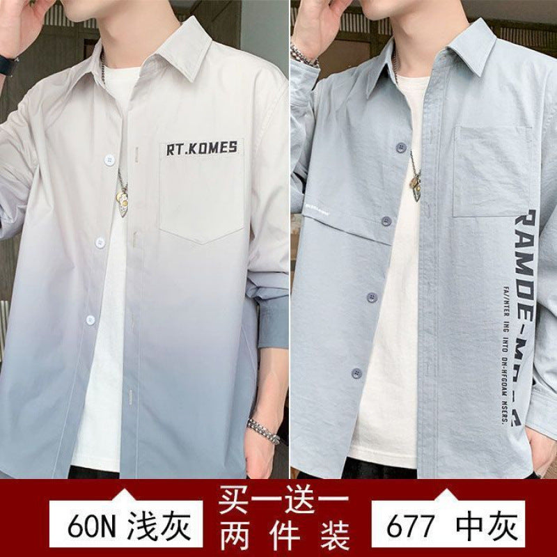 Gradient Long Sleeve Shirt for Men, Spring and Summer Loose Thin Jacket, Korean Style Trendy Casual ins Fashion Brand Sunscreen Shirt