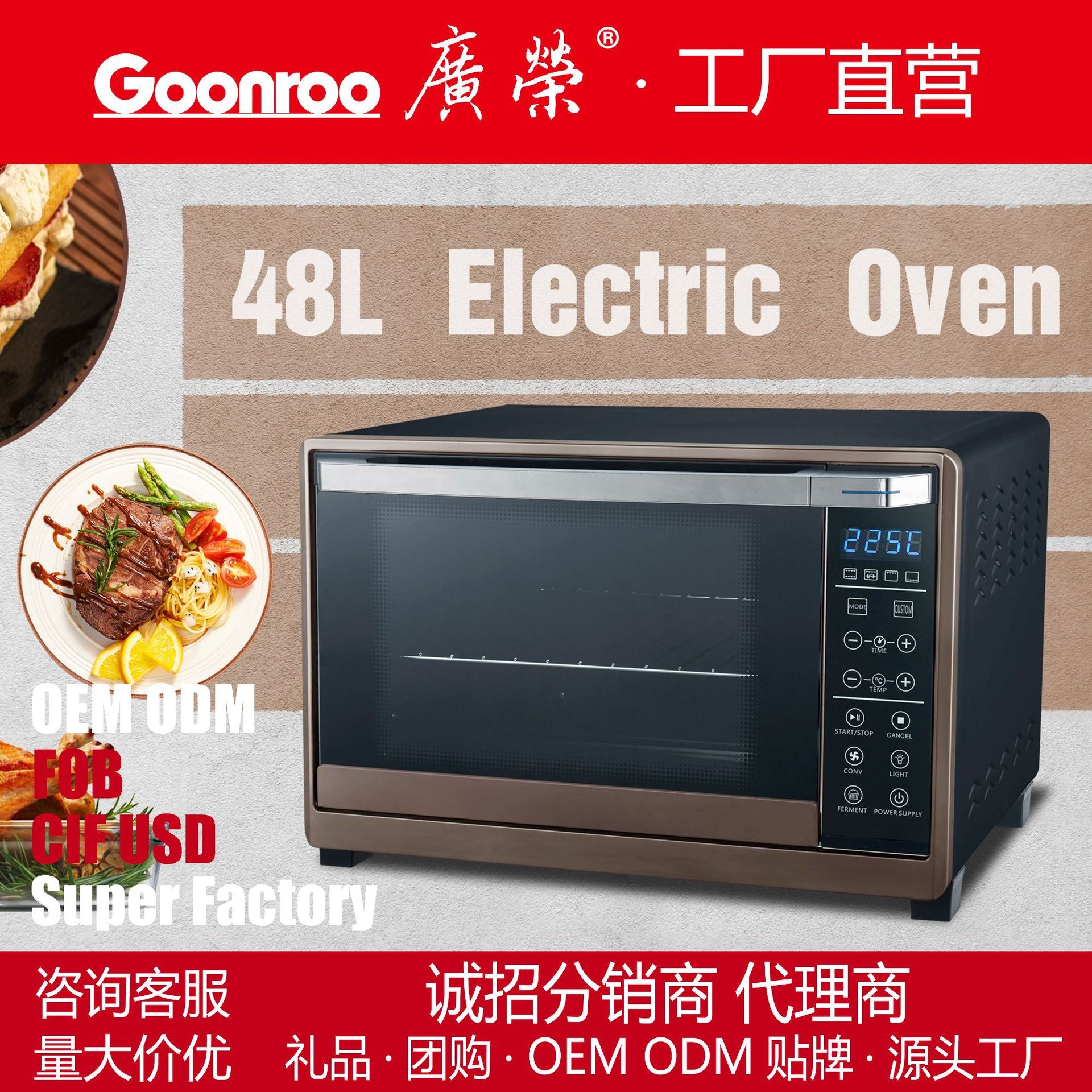 Guangrong48L Electronic Oven Household Intelligent Large Capacity Electric Oven Foreign Trade Cross-Border Gift Wholesale