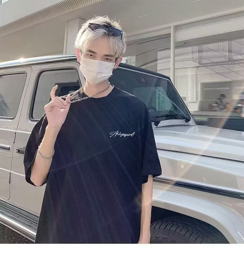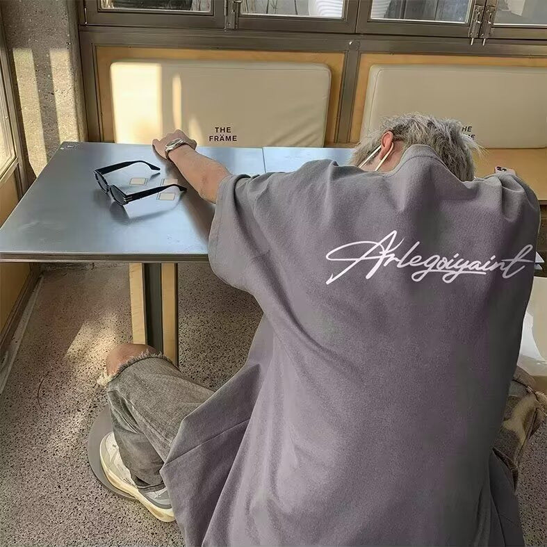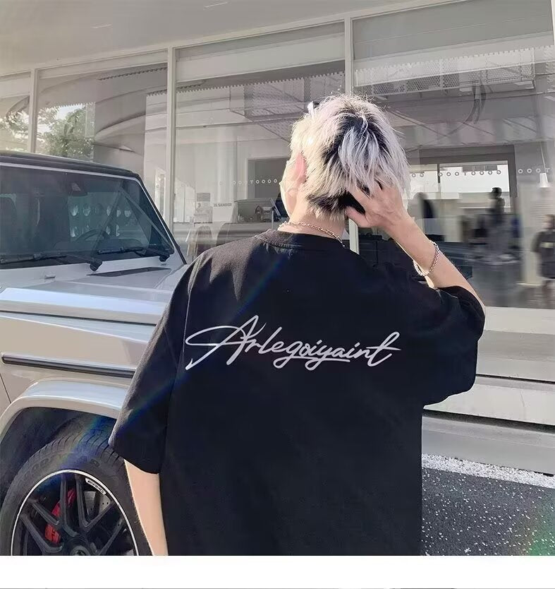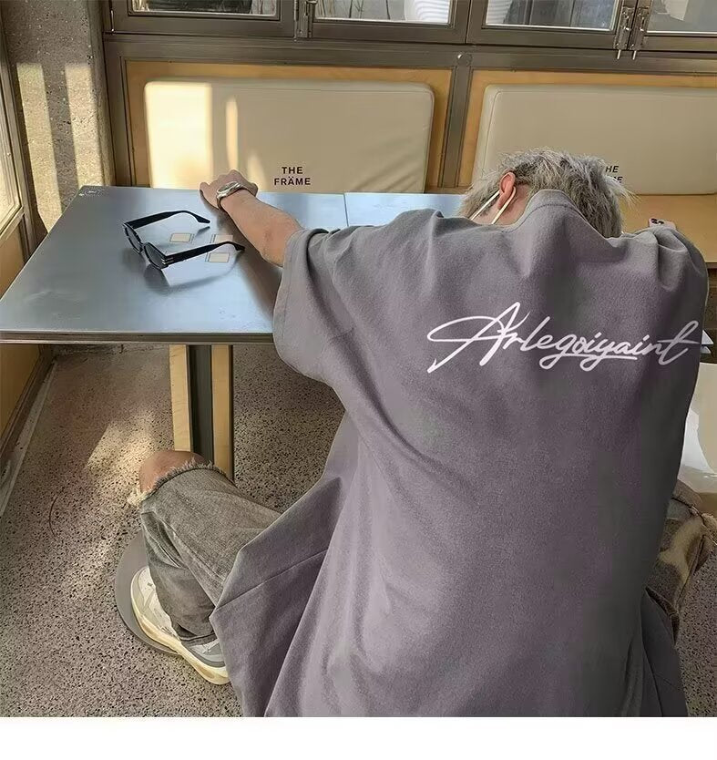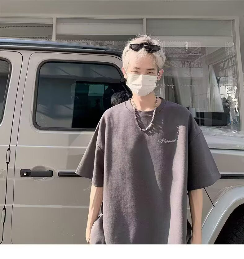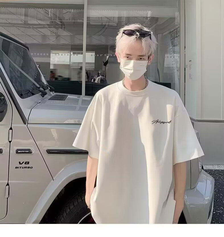 Heavyweight American High Street Letter Print Summer t T-shirt2025Trendy Versatile Men's Casual Cotton Loose Short Sleeve Shirt