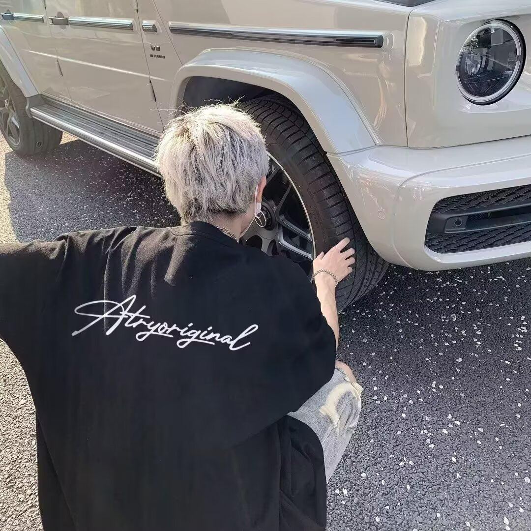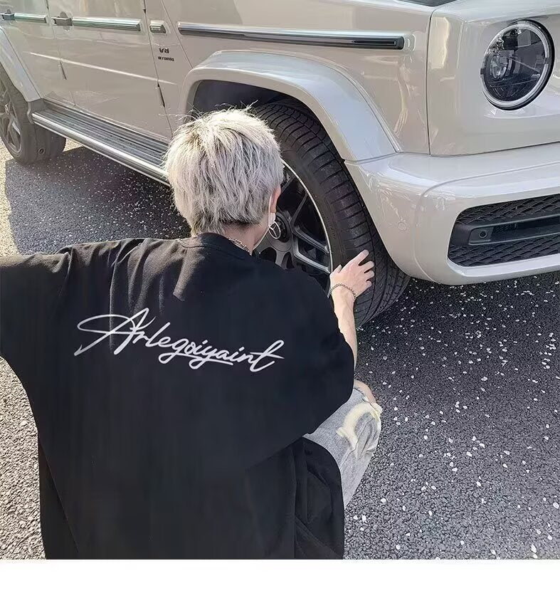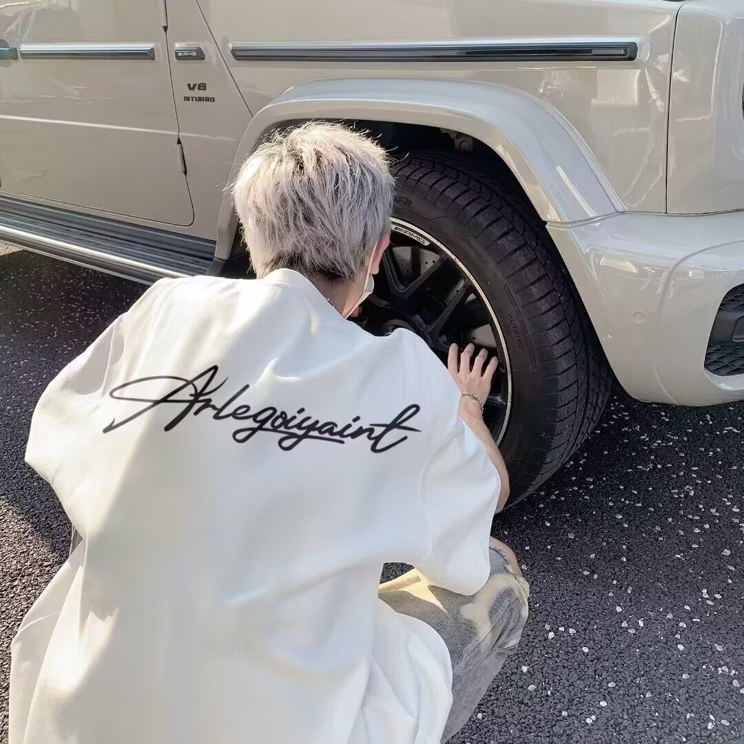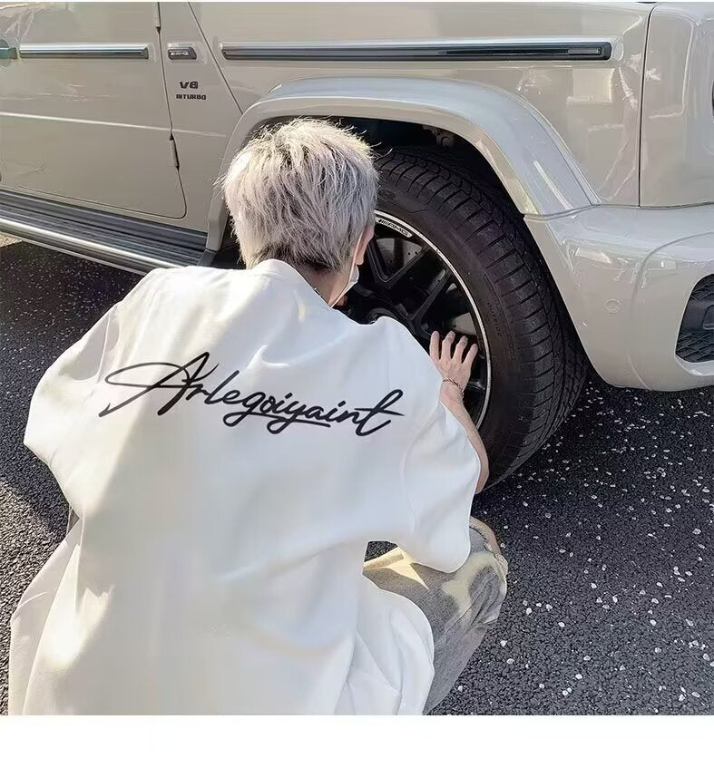 Heavyweight American High Street Letter Print Summer t T-shirt2025Trendy Versatile Men's Casual Cotton Loose Short Sleeve Shirt