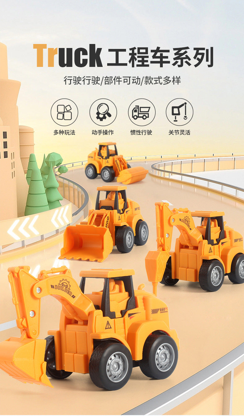 Hot-Selling Children's Push and Slide Construction Vehicles Excavator Bulldozer Fun Simulation Toy Vehicles Factory Direct Sale
