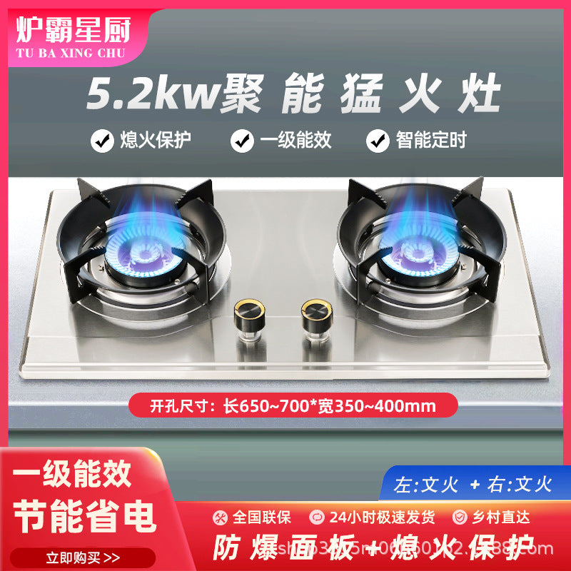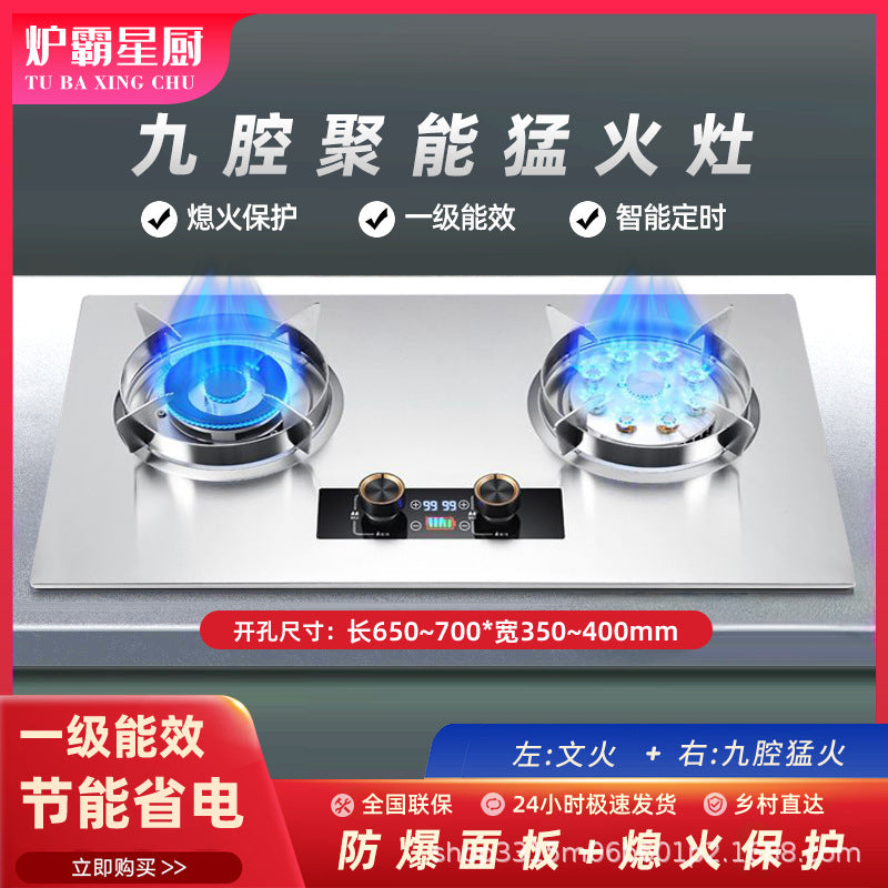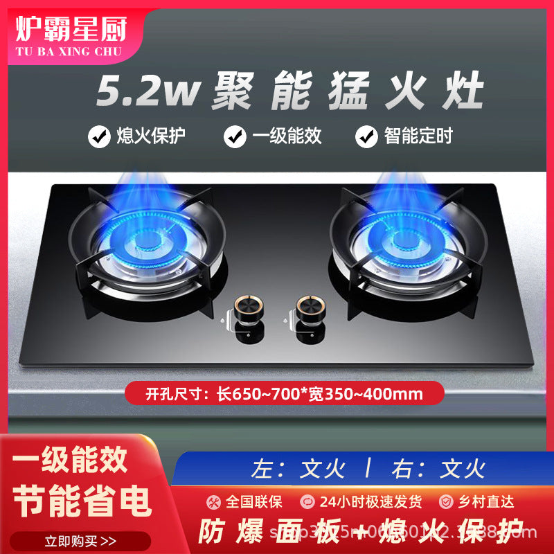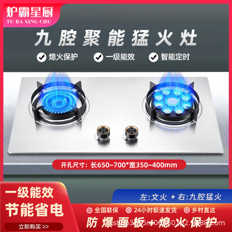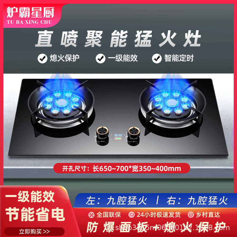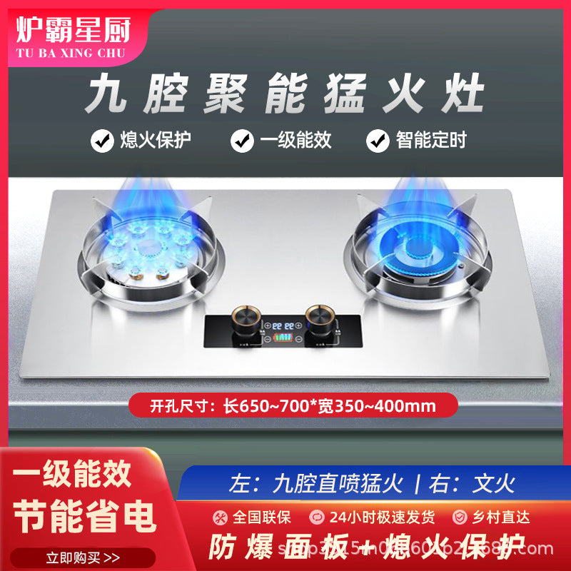 Household Gas Stove Natural Gas Liquefied Gas Stove Stainless Steel Glass Panel High Flame Double Burner Gas Stove Wholesale