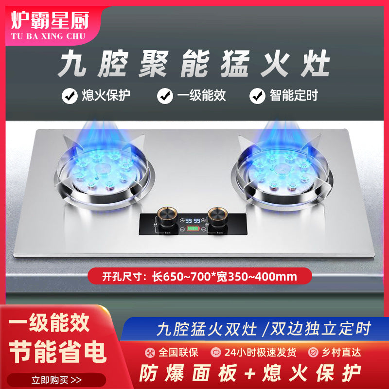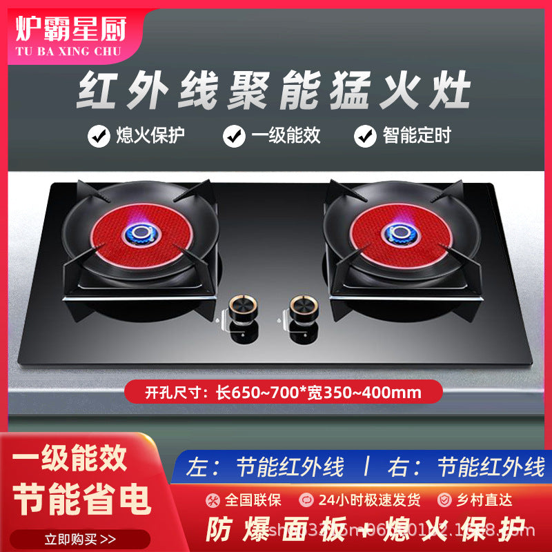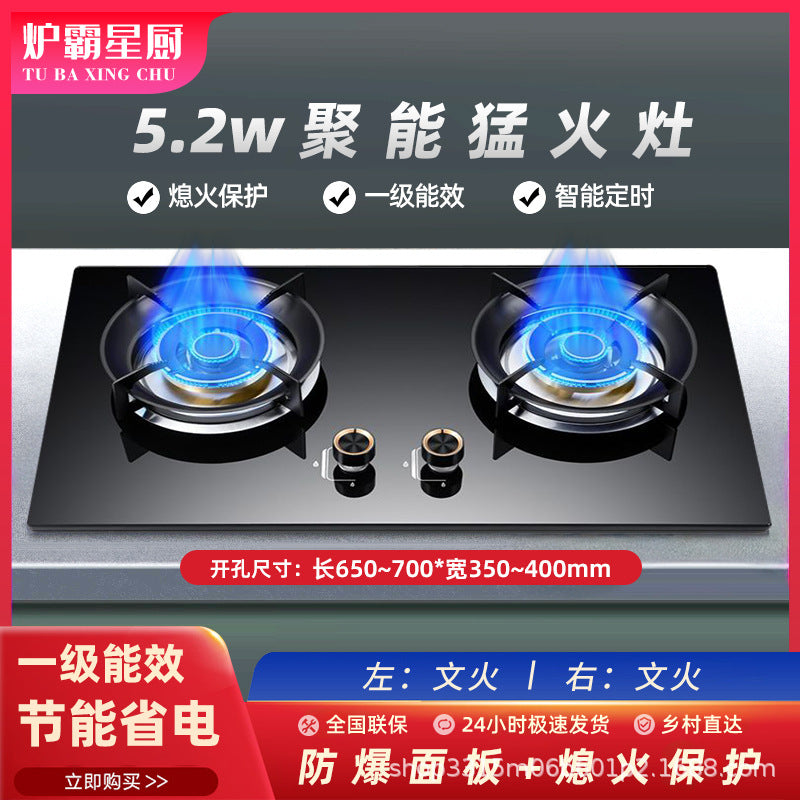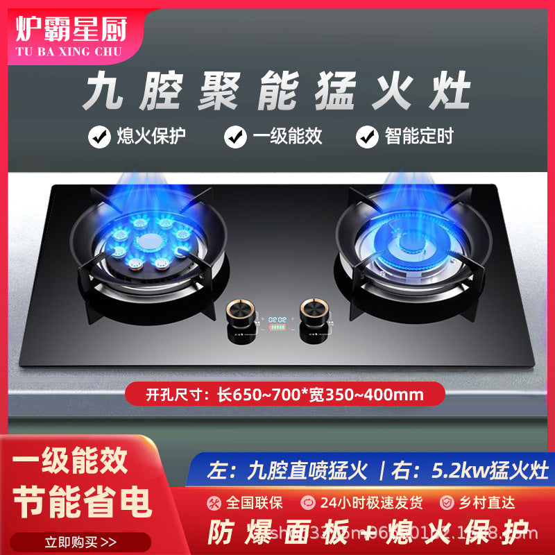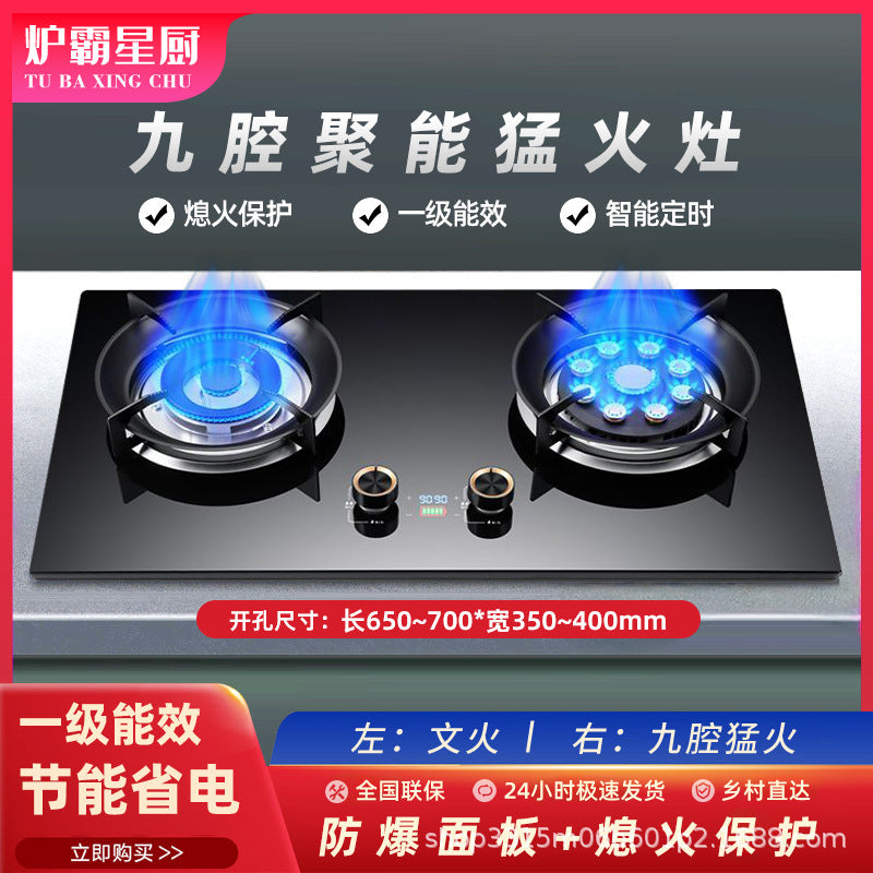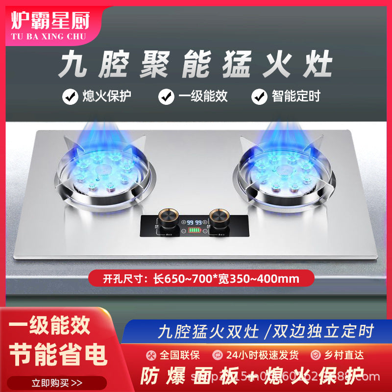 Household Gas Stove Natural Gas Liquefied Gas Stove Stainless Steel Glass Panel High Flame Double Burner Gas Stove Wholesale