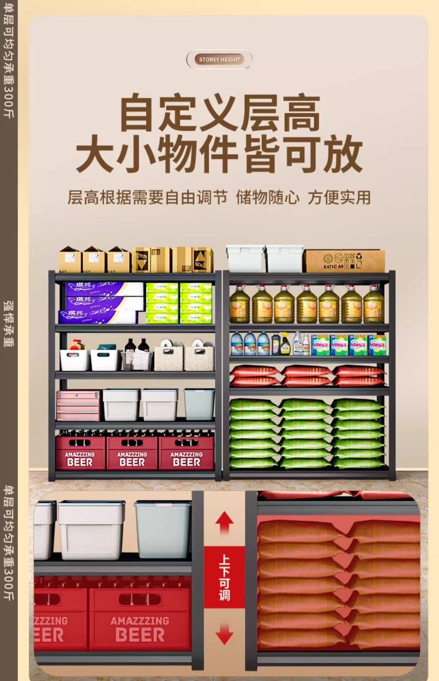 Household Storage Rack Steel Shelves Balcony Multi-Layer Storage Rack Storage Room Kitchen Storage Rack Express Sundries Rack