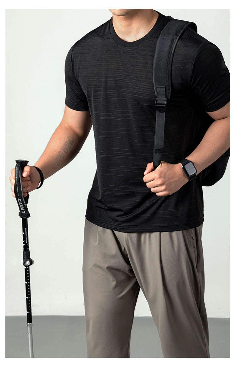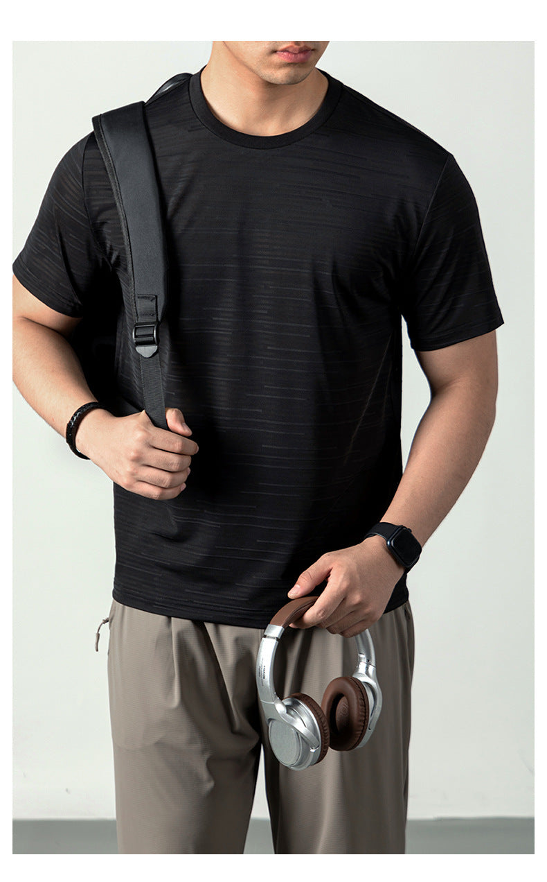 Ice Silk Cool Breathable Men's Short Sleeve t T-shirt2025New summer solid color sports fitness quick-dry short sleeve