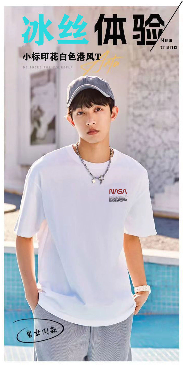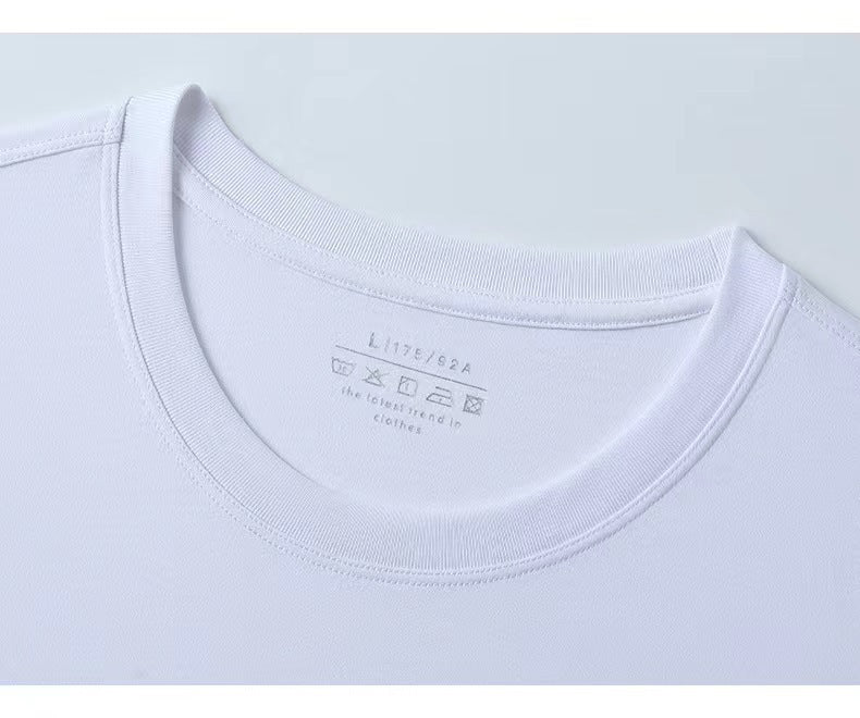 Ice Silk Cool Short Sleeve Men's Loose Student Black and White Half Sleeve T-Shirt Summer Trendy Round Neck T Shirt All-Match Bottoming Shirt