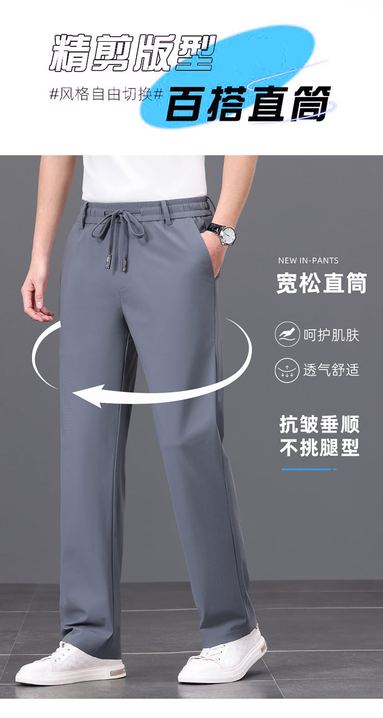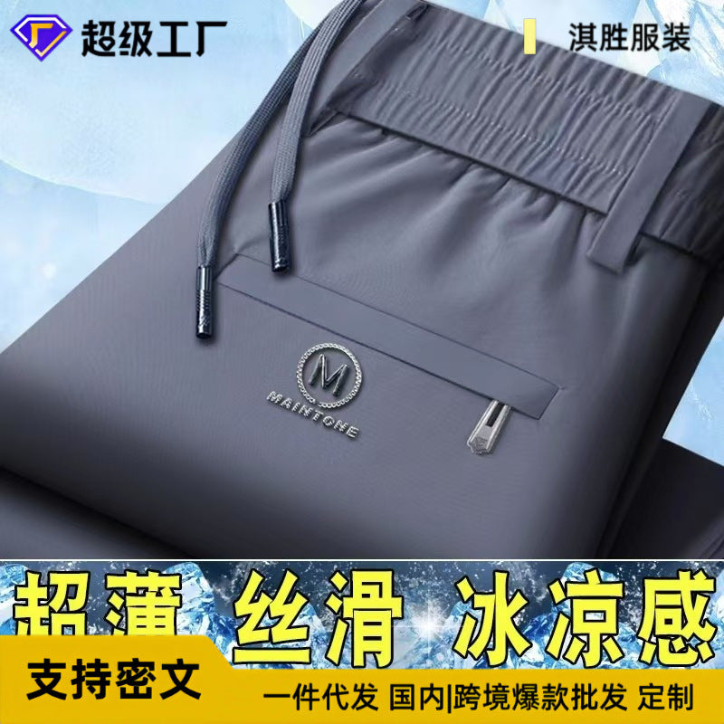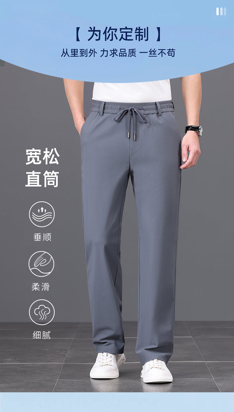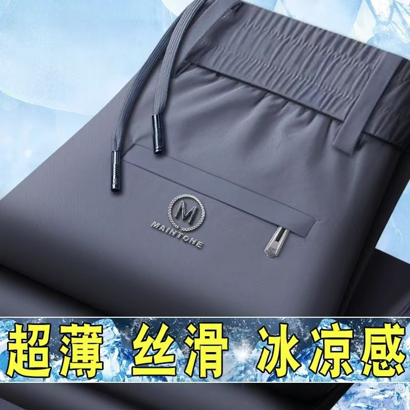 Ice Silk Men's Pants2025New Men's Casual Pants Summer Thin Loose Straight Sports Pants Quick-Dry Trousers