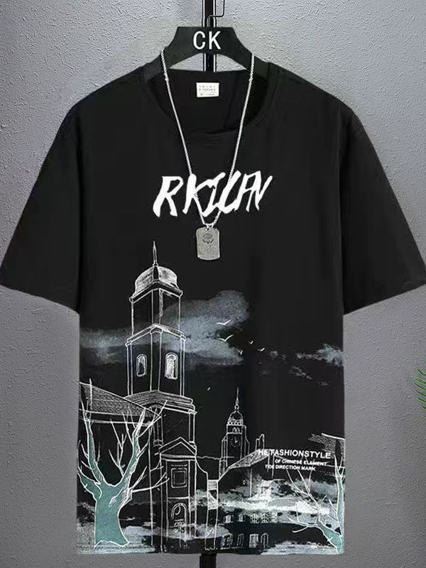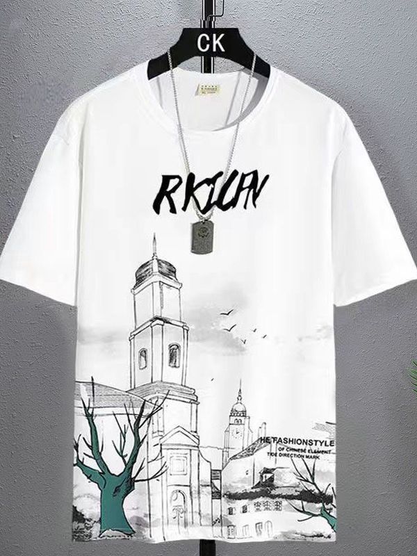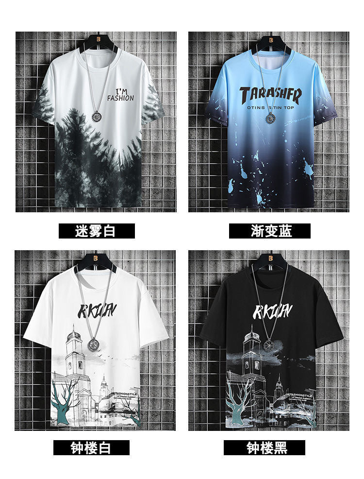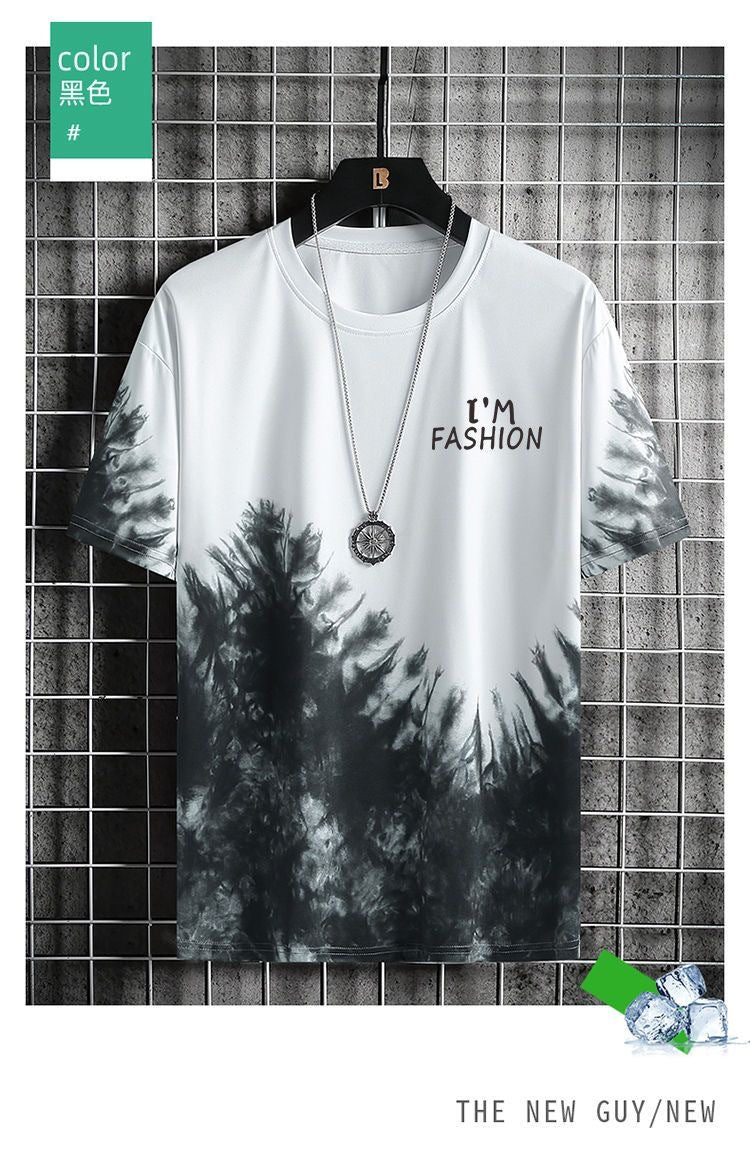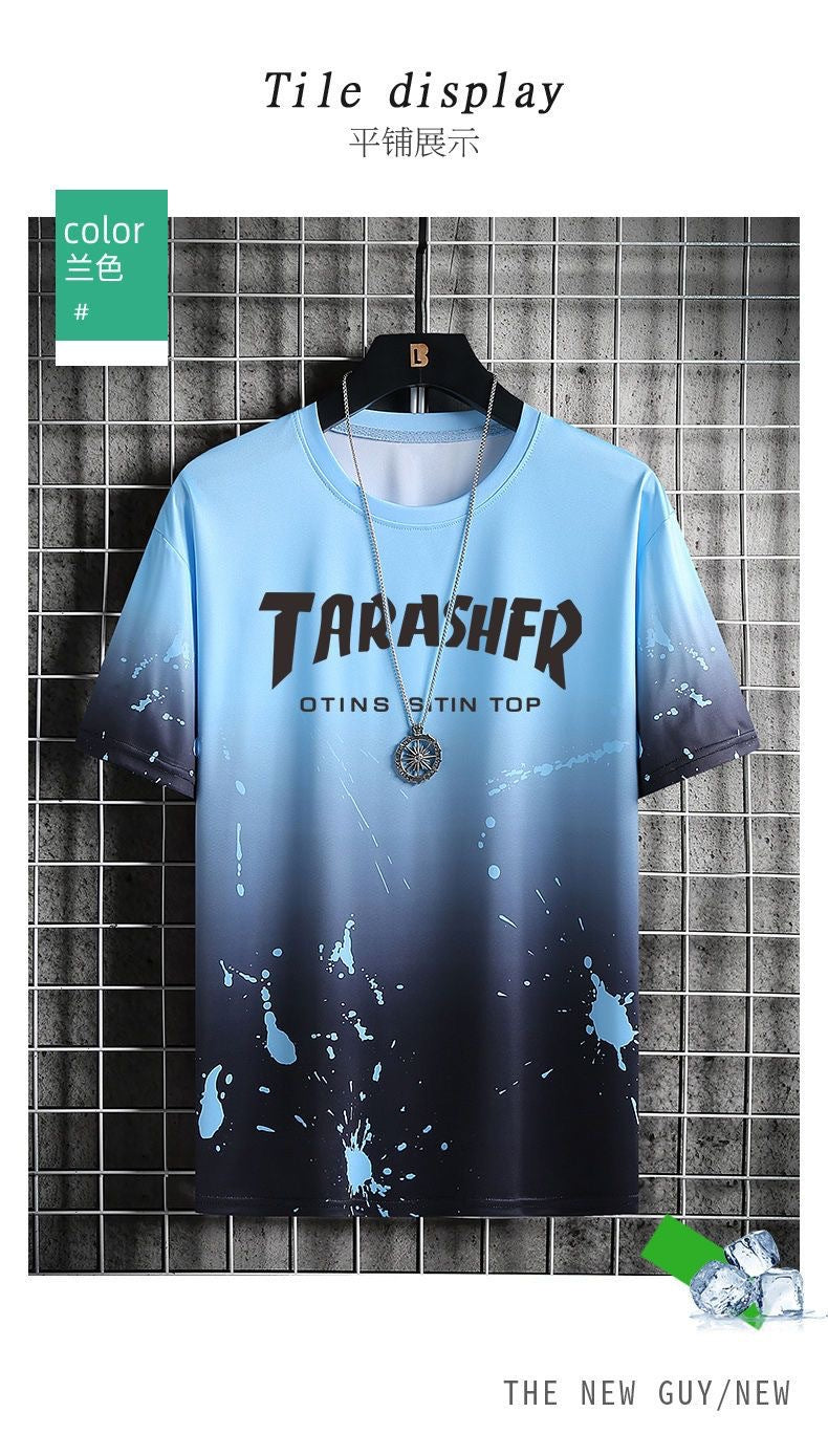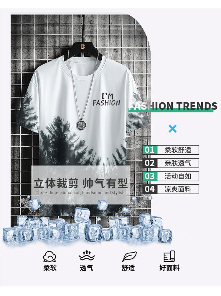 Ice silk short sleeve t Men's Summer T-shirt2025New Trendy Student Youth Half-Sleeve Men's Ice-Sense Ink-Splash T-Shirt