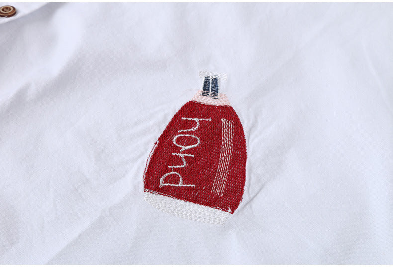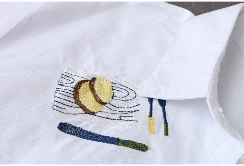 In Stock Japanese and Korean Style Spring Summer Two-Way Cotton Shirt for Women Loose Mid-Length Top Artistic Embroidery Short Sleeve Jacket