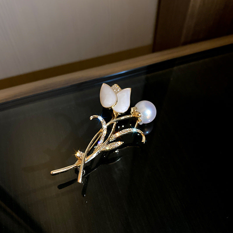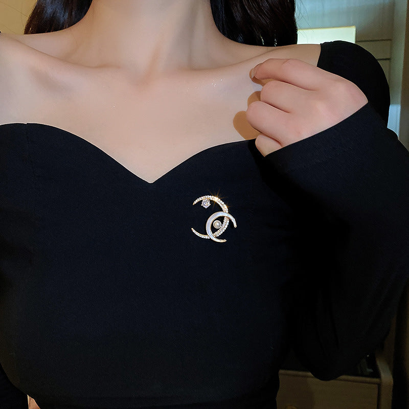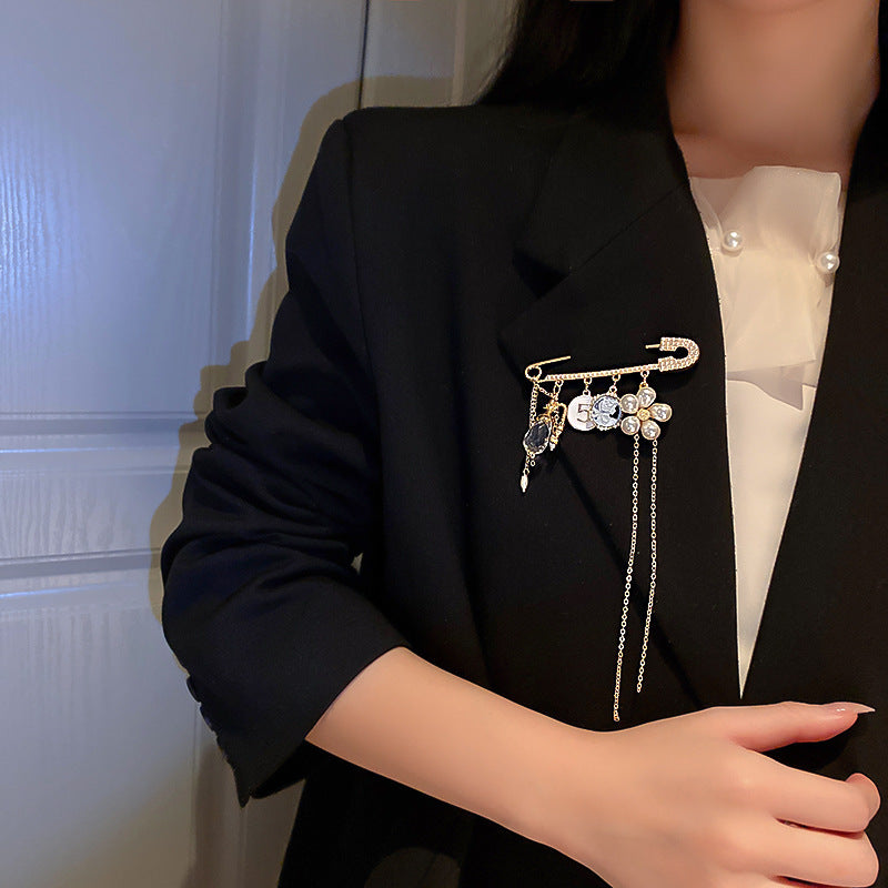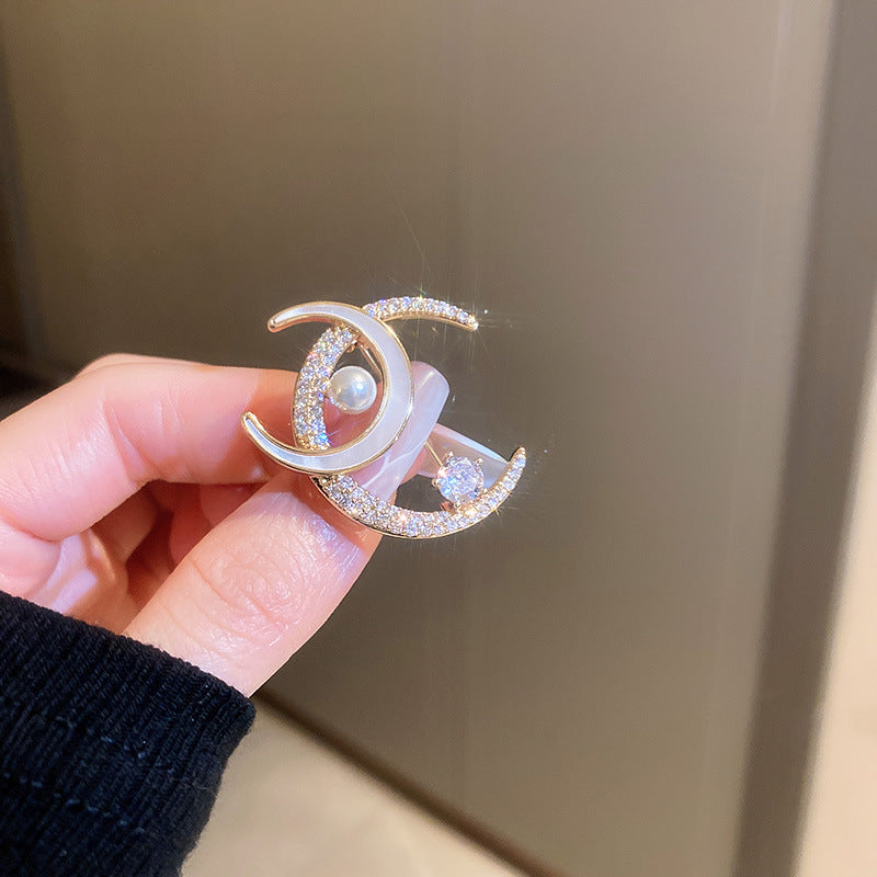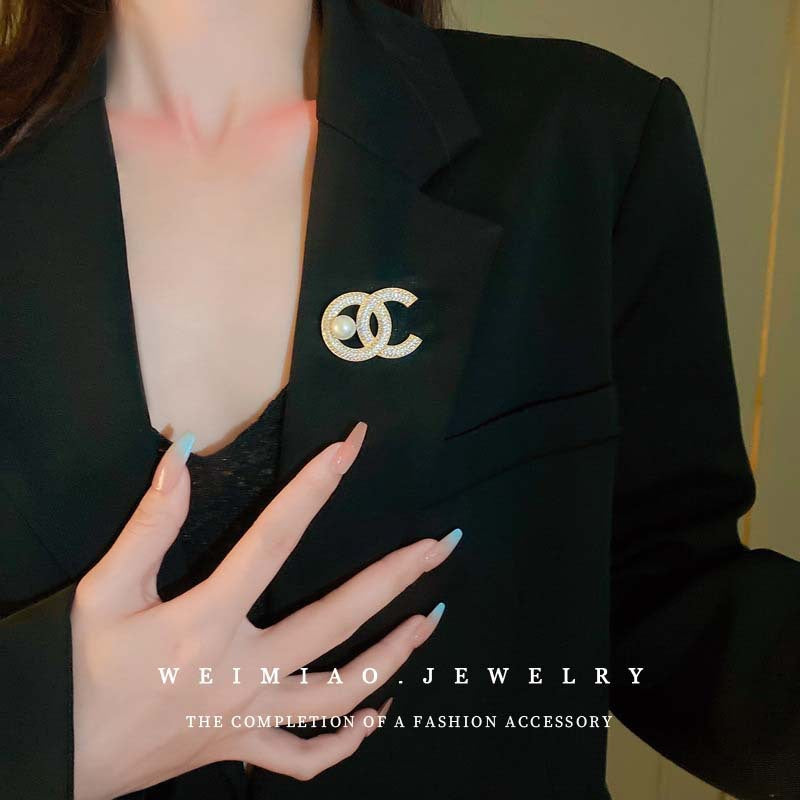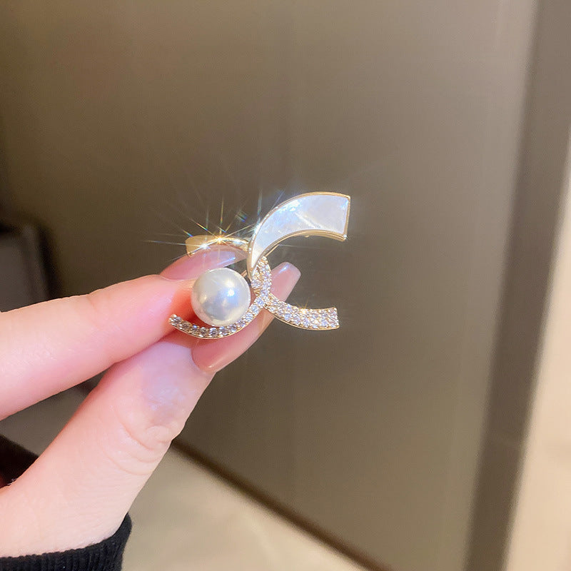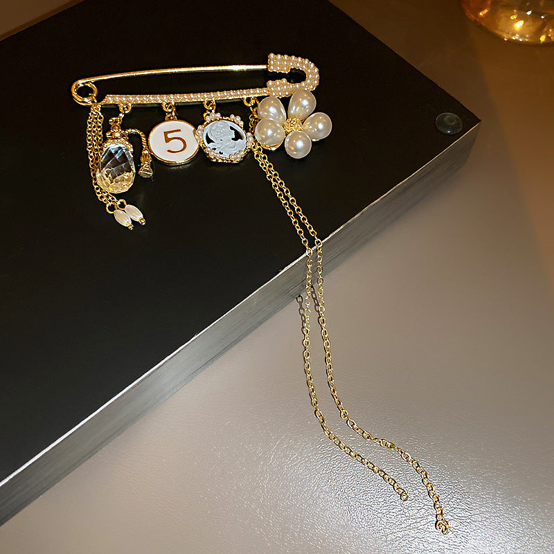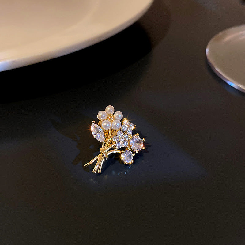 Inlaid Diamond Pearl Digital Flower Brooch French Light Luxury Elegant Pin Fashion Niche High-end Suit Accessory for Women