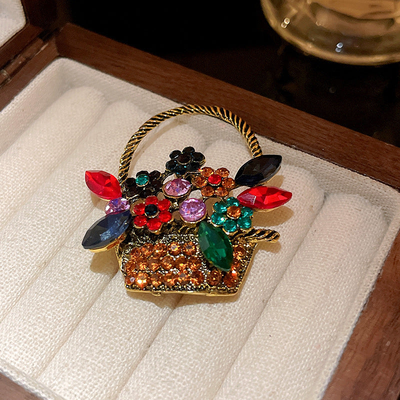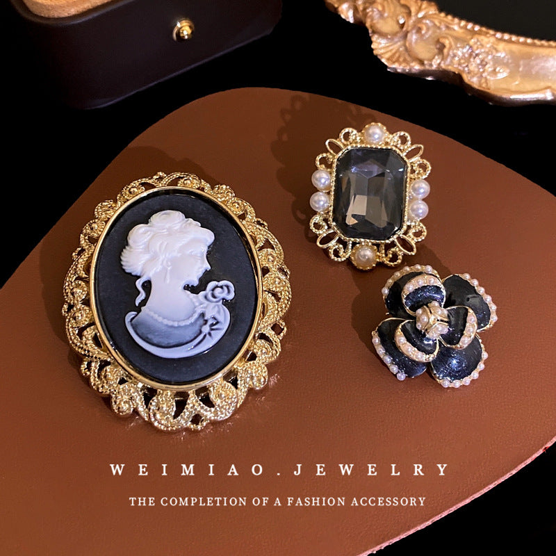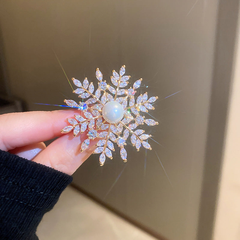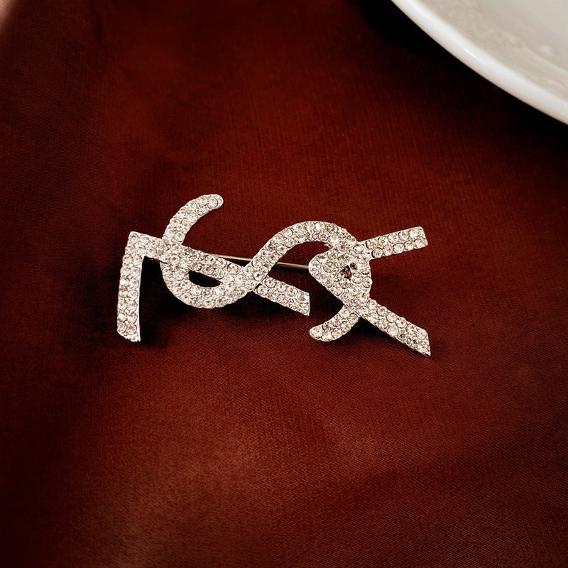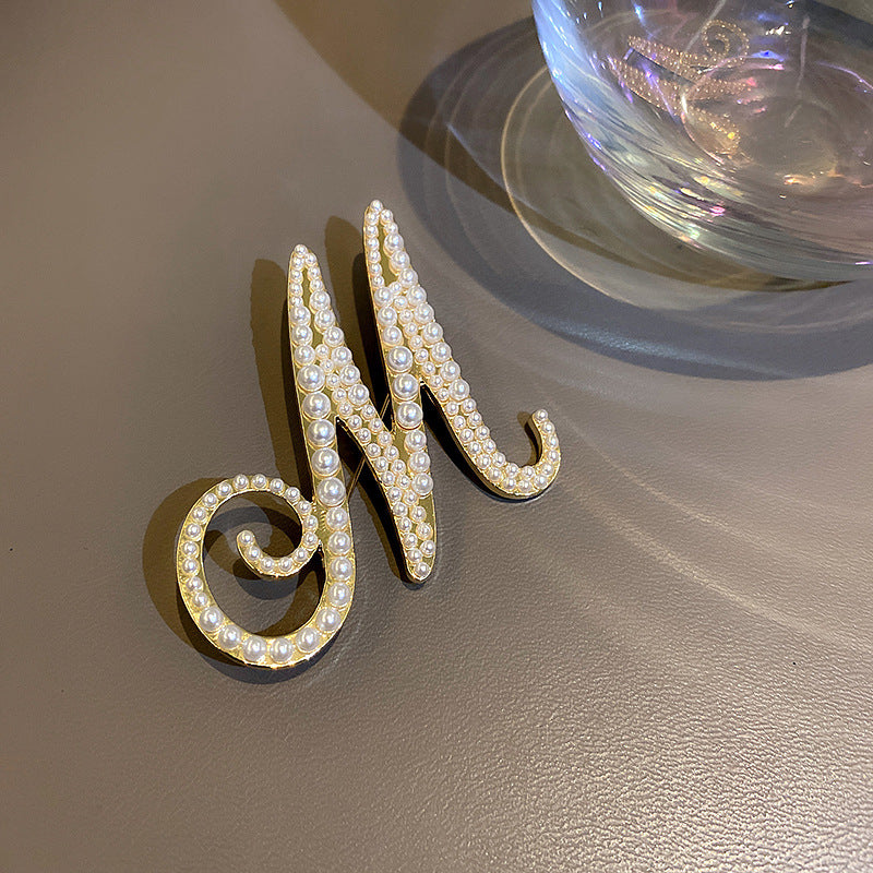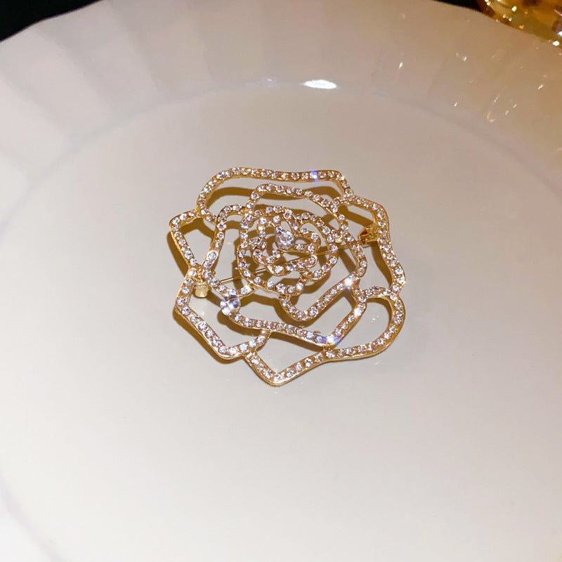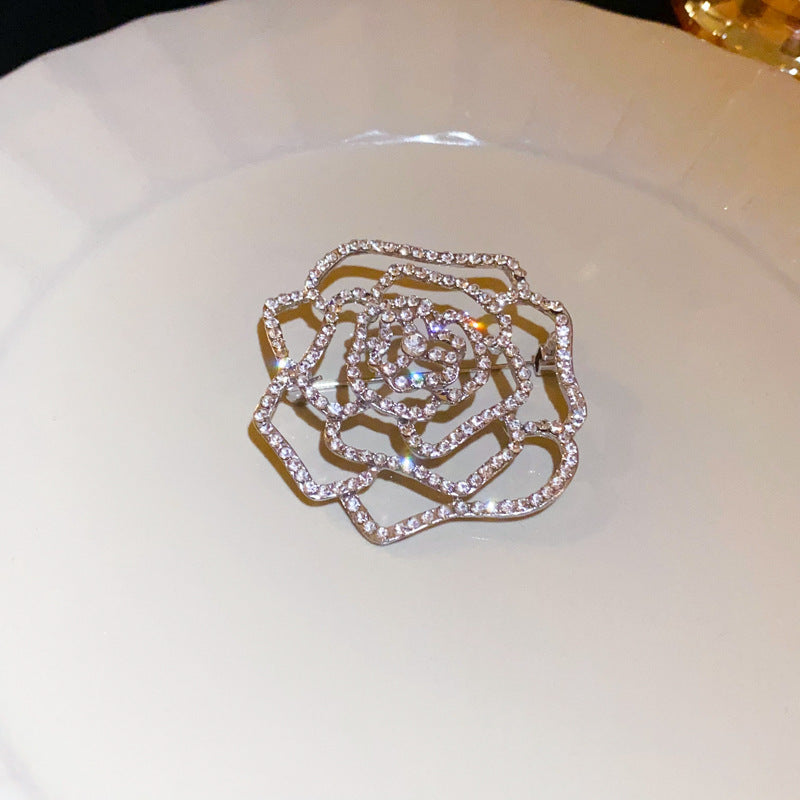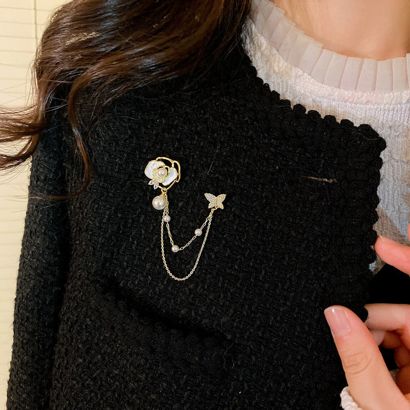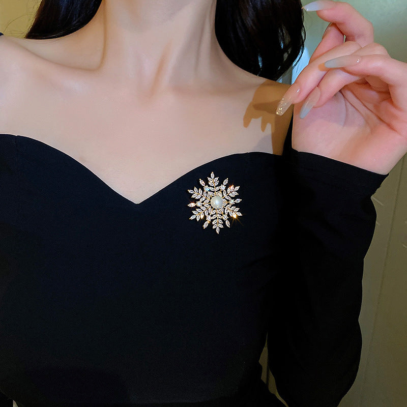 Inlaid Diamond Pearl Digital Flower Brooch French Light Luxury Elegant Pin Fashion Niche High-end Suit Accessory for Women