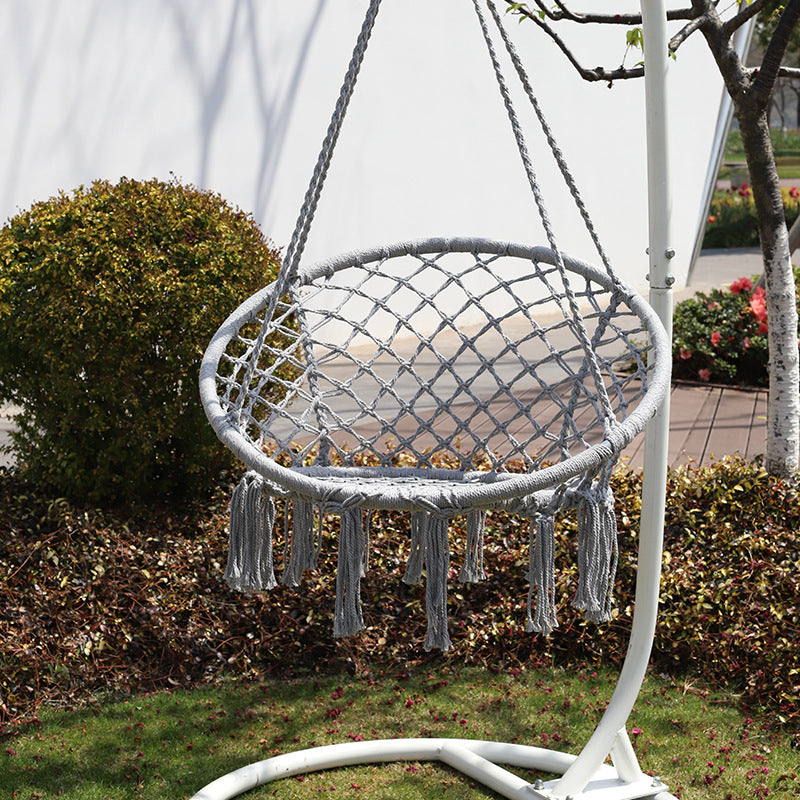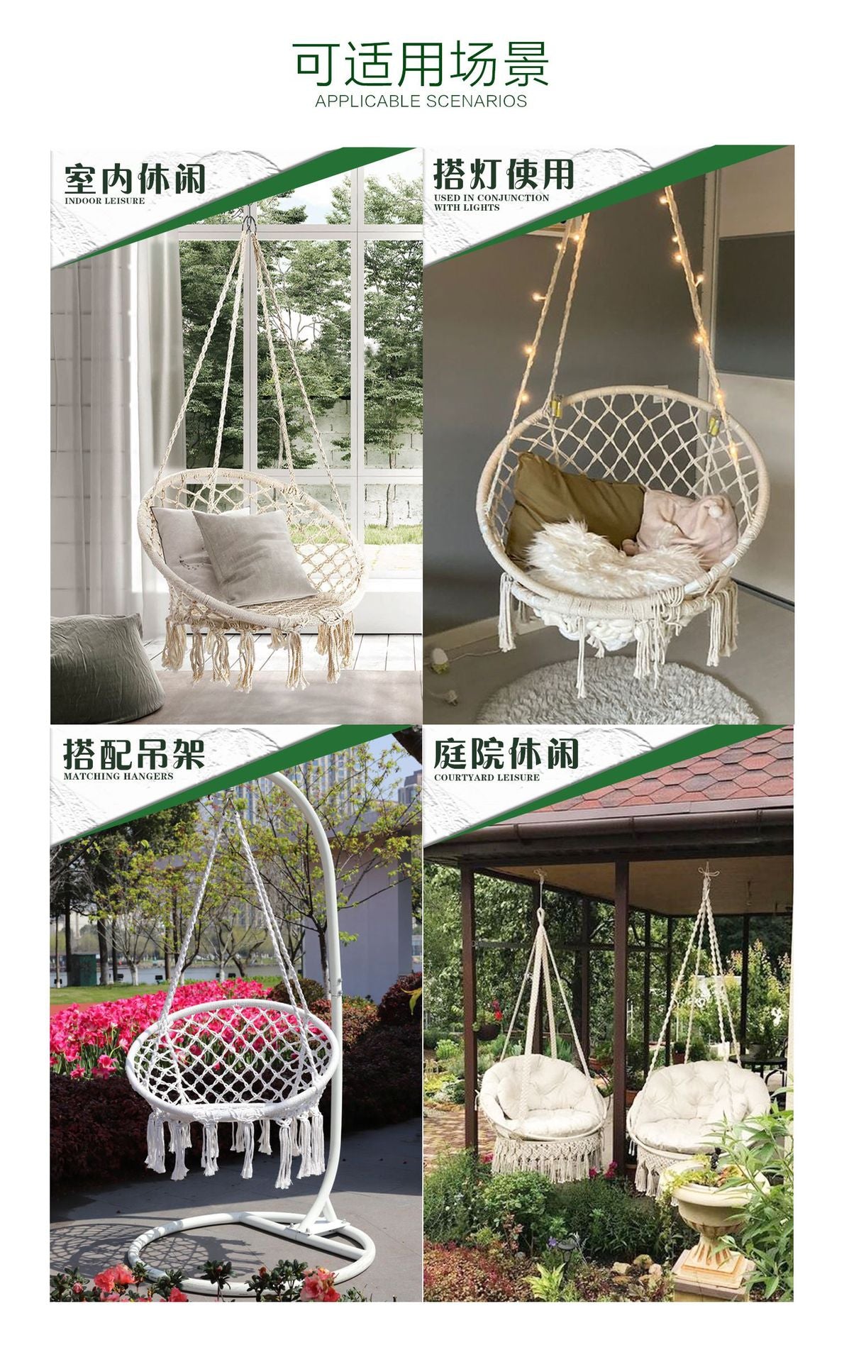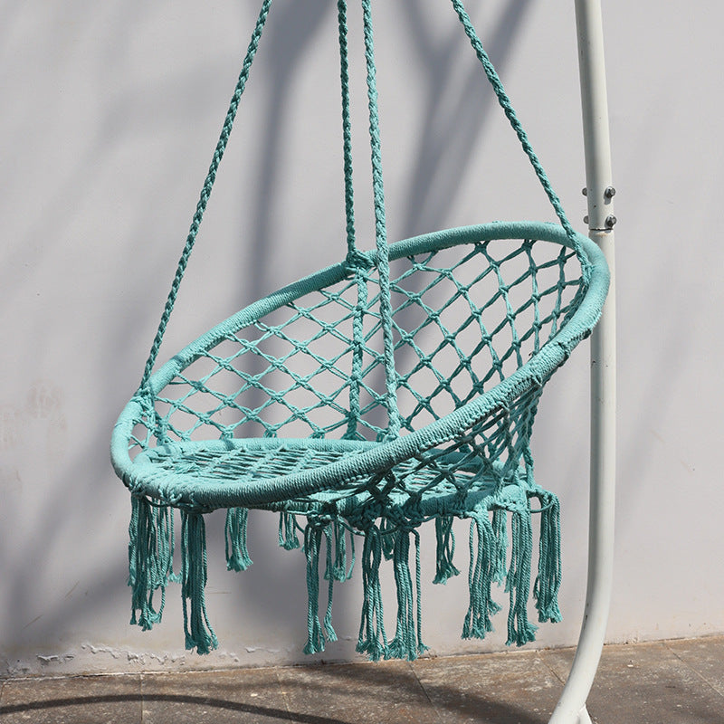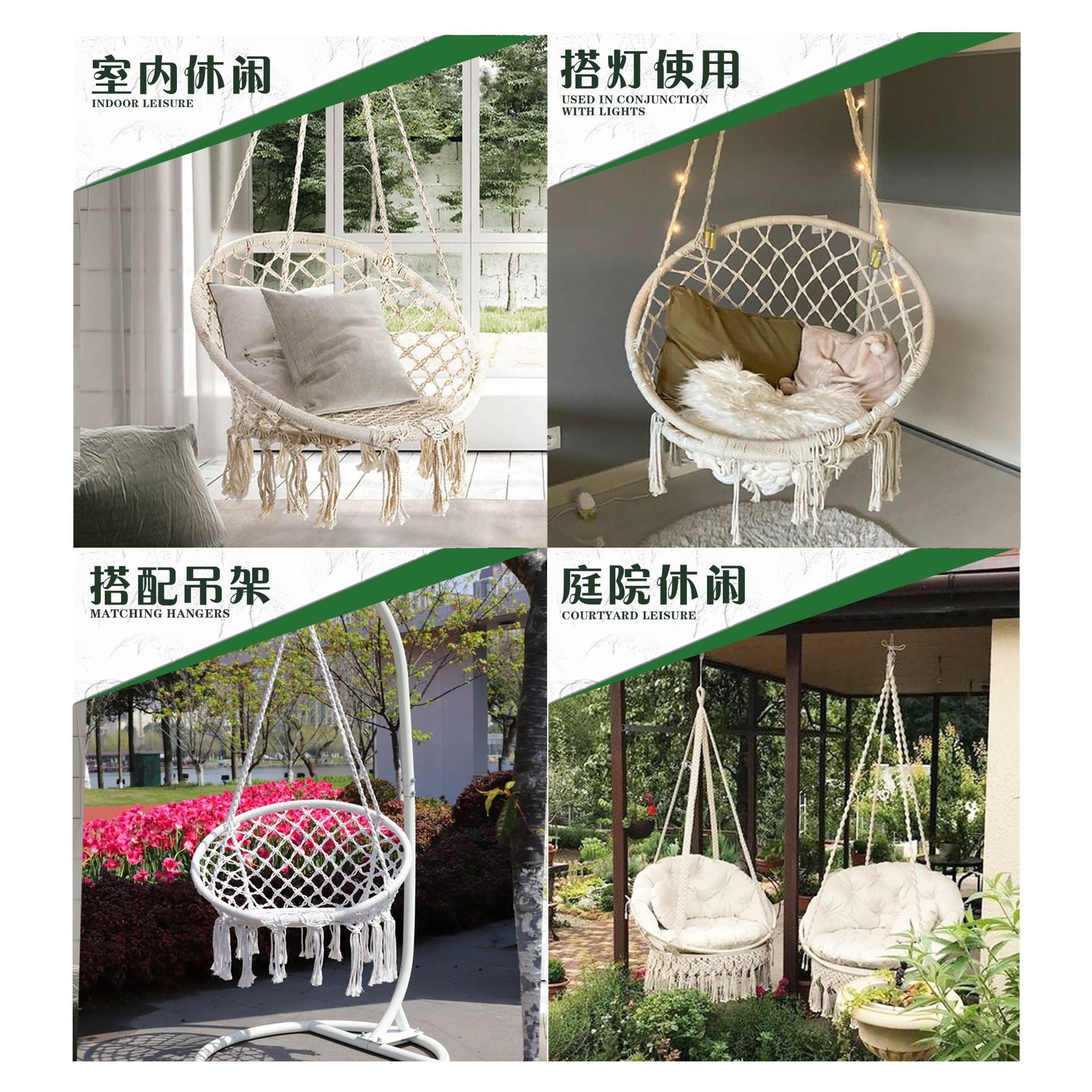 ins Nordic Style Tassel Hanging Chair Handwoven Hanging Basket Cotton Rope Swing Outdoor Hammock Balcony Cradle Chair Wholesale