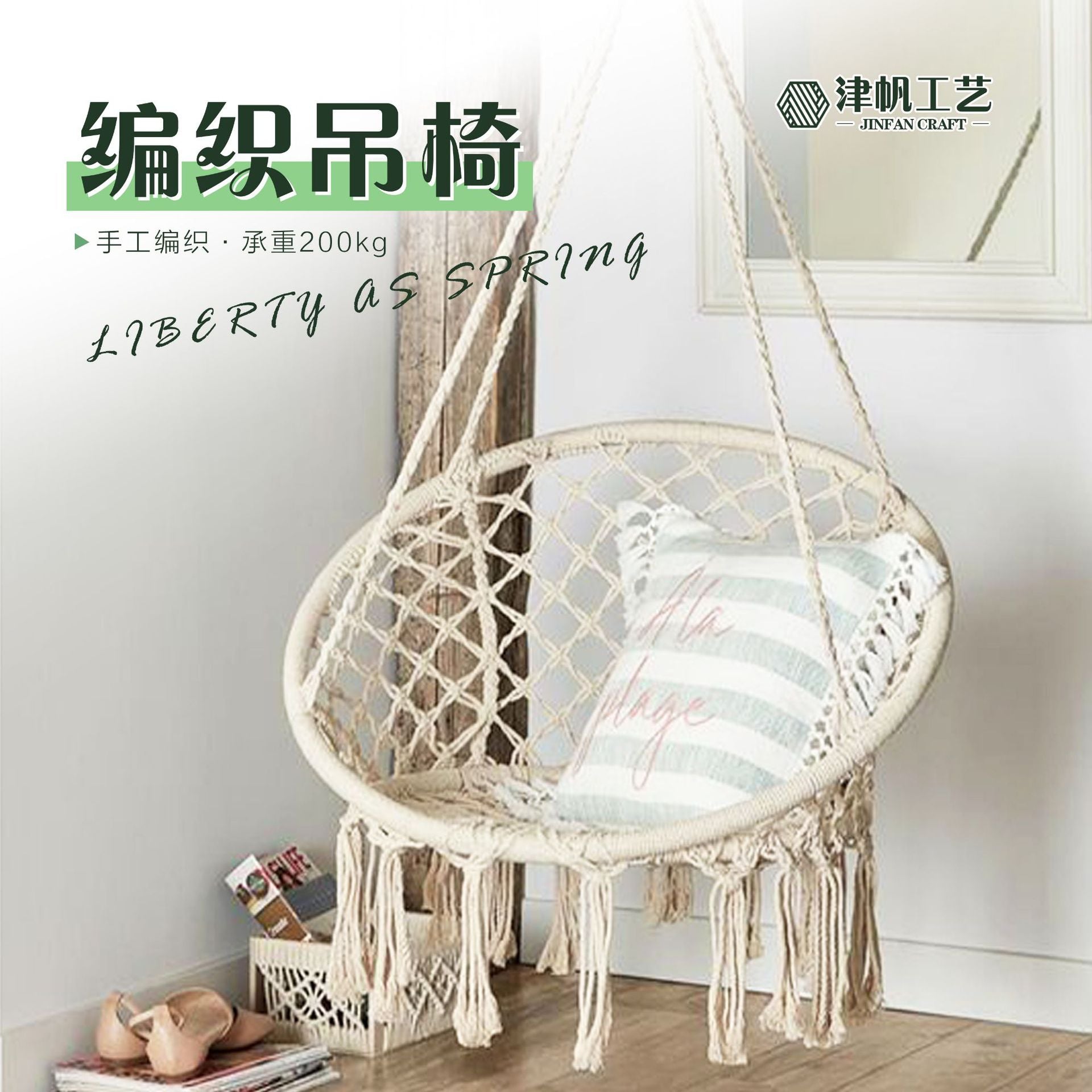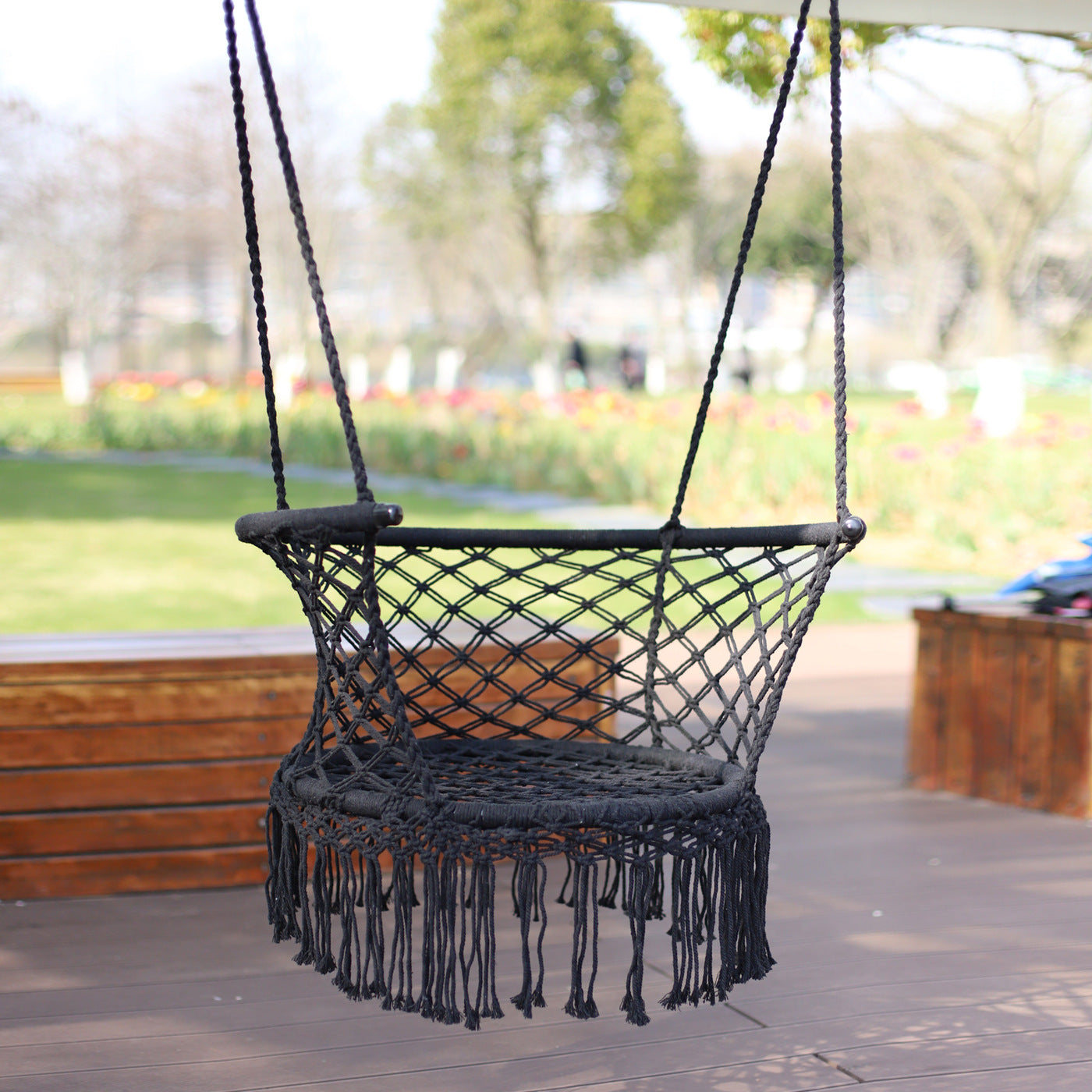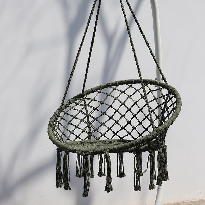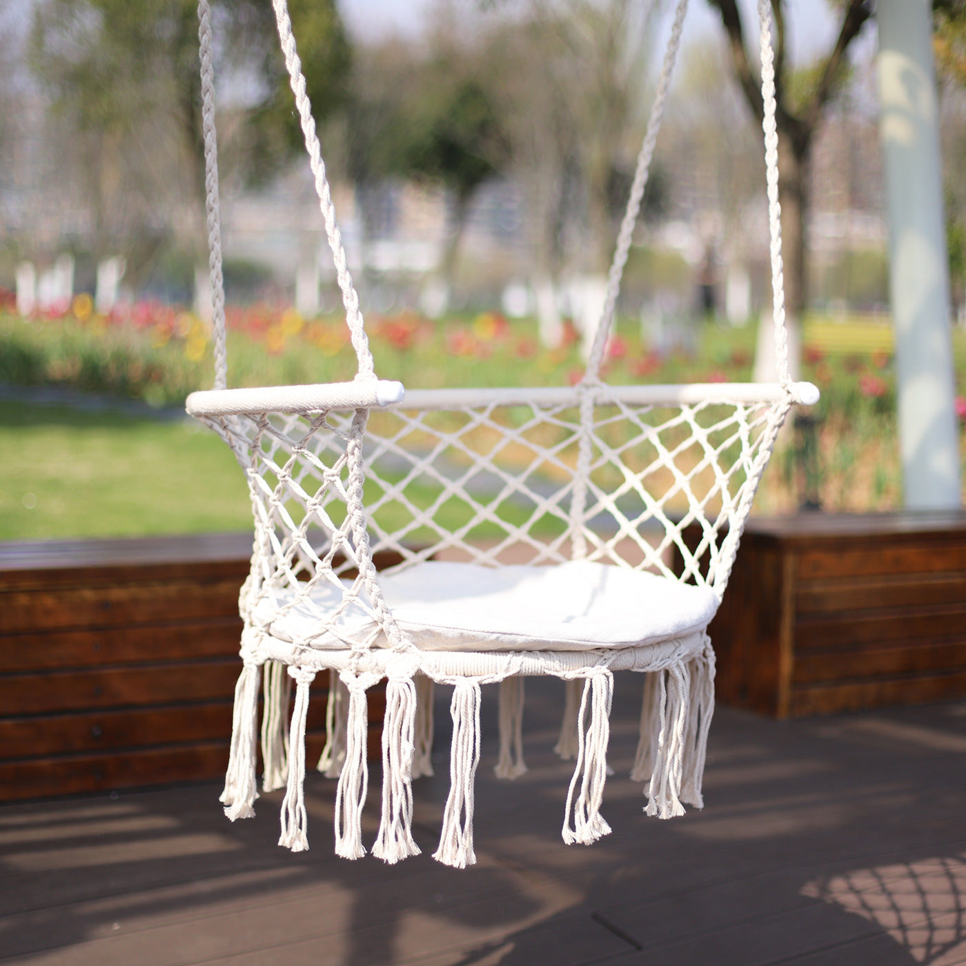 ins Nordic Style Tassel Hanging Chair Handwoven Hanging Basket Cotton Rope Swing Outdoor Hammock Balcony Cradle Chair Wholesale