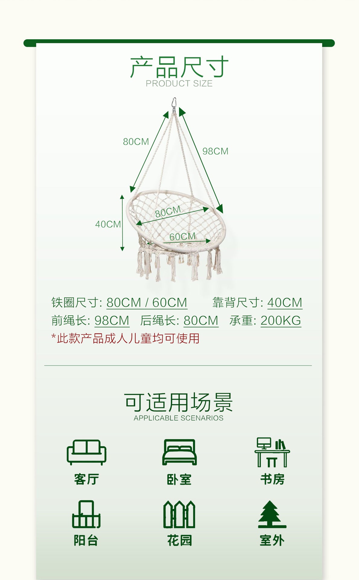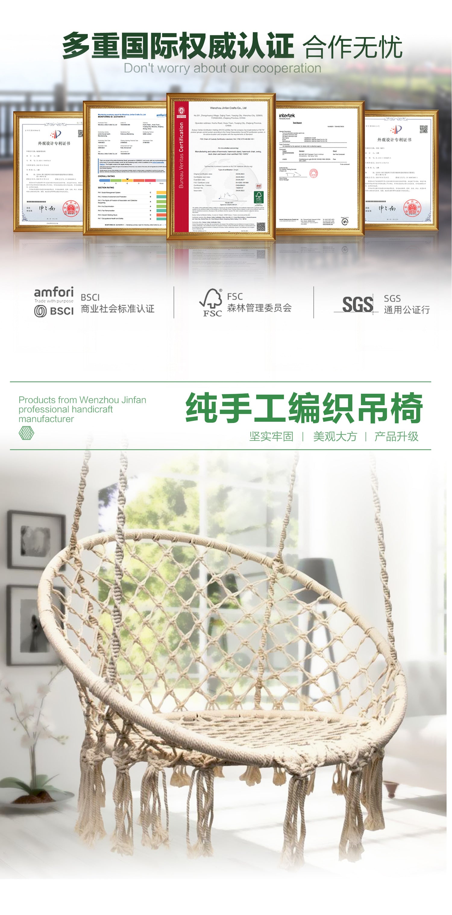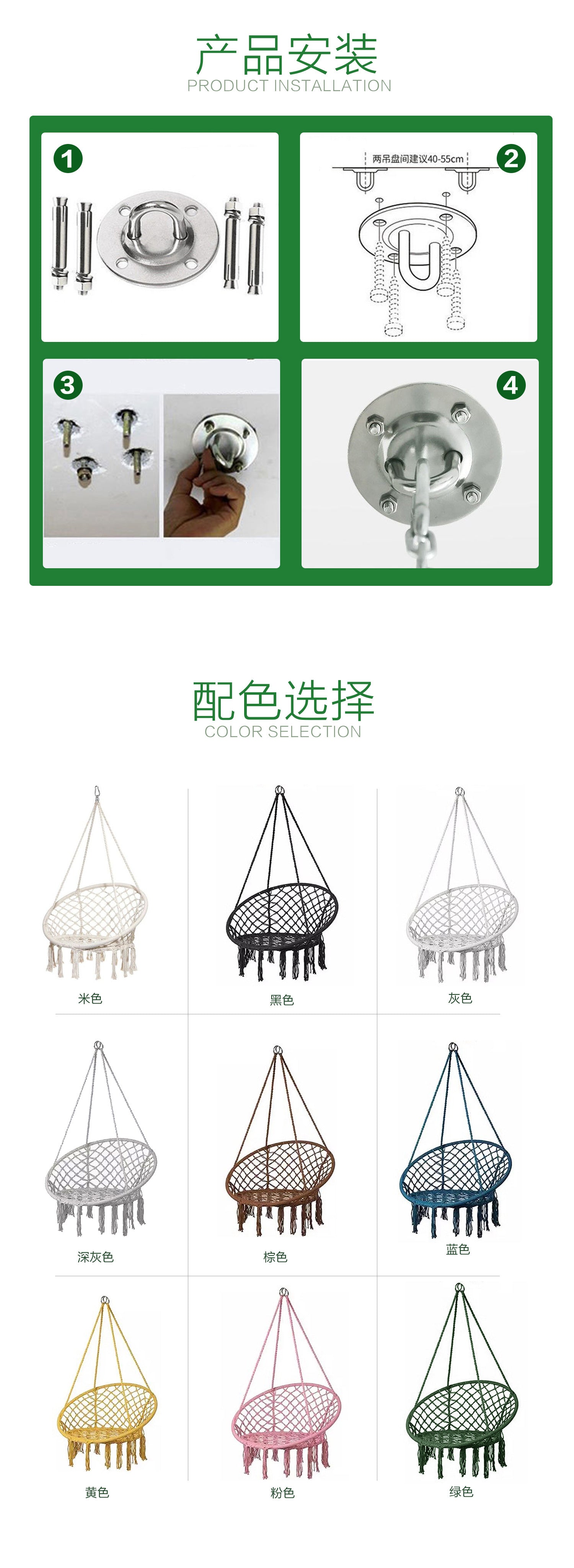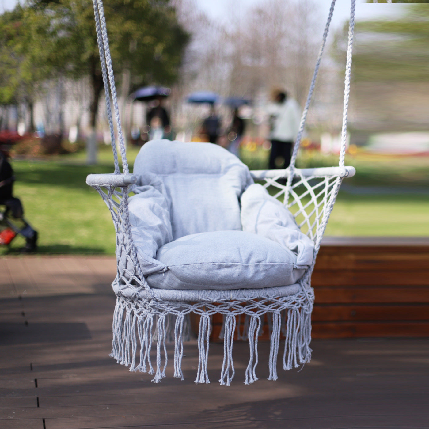 ins Nordic Style Tassel Hanging Chair Handwoven Hanging Basket Cotton Rope Swing Outdoor Hammock Balcony Cradle Chair Wholesale