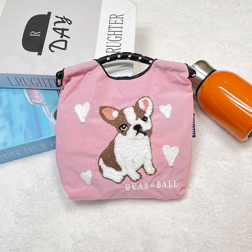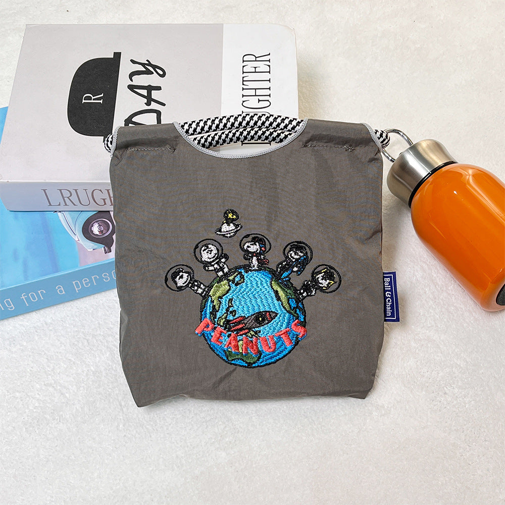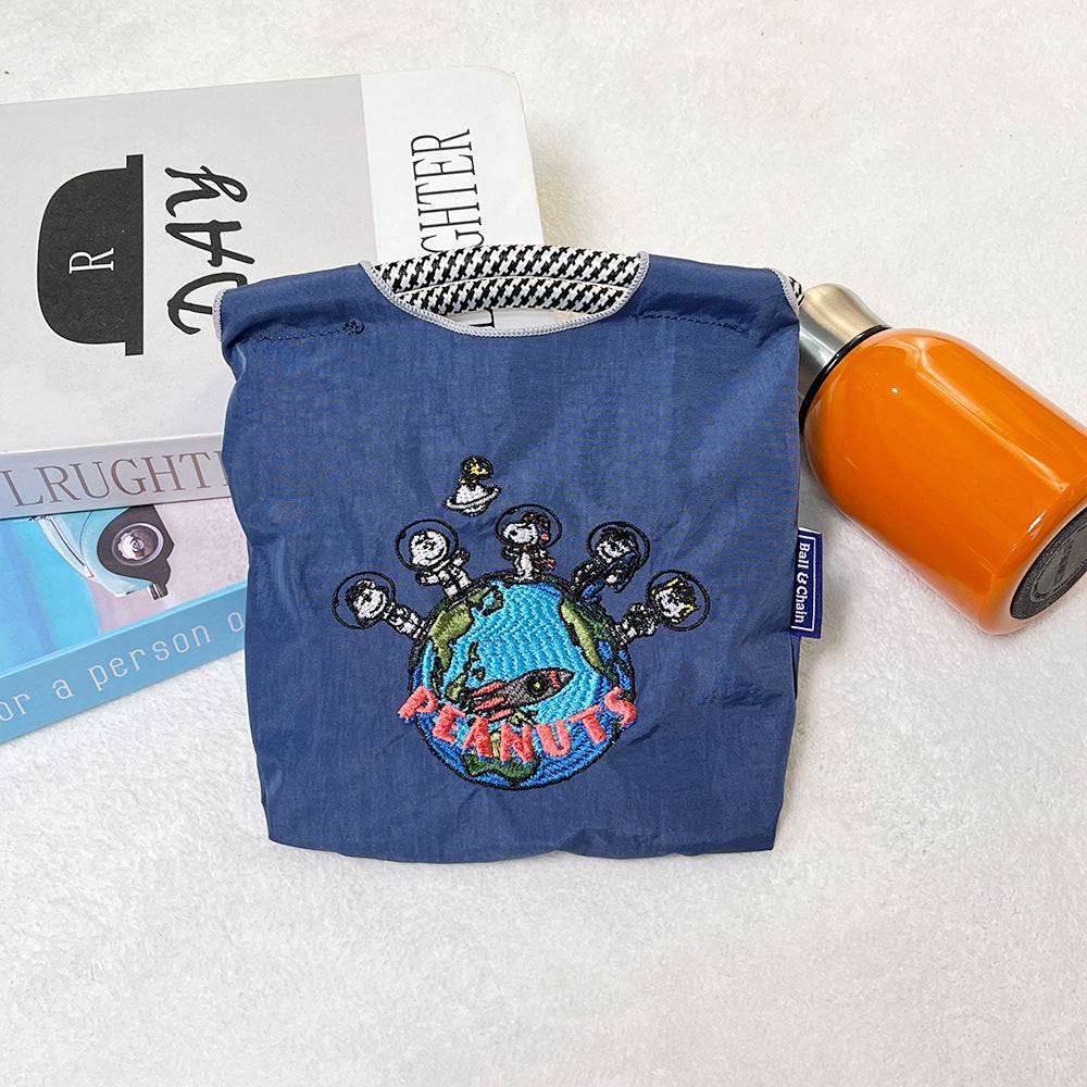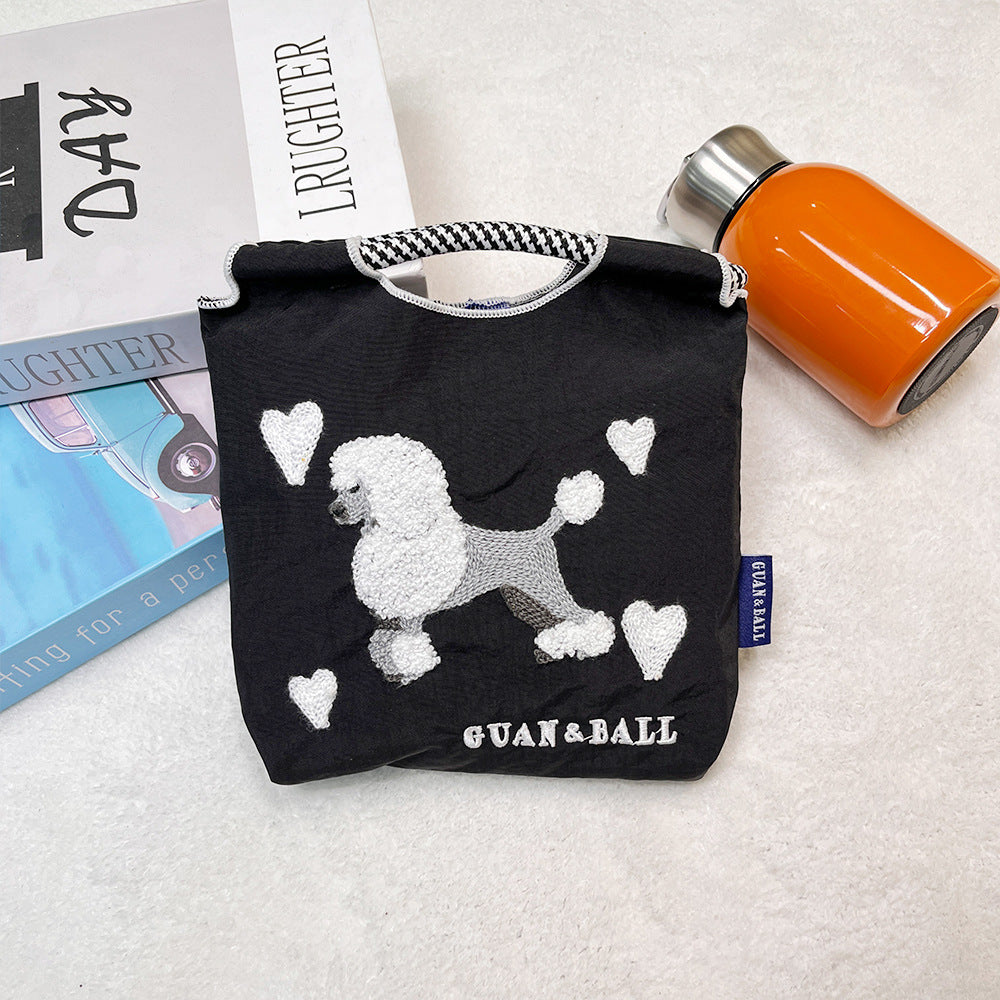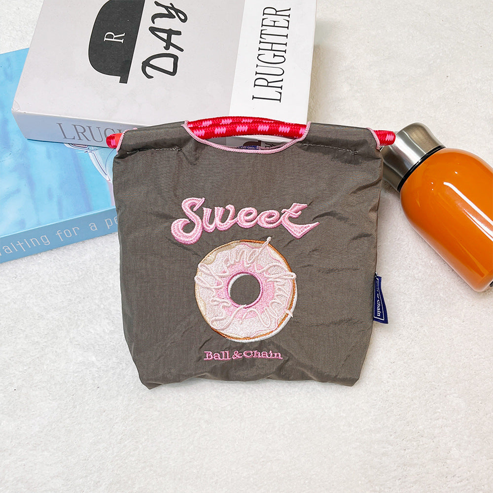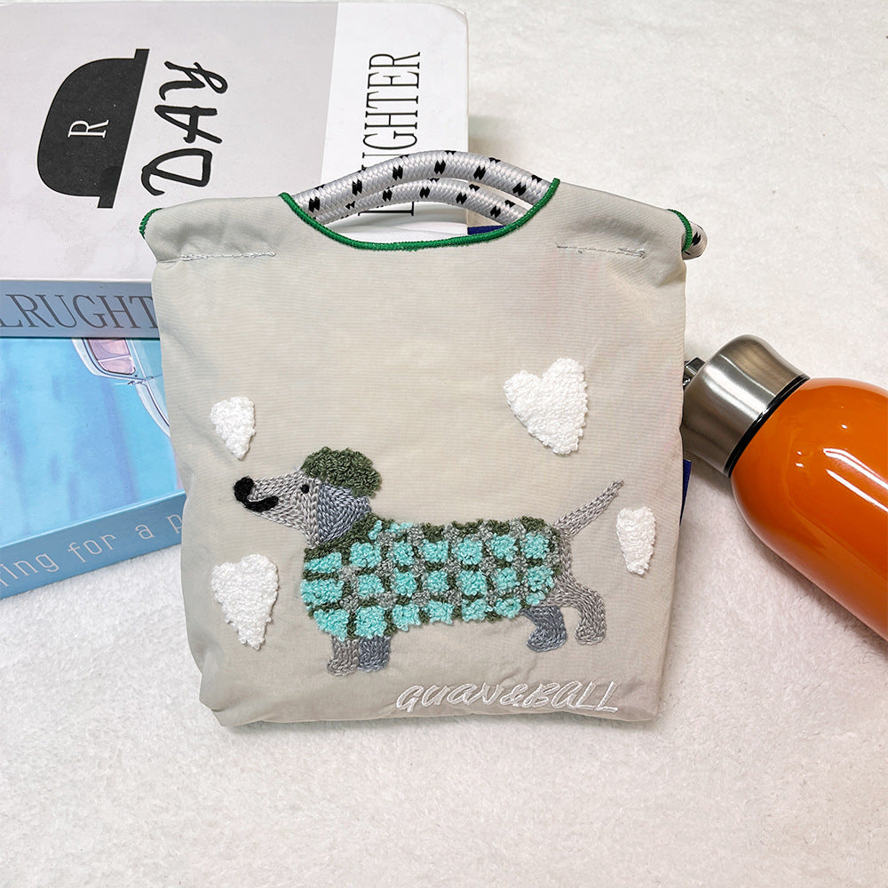 Japanese Style BallChain Same Style Eco-Friendly Embroidered Shopping Bag Nylon Fabric Floral Handheld Niche Fashion Shopping Bag