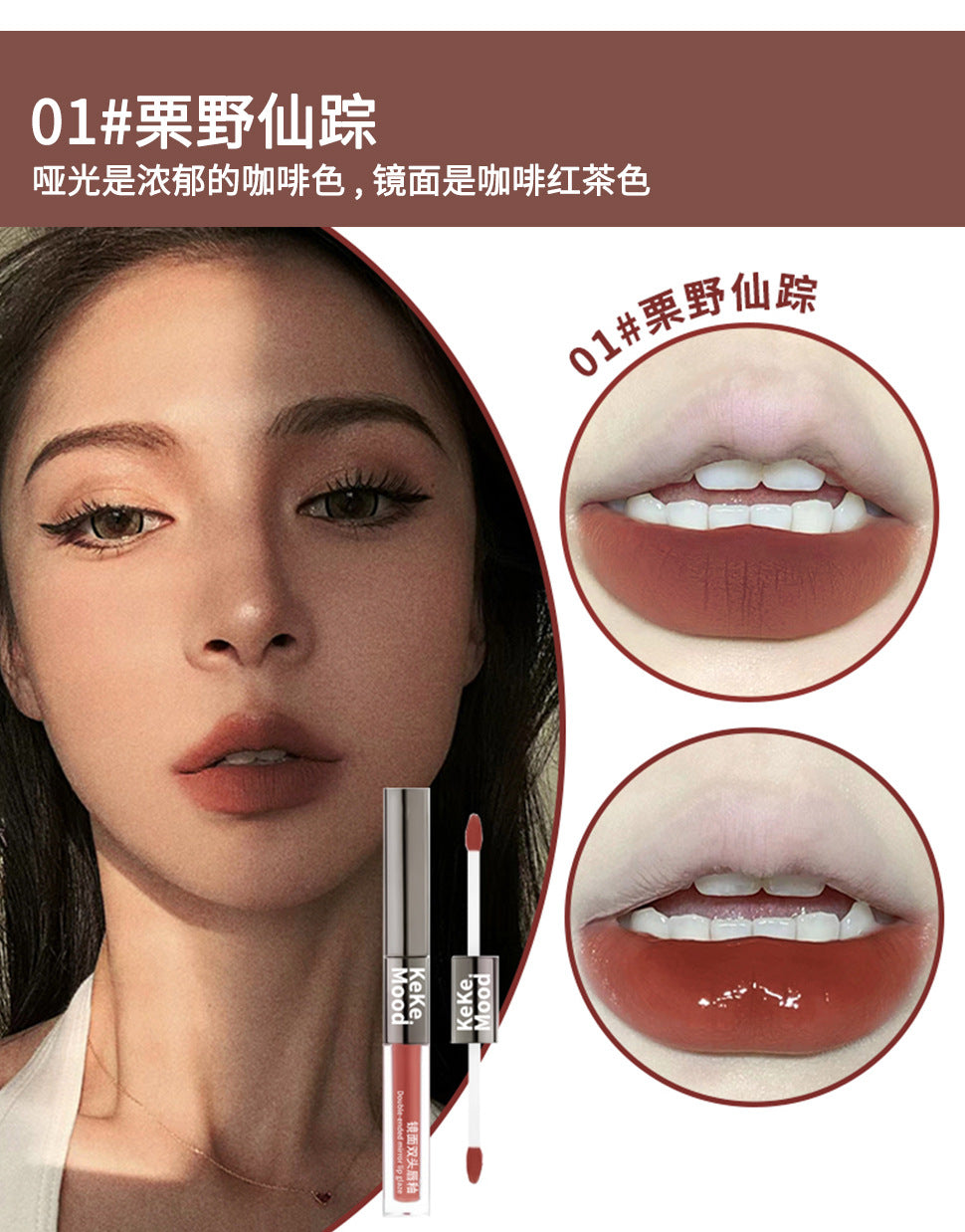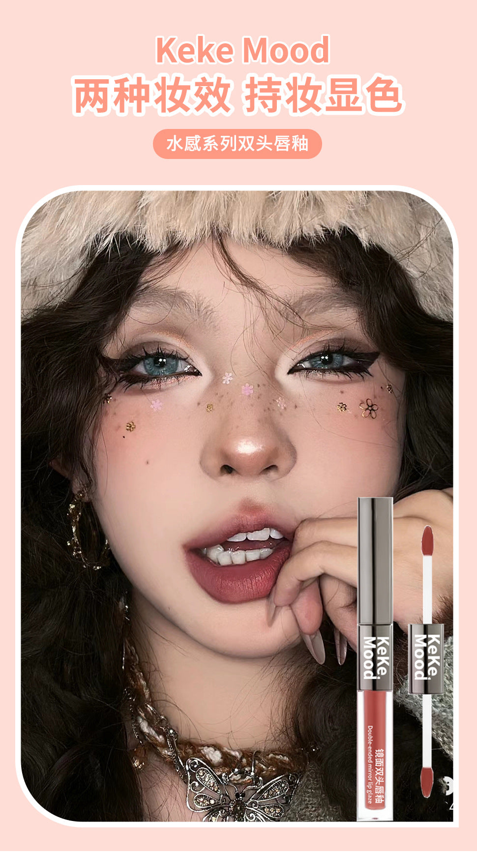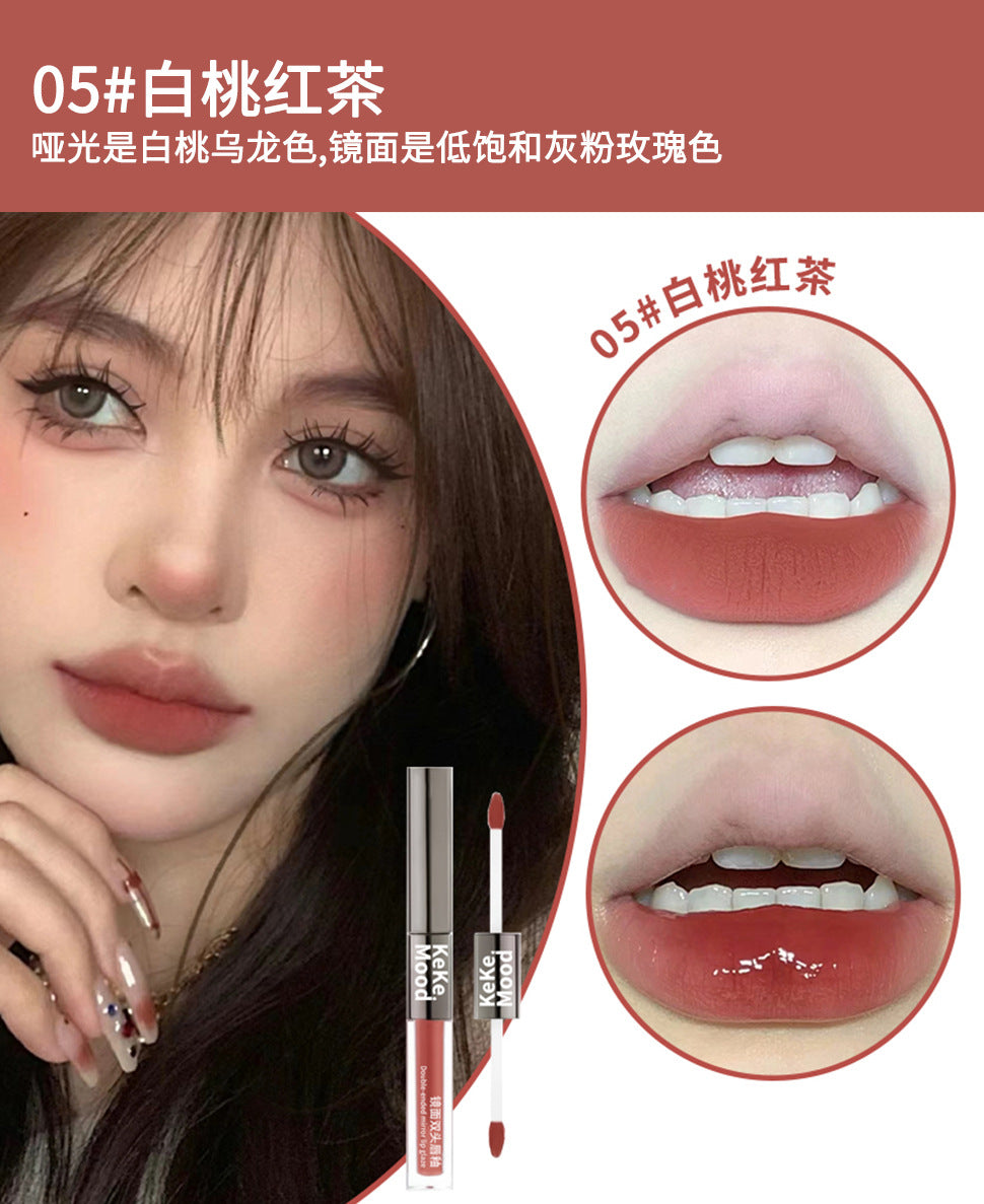 keke mood Water-Feel Dual-Ended Lip Glaze Water Gloss Mirror Lip Gloss Matte Mist Lip Mud Natural Look Affordable Lipstick