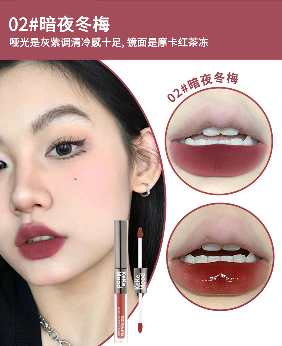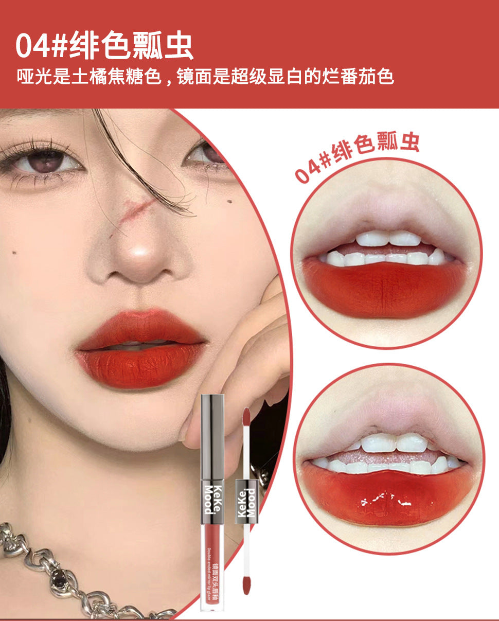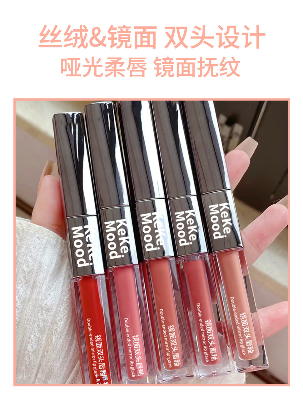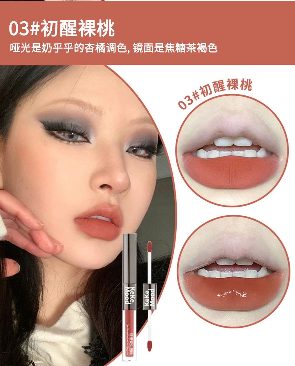 keke mood Water-Feel Dual-Ended Lip Glaze Water Gloss Mirror Lip Gloss Matte Mist Lip Mud Natural Look Affordable Lipstick