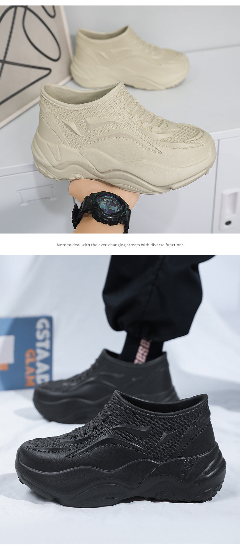 Kitchen Non-Slip Shoes for Men, Summer Breathable Thick Sole Pure Black Chef Waterproof Work Shoes, Outdoor Sports Fishing Rubber Shoes