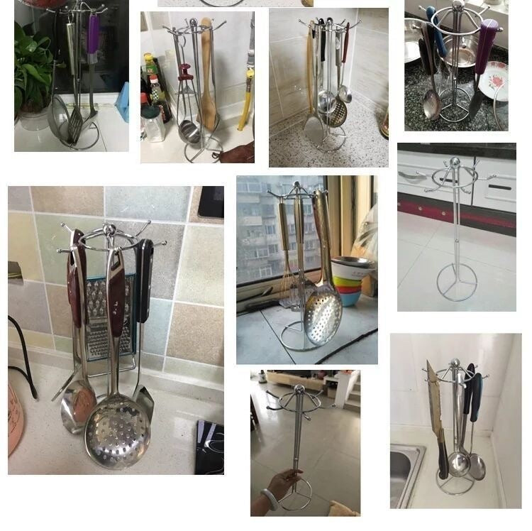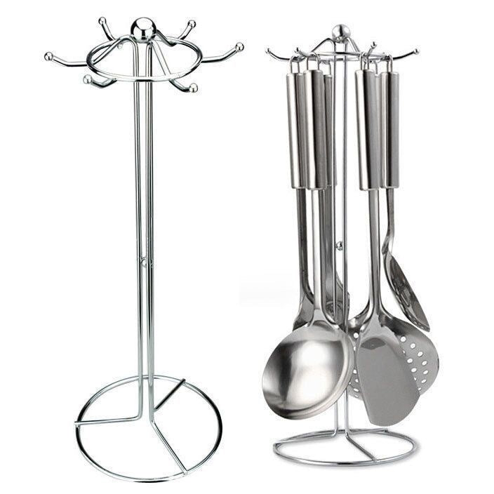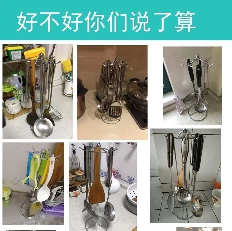 Kitchen Storage Rack Utensil Holder Spatula Spoon Hanging Rack Pot Spatula Holder Soup Spoon Spatula Draining Rack Household Hook Rack Floor-standing
