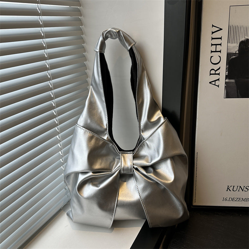 Korean Style Casual Underarm Women's Bag2025New Simple Bowknot Design Tote Bag Simple Handheld Shoulder Bag