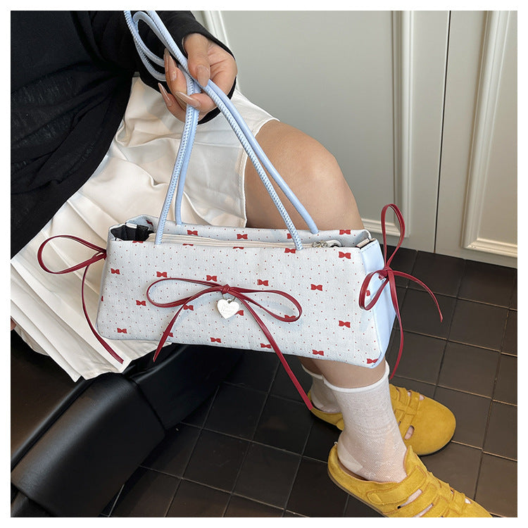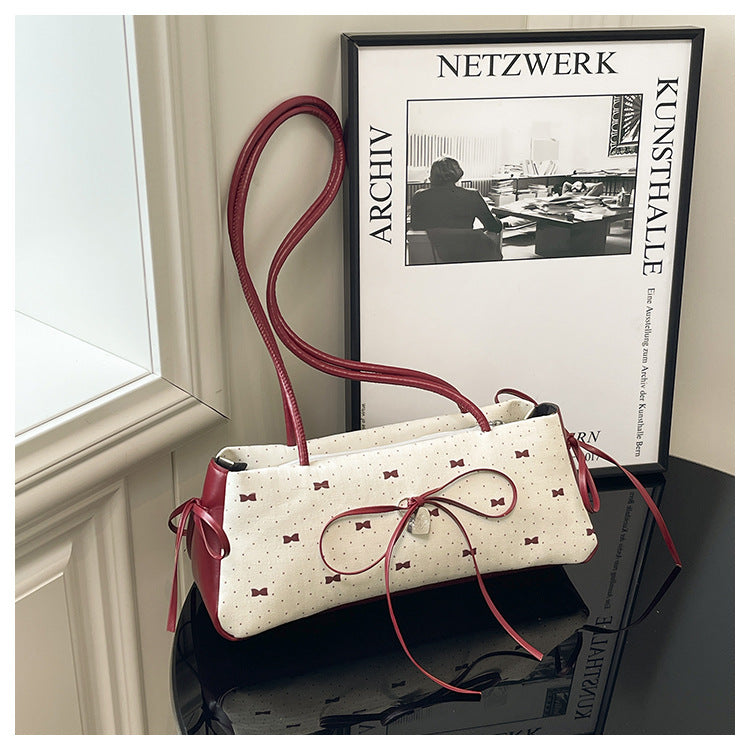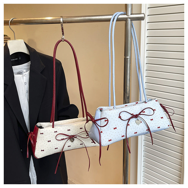 Korean Style High-Value Bowknot Bag for Women2025Summer New Single Shoulder Underarm Bag Fashion Polka Dot Handheld Small Bag for Women
